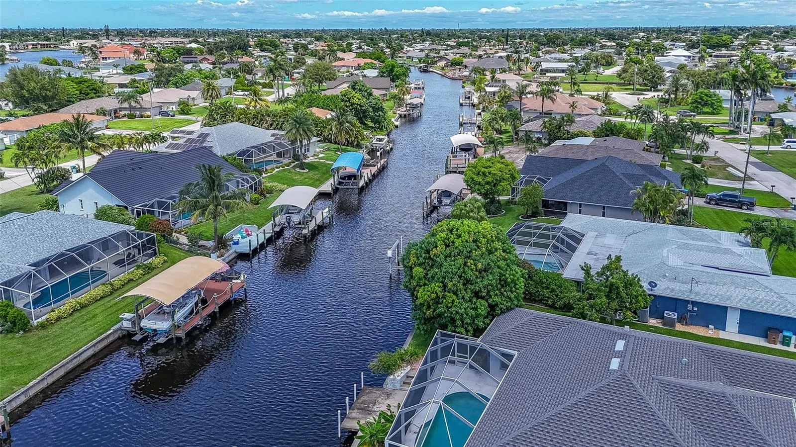 Waterfront, gulf access, 3 bedroom plus flex area and 2.5 baths. Open floor plan with split bedrooms and over 220 sq feet under air. Tile and laminate floors ( no carpet ). The master suite has tray ceilings, his and her closets and the adjoining bath has a tub and a shower. Private bath enclave and dual sinks complete the master bath. The under truss lanai will provide space for all your entertaining ideas and has a separate pool bath for company and the folks in the pool. Two car garage with impact garage door, new exterior paint, Updated pool pump and a concrete dock. 2022 New high end roof and super quality impact windows and doors.