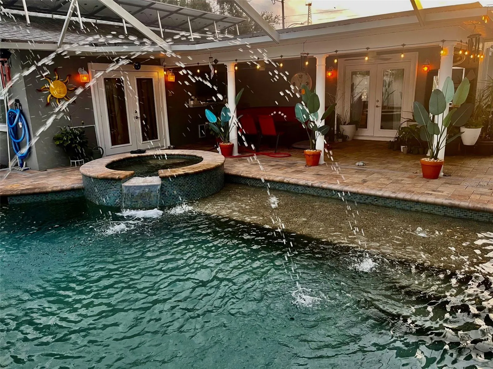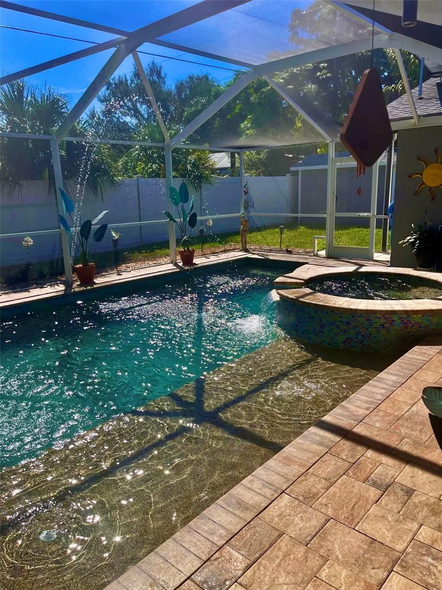 Welcome to this beautifully updated 3 bedroom 2 bath block home featuring a screened saltwater pool and spa. This move-in ready property has been meticulously maintained, with major updates completed within the past 8 years, including owned solar panels, windows and doors, AC, bathrooms, kitchen, waterproof laminate flooring and roof. Enjoy energy efficiency and convenience with natural gas for cooking, gas dryer and a gas on demand water heater. The freshly painted exterior enhances curb appeal while the fully vinyl fenced yard provides privacy and security. Parking is a breeze with an attached one car garage plus an additional covered carport. This home offers the perfect blend of style, comfort and modern upgrades—-schedule your showing today.