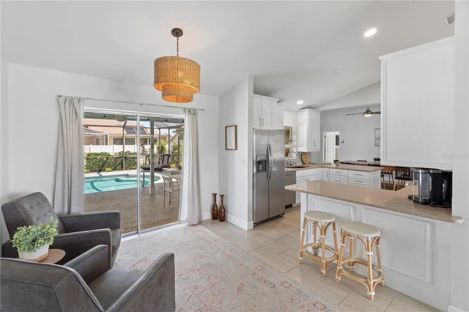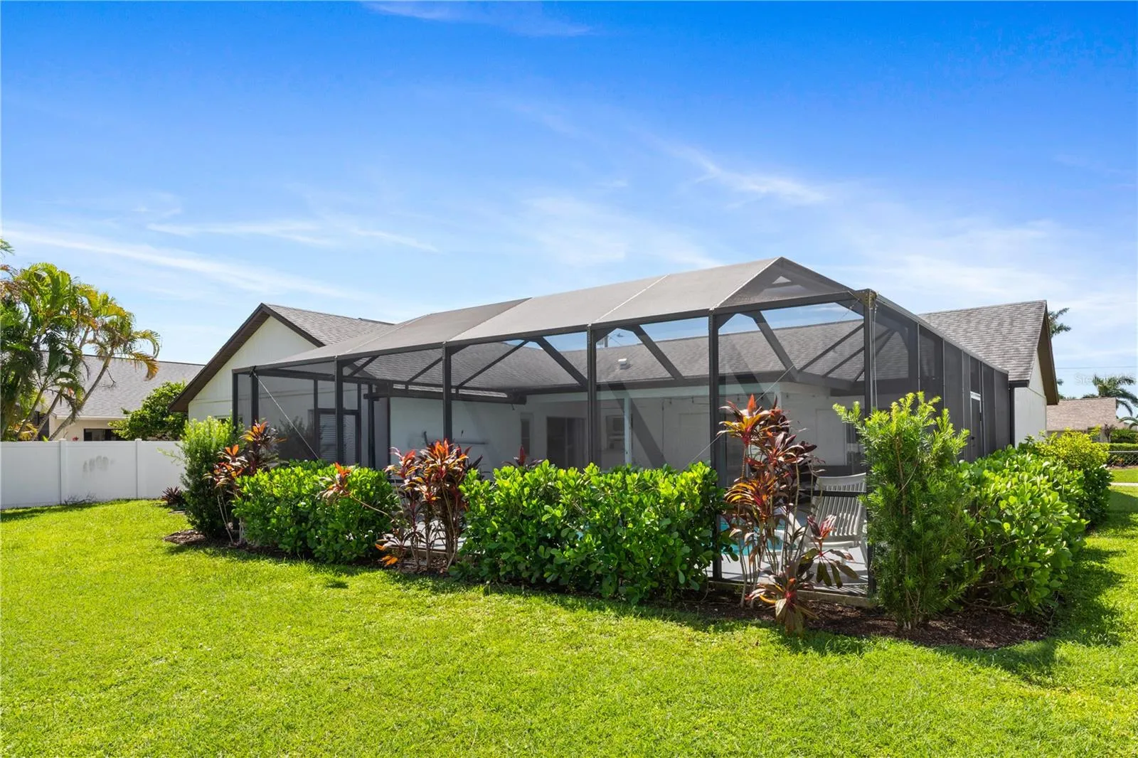 TURNKEY 4 Bedroom, 2 Bathroom, 2 Car Garage, Pool home with a Family room situated on an OVERSIZED CORNER LOT in Cape Coral. CLICK ON THE VIRTUAL TOUR LINK 1 FOR THE VIDEO AND VIRTUAL LINK 2 FOR THE 3D TOUR. Whether you are looking for an investment property, winter get-away or a full time residence this home is sure to suite your needs, featuring a bright and airy floor plan, tile flooring throughout, high vaulted ceilings, recessed lighting and MORE! An open living and dining room make this home perfect for entertaining, with a pass through window to the kitchen. The kitchen offers ALL stainless steel appliances, granite countertops, tiled backsplash, ample countertop space and a breakfast bar. Off the kitchen is a family room where you can expand your living and entertaining space. The spacious master bedroom has a walk-in closet and an en-suite bathroom with a dual sink vanity, a walk-in shower and access to the lanai. The three guest bedrooms are on a split floorplan, providing plenty of privacy, with built-in closets and a shared guest bathroom nearby with access to the lanai. Start your morning with a peaceful cup of coffee or unwind with your favorite evening beverage on the lanai, with plenty of room for entertaining and a private pool for year-round enjoyment. The fully fenced backyard adds extra privacy and security — ideal for pets, children, or simply creating your own private oasis. . Conveniently located close to local shopping & boutiques, fine & casual dining, LIVE entertainment, and a short car ride to award-winning beaches! Schedule your showing TODAY!
