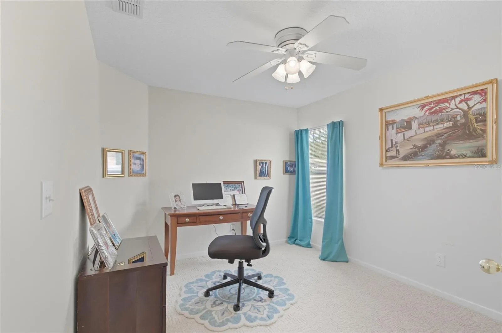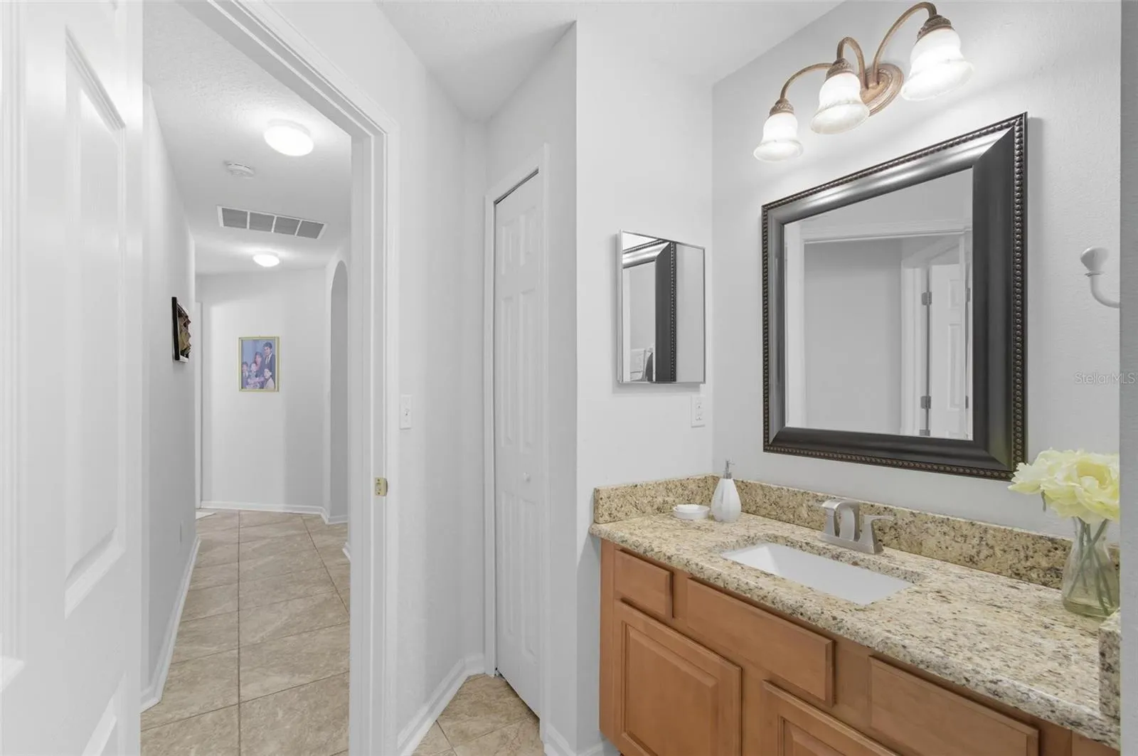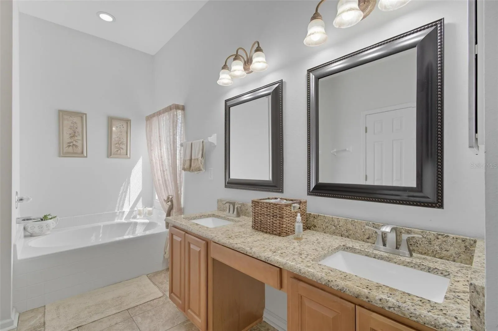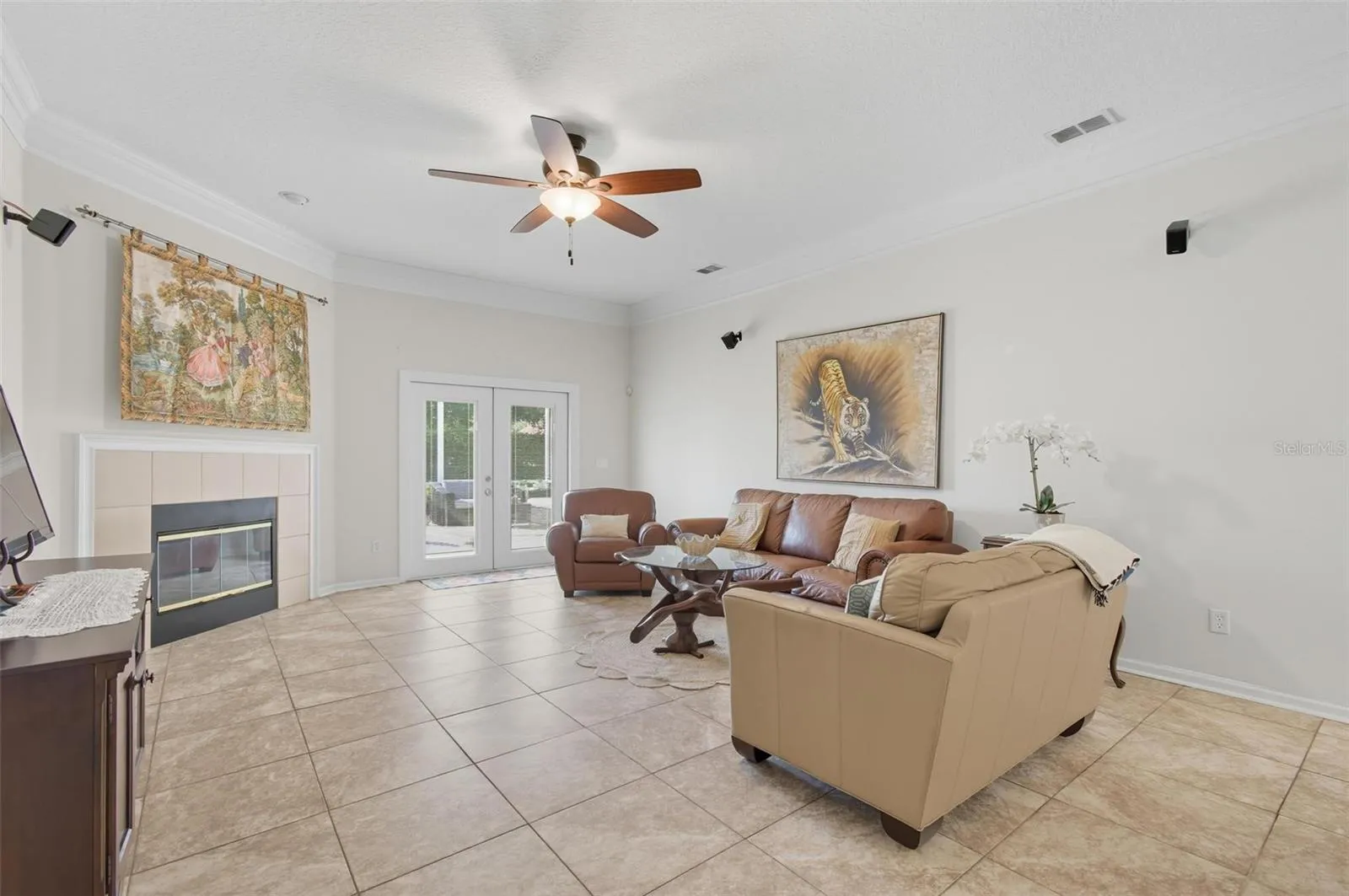 Whole house is tiled except for bedrooms, Kitchen and Bathrooms granite countertops. Ample space in kitchen for eat in. Separate formal dining room and living room. Great room comes with wood-burning fireplace and built-in surround sound with french doors leading to pool area. Installed alarm system, gutters, irrigation system (well) fans in all rooms, window treatments and ample storage shed in backyard.