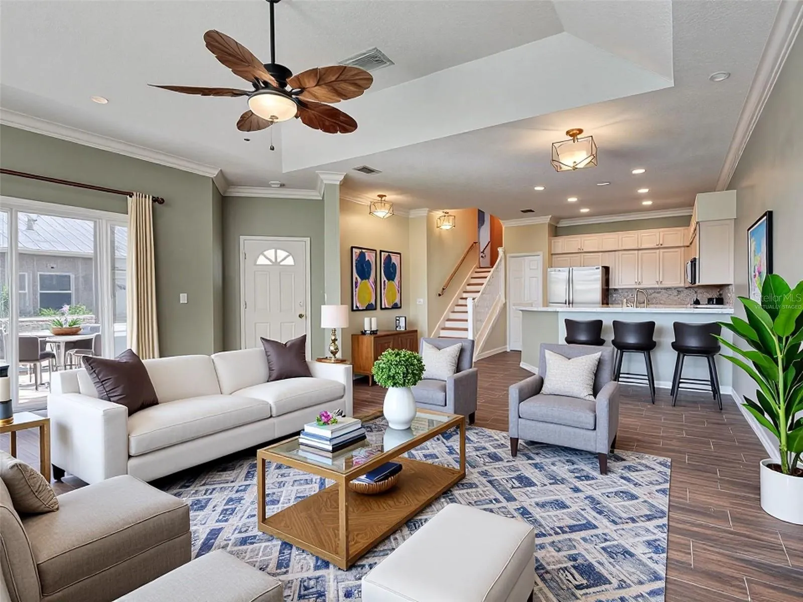 One or more photo(s) has been virtually staged. Light and bright 2-bedroom, 2-bath townhome in the desirable Town-End Shores community of Osprey! This beautifully maintained home features an open-concept first floor with a spacious living room, dining area, and a Florida room with sliding glass doors for added natural light. The gorgeous kitchen boasts granite countertops, perfect for cooking and entertaining. Elegant tray ceilings, crown molding, and 9-foot ceilings enhance the first floor living space. The flooring is a beautiful wood look tile and LVP throughout the home. Upstairs, you’ll find both bedrooms, including the primary suite with a walk-in closet. As an extra bonus, there is a two-car garage. Enjoy the community pool, or your own private hot tub. Venture out to nearby Gulf beaches, shopping, dining, Oscar Sherer State Park and the Legacy Trail. Whether you’re looking for a year-round residence or a seasonal retreat, this home is the perfect fit. Don’t miss this opportunity—schedule your showing today!