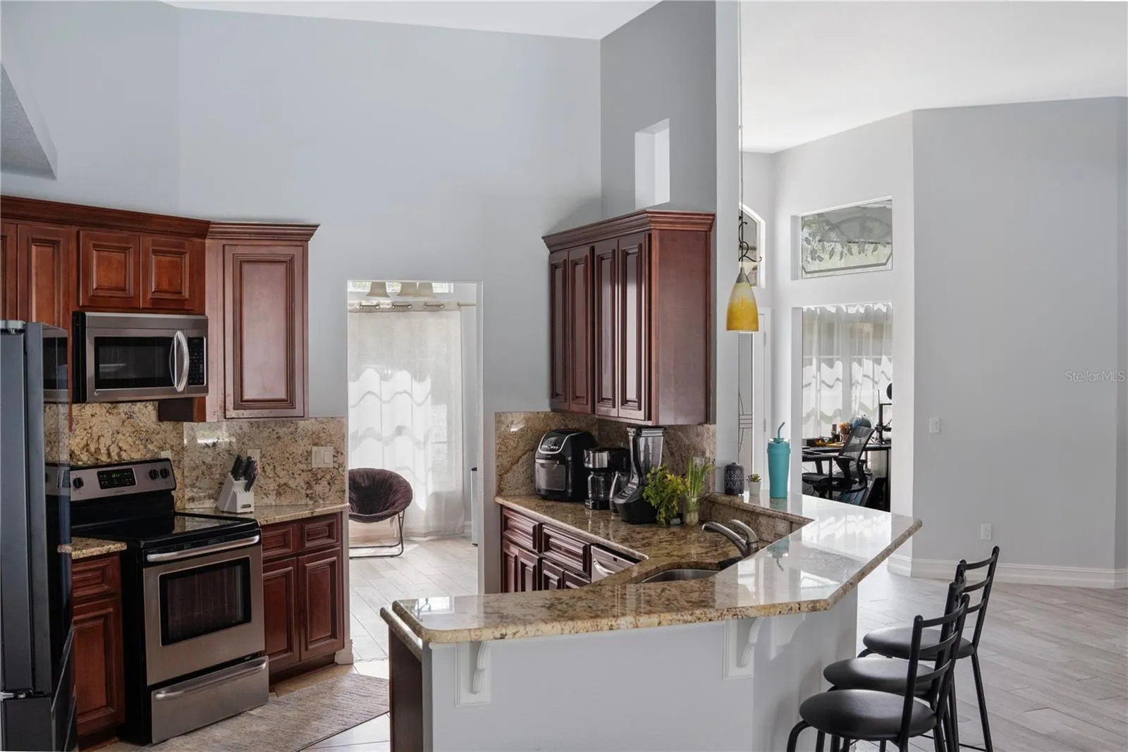 Enjoy year-round outdoor living on the covered lanai overlooking a lush, landscaped backyard—ideal for morning coffee or evening gatherings. Nestled in a quiet, established neighborhood with mature trees, this home offers the rare combination of peace and proximity—just minutes to Disney, Universal, and Orlando’s top-rated schools.