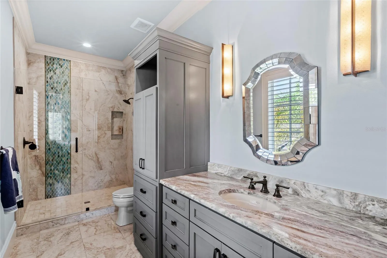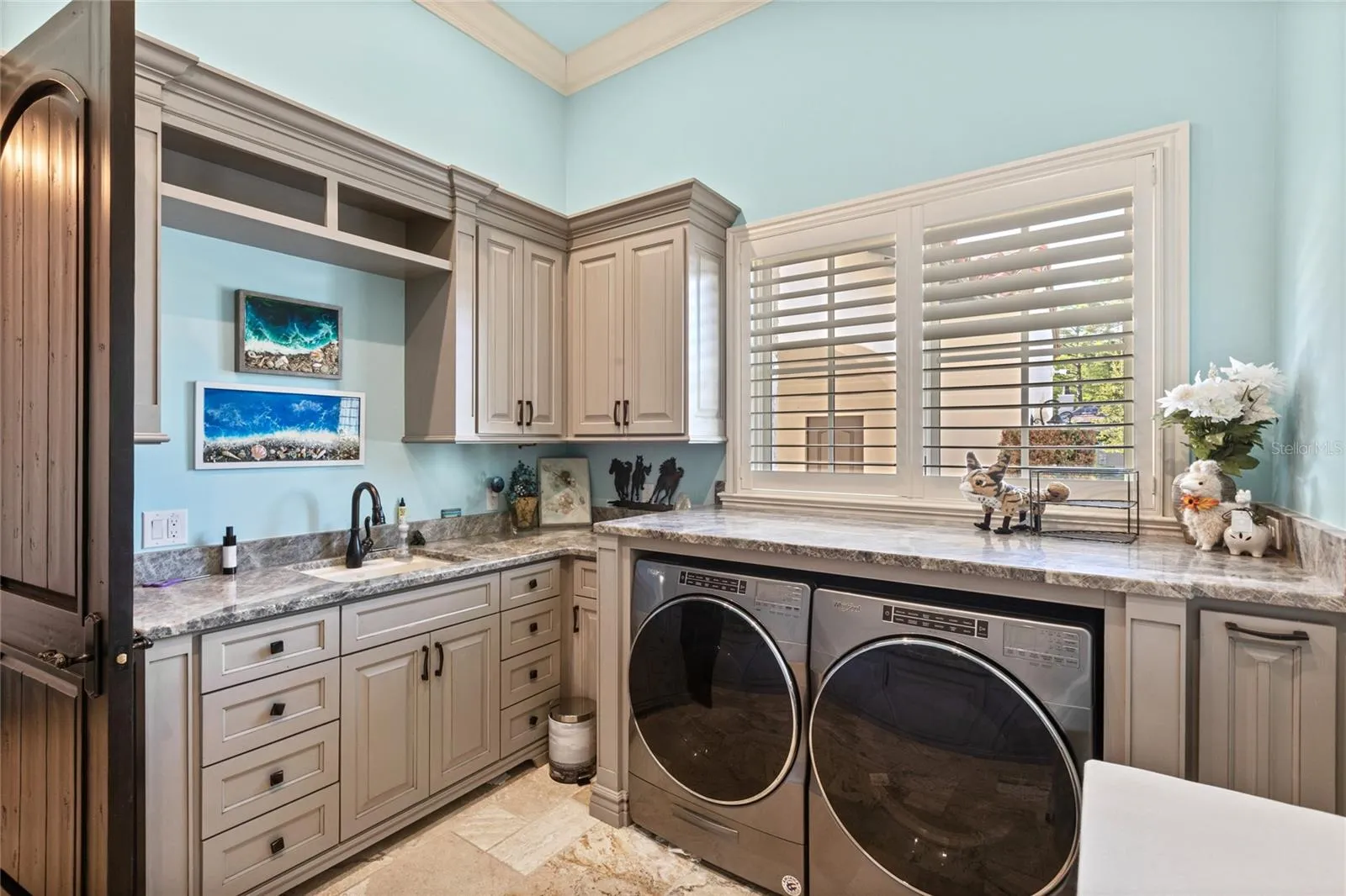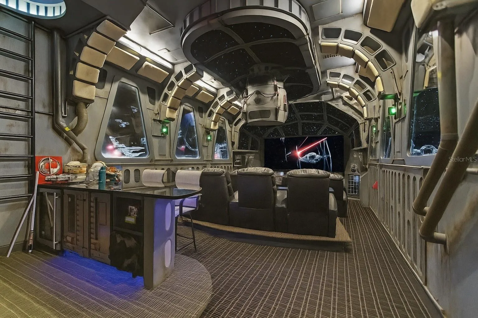 Nestled deep inside the coveted Carolwood neighborhood of Golden Oak at Walt Disney World® Resort, this nearly 11,000 sqft Mediterranean estate offers a rare combination of scale and one-of-a-kind details. Situated on a .79-acre lot, siding and backing to conservation, the home also enjoys serene pond views and ultimate privacy. Inside, soaring ceilings and a sweeping staircase set the tone, anchored by a custom crystal chandelier. A row of Disney-themed stained-glass windows adds a whimsical touch, overlooking the courtyard and sparkling resort-style pool. The chef’s kitchen overlooks a two-story great room and is designed for both function and beauty, featuring top-of-the-line appliances and extensive storage inside custom cabinetry. With 7 bedrooms and 7.2 baths, including a fully detached apartment over the garage, the layout is ideal for family or guests alike. The first-floor master suite is a private retreat, complete with two gas fireplaces, a sitting area overlooking the pool, and a spa bath with soaking tub and walk-in shower. Additional highlights include a Millennium Falcon–inspired theater, temperature-controlled wine room, Toothless pizza oven, an exact replica of the marble fireplace from Cinderella’s Castle apartment, and a massive game room perfect for entertaining, gaming, and/or homeschooling. Outside, the true resort-style setting is unmatched. A pool with grotto, spa, slide, and rock waterfall is complemented by multiple fire pits, expansive covered courtyards, and a summer kitchen for indoor/outdoor living. Car enthusiasts will appreciate the four separate garages, three outfitted with lifts to accommodate up to seven cars. Located just a short drive from Summerhouse and the Four Seasons Resort, this estate offers a rare opportunity to own one of Golden Oak’s most remarkable residences.