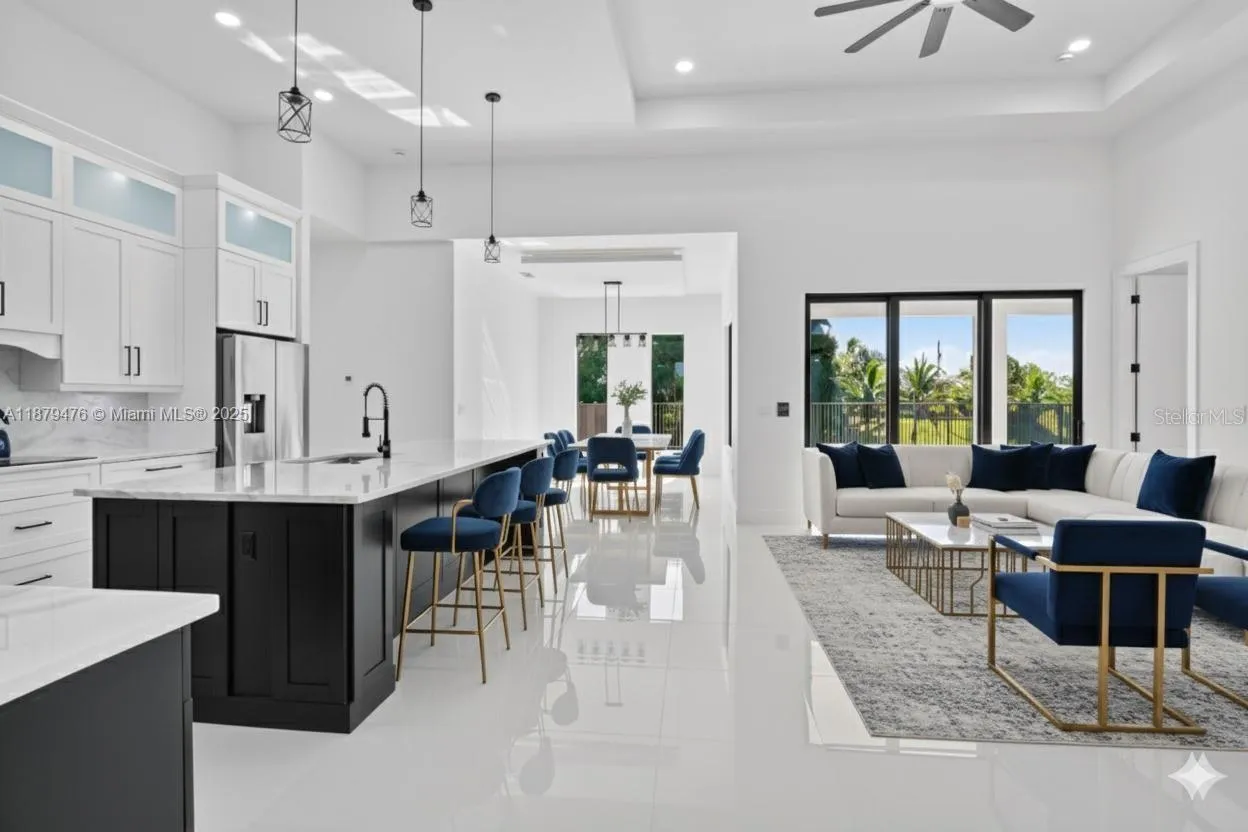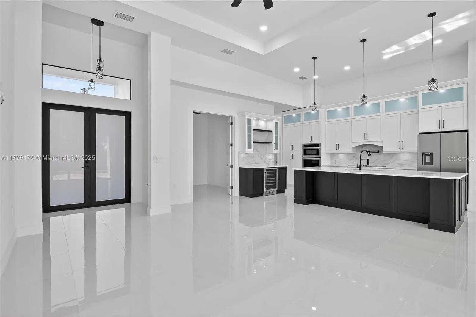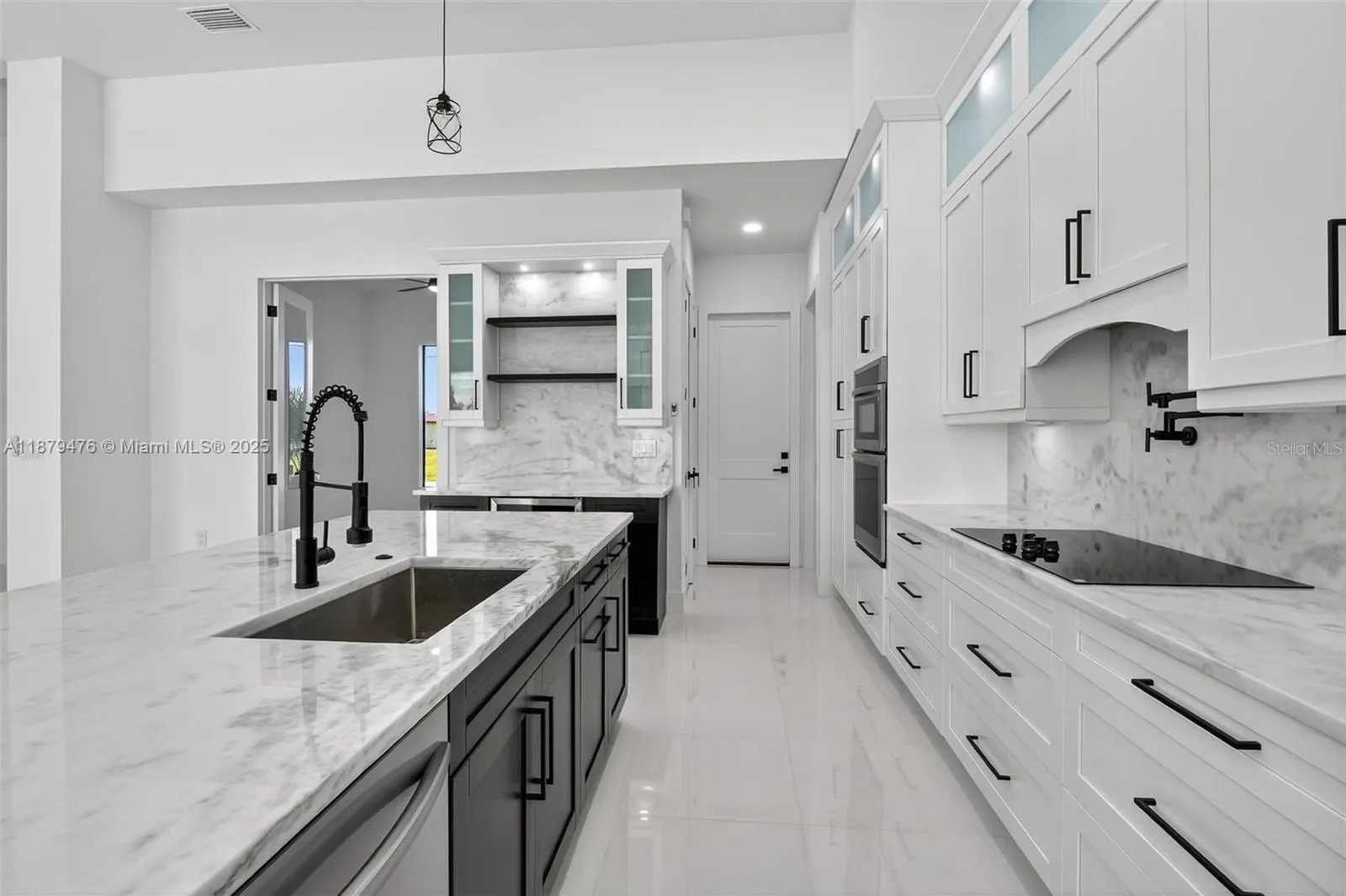 One or more photo(s) has been virtually staged. Move in Ready Canal View Pool home. No HOA, No CDD, No Flood Zone. This stem wall footers, 3-bedrooms + Den & 3 full bathrooms elegance & modern design showcases the warmth, versatility, and functionality of the open floor plan, bright porcelain floor with membrane all-over, high-quality Impact Windows/Door with Low-E. Gorgeous kitchen with stone countertops and upgraded appliance package, built-in microwave-oven, pot filler, electric 36″ cooktop, in-liner hood, Coffee-Bar with dual temperature built-in wine fridge, built-in outdoor Summer Kitchen featuring propane BBQ with rotisserie motor and built-in beverage fridge. Paver driveway leading to the three-car garage, lush landscape with sprinkler system. Saltwater pool ready. The bathroom glass doors will be installed before closing.