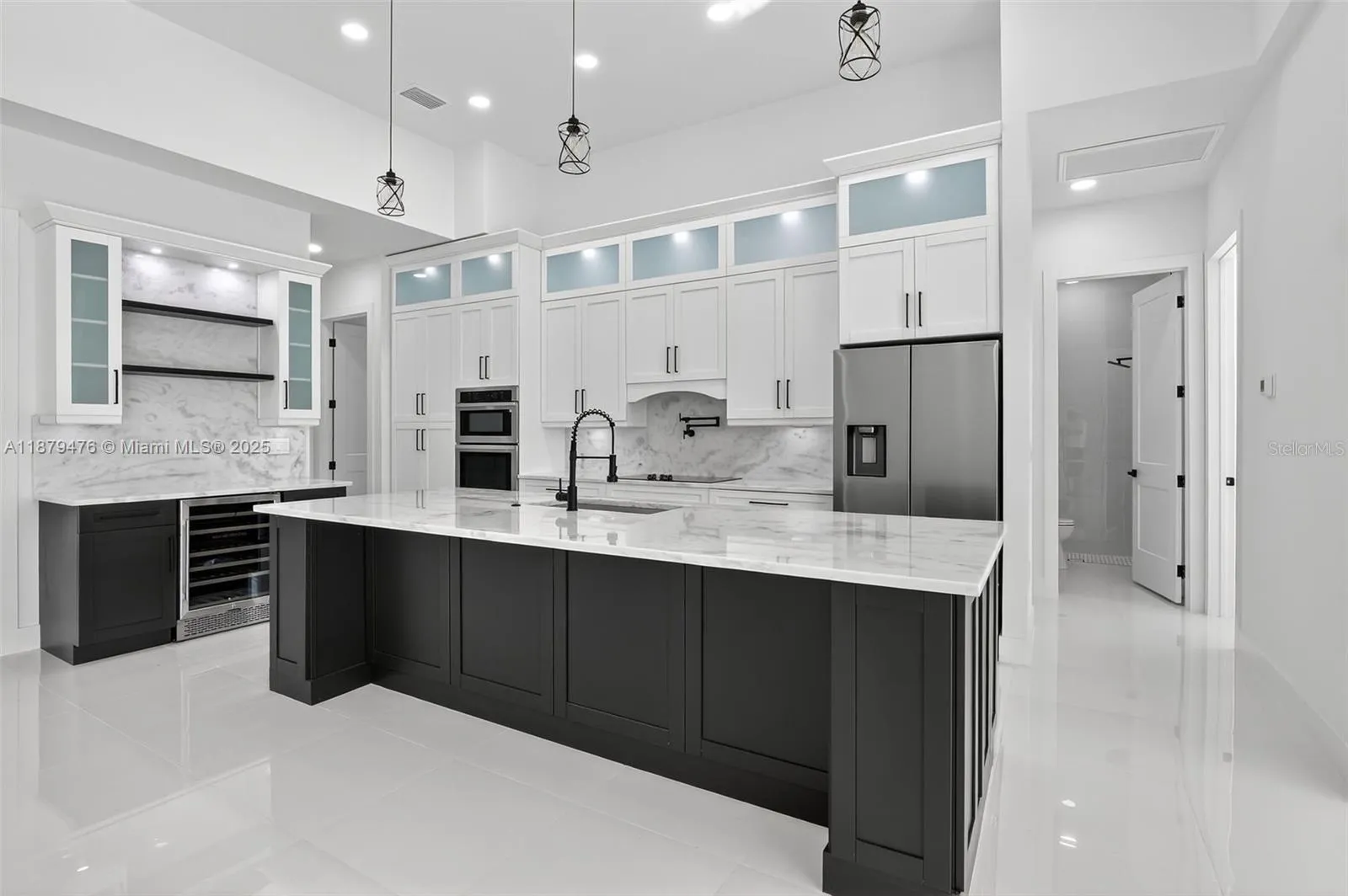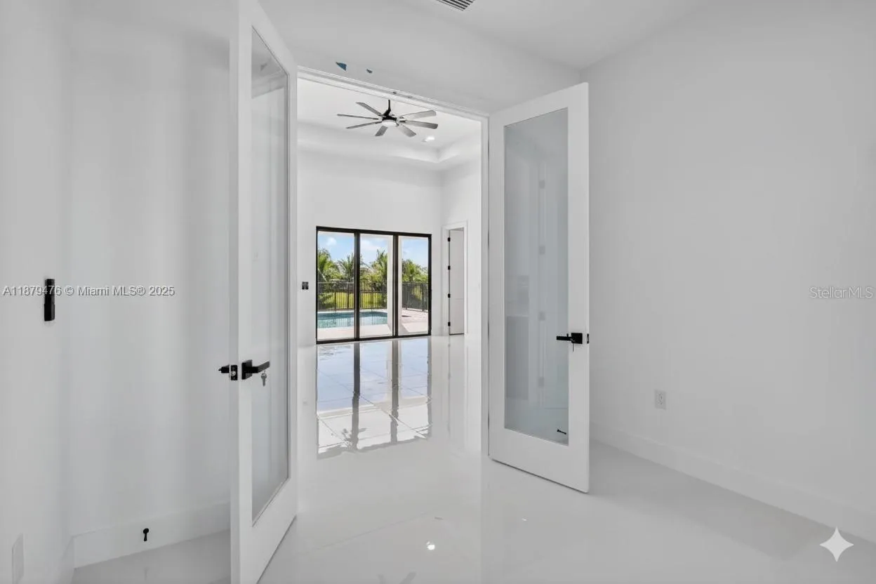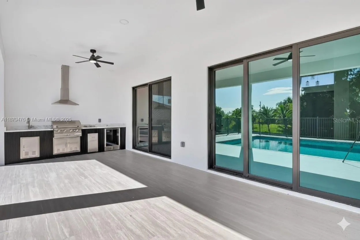 One or more photo(s) has been virtually staged. Move in Ready Canal View Pool home. No HOA, No CDD, No Flood Zone. This stem wall footers, 3-bedrooms + Den & 3 full bathrooms elegance & modern design showcases the warmth, versatility, and functionality of the open floor plan, bright porcelain floor with membrane all-over, high-quality Impact Windows/Door with Low-E. Gorgeous kitchen with stone countertops and upgraded appliance package, built-in microwave-oven, pot filler, electric 36″ cooktop, in-liner hood, Coffee-Bar with dual temperature built-in wine fridge, built-in outdoor Summer Kitchen featuring propane BBQ with rotisserie motor and built-in beverage fridge. Paver driveway leading to the three-car garage, lush landscape with sprinkler system. Saltwater pool ready. The bathroom glass doors will be installed before closing.