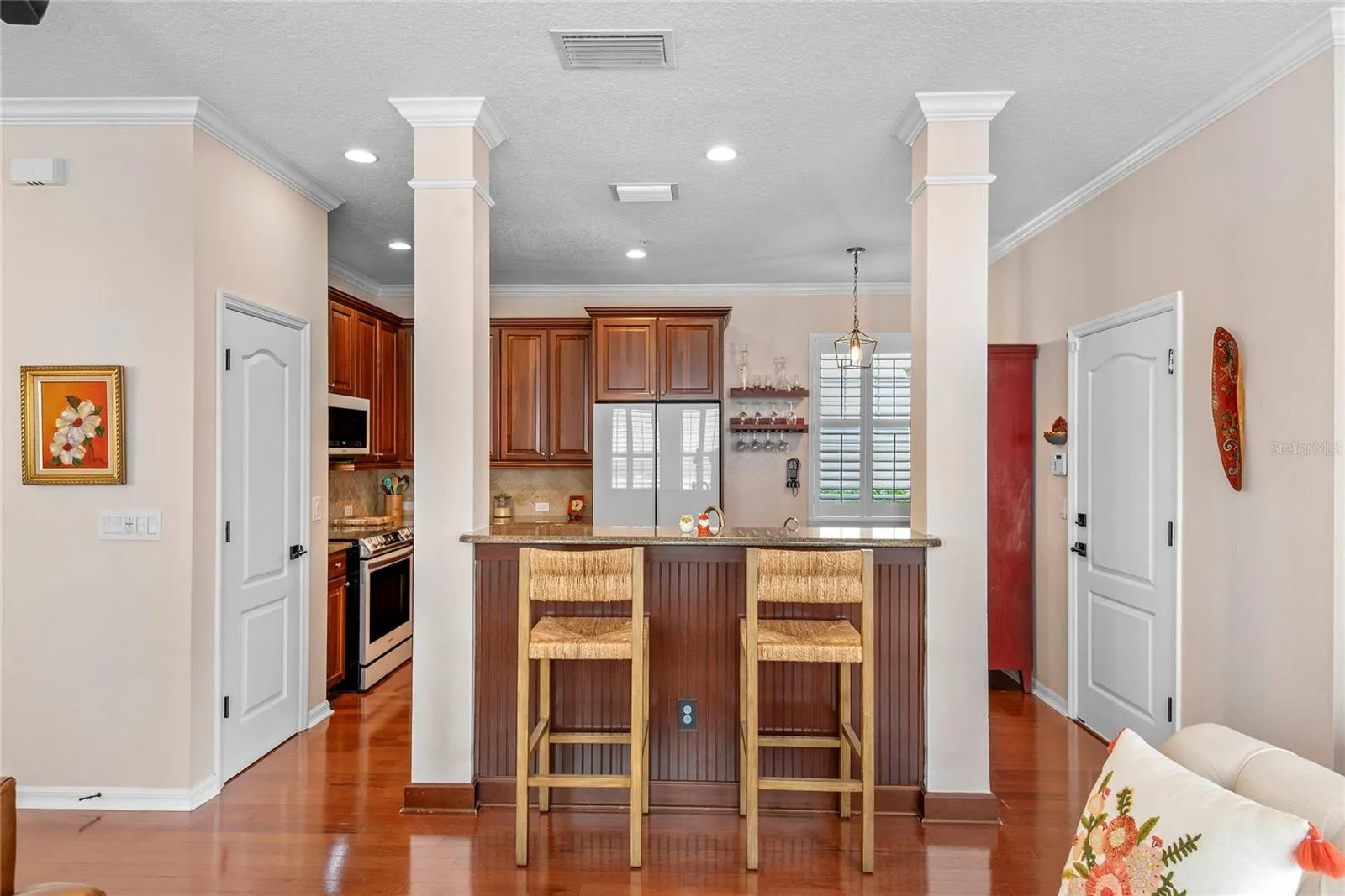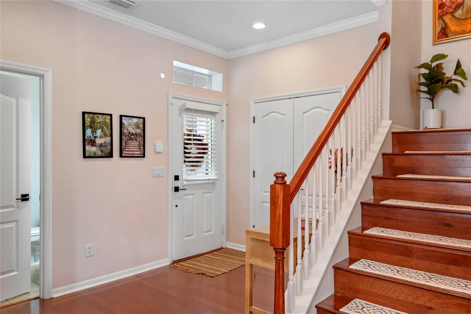 Under contract-accepting backup offers. Located on an idyllic stretch of Penway Drive, this charming two-story Craftsman-style home faces a picturesque pond perfect for both early morning strolls and sunset-gazing from its comfortable front porch. Soft rosy hues, farmhouse light fixtures, and generous natural light give the house a fresh modern, yet cozy feel that is thoroughly inviting. With 1,907 sq. ft., the upstairs floor consists of four bedrooms, two full bathrooms, and a laundry closet for convenience. The waterfront primary bedroom features an en-suite bath with dual sinks, a soaking tub, and a walk-in shower, as well as a walk-in closet with a barndoor and custom organization system. Downstairs, you will find the common living spaces, along with a half bathroom and an office/flex-space. Boasting granite counters and new white appliances from the Samsung Bespoke line (2022), the kitchen opens onto the family room and fenced backyard, which features pavers and a buzzing butterfly garden. Finishes throughout the home include crown molding, wood floors, plantation shutters, and new hardware. Major system upgrades consist of new HVAC (2022), new metal roof (2023), and new LG washer and dryer (2021), as well as new exterior/interior paint (2021) and a landscaping refresh. The two-car garage is accessible from the back alley. This home offers the best of Baldwin Park (BP) life: a desirable nook in BP with plenty of natural scenery to enjoy that is also a 15-minute walk to the Village Center, where you’ll discover fantastic restaurants, a Publix, and numerous boutique shops. Currently zoned for Baldwin Park Elementary, Glenridge Middle School, and Winter Park High School. Your dream home awaits!