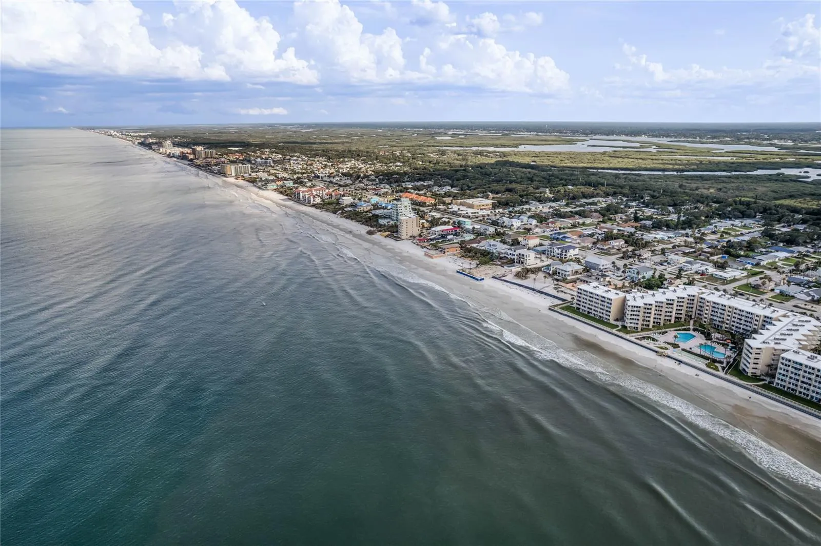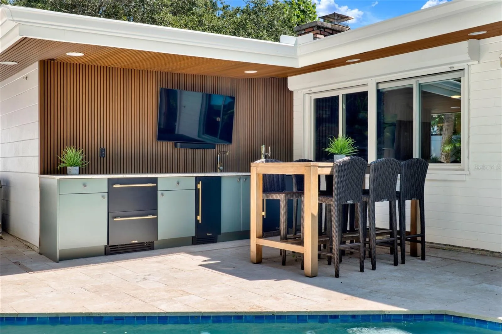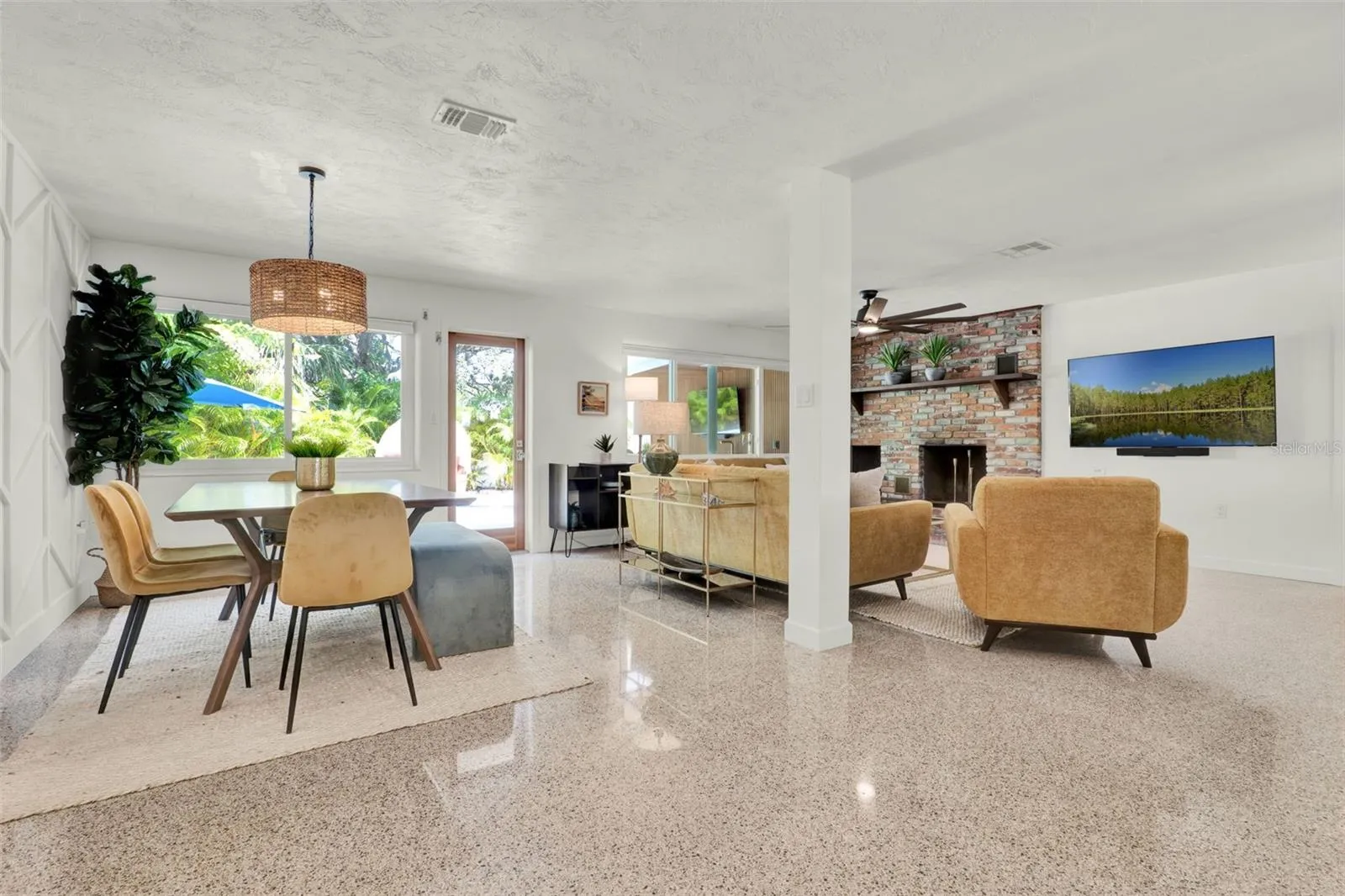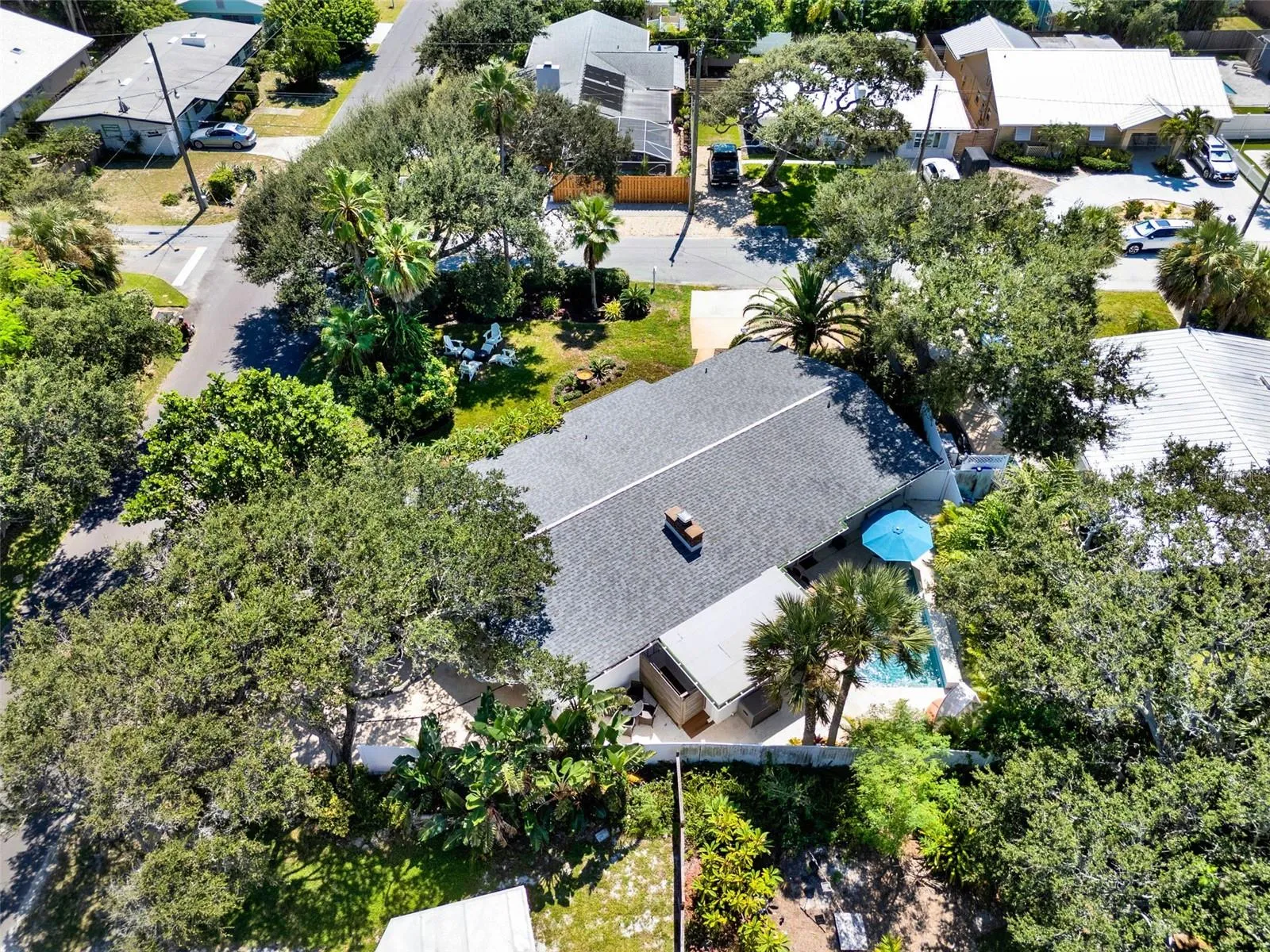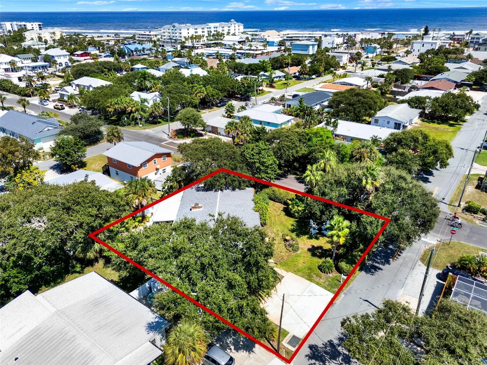 Under contract-accepting backup offers. *** Price Improvement! *** Beachside mid-century retreat with SALTWATER POOL just 3 short BLOCKS from FLAGLER Avenue! *** NO FLOODING – flood insurance is NOT required for this property! *** Step into timeless style and coastal comfort with this beautifully designed 3-bedroom, 2-bath MID-CENTURY inspired home, just steps from the sands of New Smyrna Beach. Situated on an oversized CORNER lot (.21 of an acre) with a FENCED backyard, this beachside retreat blends modern updates with classic charm, offering the perfect balance of relaxation and convenience. Inside, the open concept living space is filled with natural light, PLANTATION SHUTTERS, restored TERRAZZO floors, custom doors with glass knobs, a stunning accent wall in the dining area, and a wood burning fireplace with storage for the firewood. The primary suite is located on the opposite side of the home away from the spare bedrooms, and features two closets with sliding doors, a linen closet for added storage, and a vintage styled bath. The two additional bedrooms include spacious closets and multiple windows, drawing in the outdoors. The kitchen overlooks the front yard and patio, and is enhanced with QUARTZ counters, a refrigerator (2021), oven, cooktop, and BOSCH dishwasher (2021). Enjoy panoramic views of your private oasis from the main living area of the home. A sparkling saltwater HEATED POOL (added in 2023) with TRAVERTINE decking is surrounded by tropical landscape, outdoor lighting, and generous lounge areas—perfect for entertaining or soaking up the Florida sunshine. The area is also enhanced with top-of-the-line TRUE appliances, including an ice machine, kegerator, and mini-fridge. When you arrive home from the beach, enjoy showering off in your very own OUTDOOR SHOWER, then head to the pool for a dip! A screened-in front porch welcomes you as you enter the home, giving you endless opportunities to entertain on either side of the house. The oversized garage (~21 X 22 + storage closets) provides ample space for a vehicle, golf cart and beach gear, and includes storage closets, making everyday living easy and functional. The laundry room (~9 X 11) is adjacent to the garage and includes additional closet space. If you’re looking to EXPAND the living area, the garage would be the perfect place to renovate given the size of the yard and various places to park. UPDATES: backyard oasis with pool and True appliances (2023), AC (2020), small flat roof (2024), shingle roof (2017), electrical (2017), custom doors, irrigation, landscape lighting in the front and back yard, outdoor shower decking. Additional features: whole house HURRICANE SHUTTERS, concrete BLOCK home, brick accent wall. With its prime location, you’ll enjoy easy access to New Smyrna’s vibrant shopping, dining, and entertainment scene, all just minutes away (Flagler Avenue: ~ 3-minute walk * BEACH: ~ 8-minute walk * The Garlic/Norwoods: ~ 12-minute walk). Cruise on your GOLF CART or stroll the streets, NSB is the place to be! Nearby, you can enjoy climbing the Ponce Inlet Lighthouse, playing at the dog beach, strolling the non-driving section of the beach, or exploring the Canaveral National Seashore. Whether you’re seeking a full-time residence, vacation getaway, or investment property, this home offers the best of Florida living in a coveted beachside setting. Schedule a showing today and make this MID-CENTURY retreat your own!