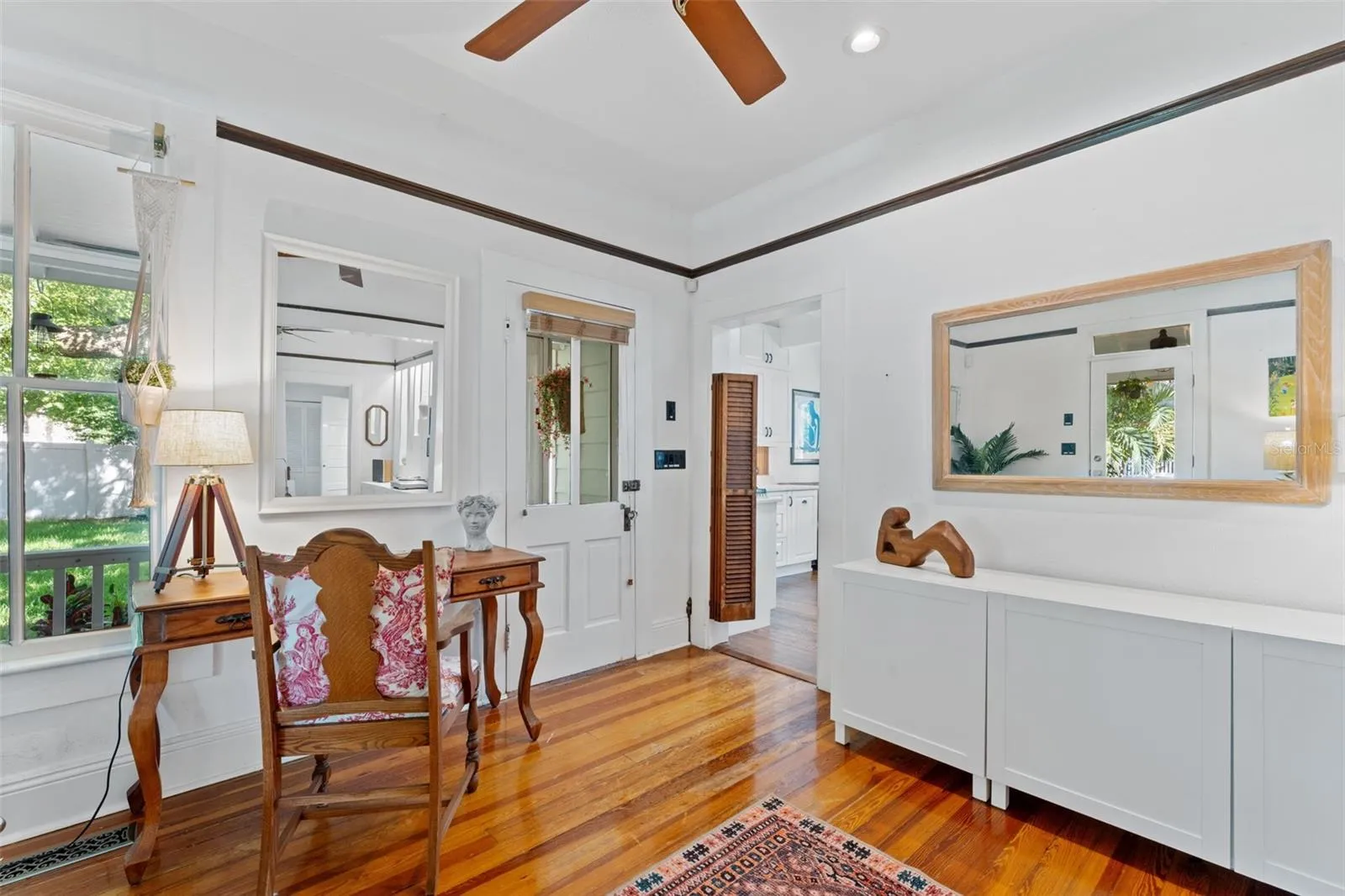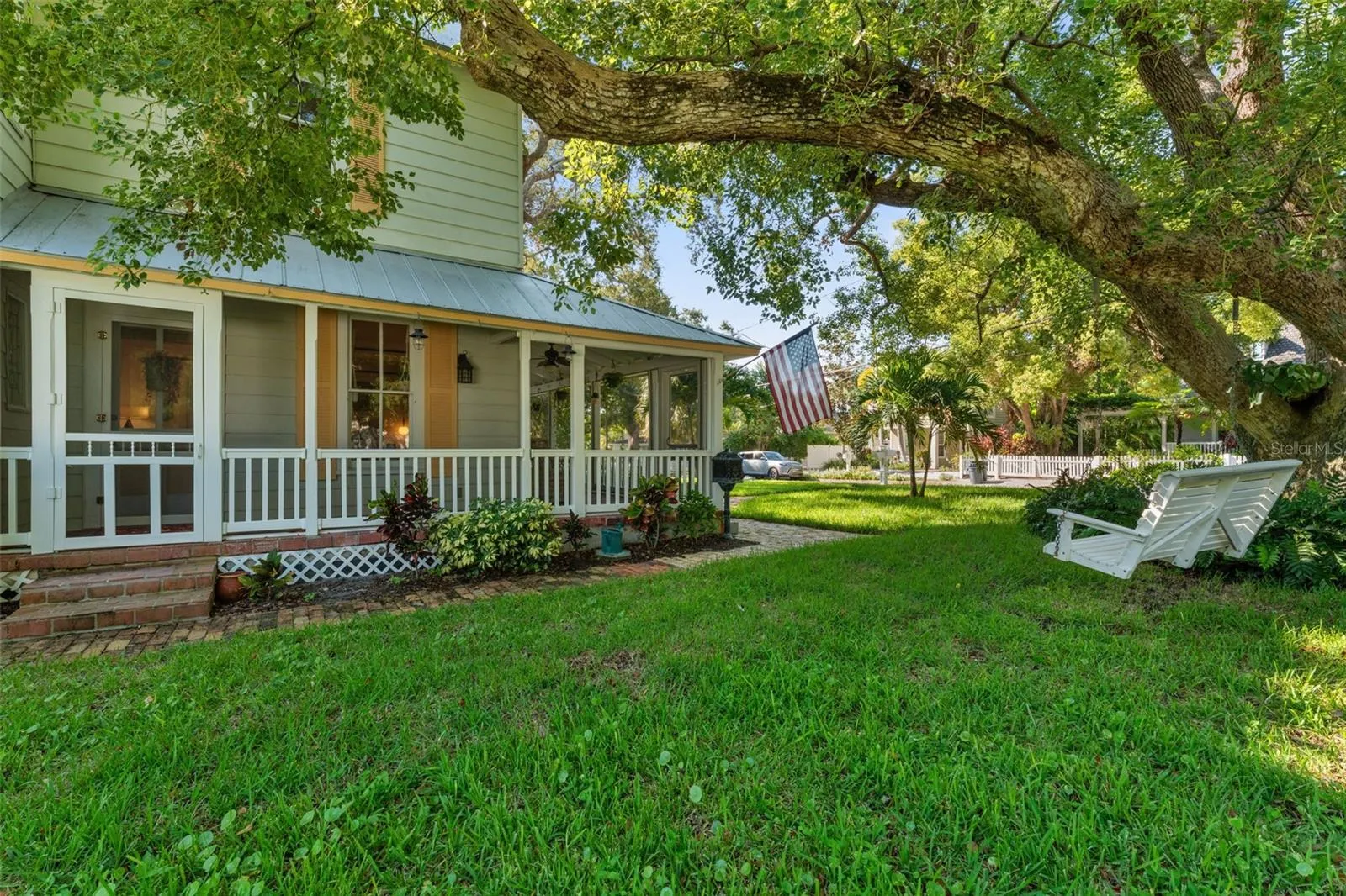 HISTORIC VICTORIAN FARMHOUSE, DOUBLE LOT, LARGE SALTWATER POOL, DOWNTOWN YET PRIVATE, DUAL AC UNITS, GREAT ROOM KITCHEN, TANKLESS WATER HEATER, ZONING ALLOWS 3 RESIDENTIAL UNITS! THIS VICTORIAN FARMHOUSE IN DOWNTOWN ON A DOUBLE LOT WITH A SALT WATER POOL IS YOUR PERFECT DOWNTOWN DUNEDIN HOME! Imagine waking up every day in a home that feels like a storybook come to life. Built in 1900 and beautifully maintained, this iconic VICTORIAN FARMHOUSE sits proudly on a rare DOUBLE LOT, totaling a half-acre on one of the most beloved streets in Historic Downtown Dunedin. The home is set back from the sidewalk, giving it a stately presence and a quiet, private feel. The red brick walkway leads past a front yard shaded by beautiful mature trees complete with a classic tree swing.The wraparound screened porch feels like a step back in time, where mornings start with coffee and evenings end with the warm glow of lantern light and conversation. Inside, this home exudes character with pristine original wood flooring, beadboard walls, and antique door knobs which blend seamlessly with modern updates. Three solar tubes fill the interior with abundant natural light, giving the home a warm and airy feel. With 4 bedrooms plus an office (or 5th bedroom), 3 remodeled bathrooms, and a spacious laundry room, this home is as functional as it is enchanting. The great room style kitchen boasts a copper farmhouse sink, copper bar sink, quartz countertops, neutral cabinetry, pantry, natural gas stove, and new Cafe Refrigerator and Bosch dishwasher. Great for hosting large dinners — just open the French doors to let the party flow to the pool and lanai with built-in speakers throughout the first floor let you set the mood. The primary suite offers a peaceful retreat with a walk-in closet and a spa-like bath featuring a custom antique vanity, glass shower, and private water closet. Additional bedrooms are generous and light-filled, with a second bath offering dual pedestal sinks to match the home’s timeless aesthetic.This property has been thoughtfully updated with a newer dual-zone AC system with gas heat, upgraded electrical, hardwired smoke detectors, aluminum & Hardie board siding, and a brand new fence. Out back, the magic continues with a screened-in pool and covered lanai with red brick pavers, surrounded by an extremely private fenced yard. There’s also a large outdoor closet for storage. The detached oversized 2-car garage was built to support a second story, making it ideal for a future guest suite, art studio, or office. Space for boats, RVs, and golf carts. Zoned MF 7.5 allowing for 3 residential units & this property even allows for a conditional-use bed-and-breakfast. You’re right in the heart of everything — Tukro Coffee just around the corner and Downtown Dunedin’s parades, shops, restaurants, breweries, festivals, and the Pinellas Trail. This isn’t just a home — it’s an experience, a lifestyle, and a rare opportunity to own a piece of Dunedin’s history on one of the most special lots in town.