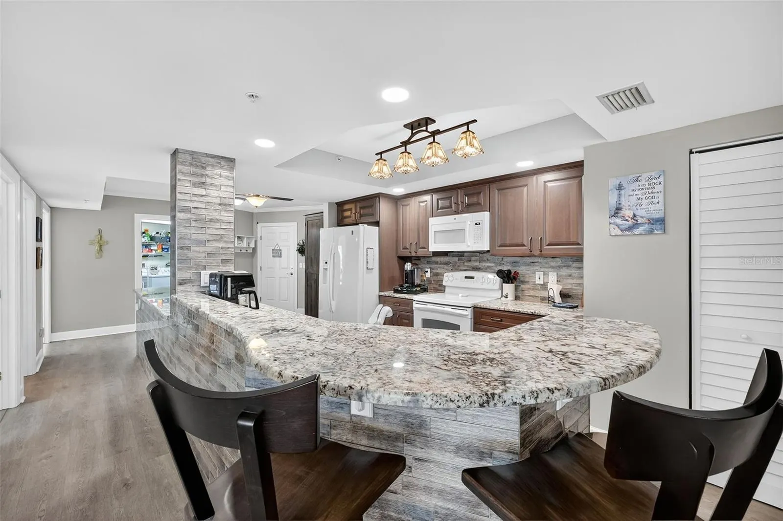 Step inside and experience the calm, coastal sophistication of this thoughtfully designed home, where every detail reflects comfort and style. The designer-updated kitchen is the heart of the home, expanded with an additional 9½ feet of granite countertops and custom cabinetry—a rare and distinctive upgrade that sets this residence apart. Enjoy premium features such as an under-counter mixer lift, pull-out spice racks, and deep storage drawers, combining functionality and beauty for effortless entertaining.