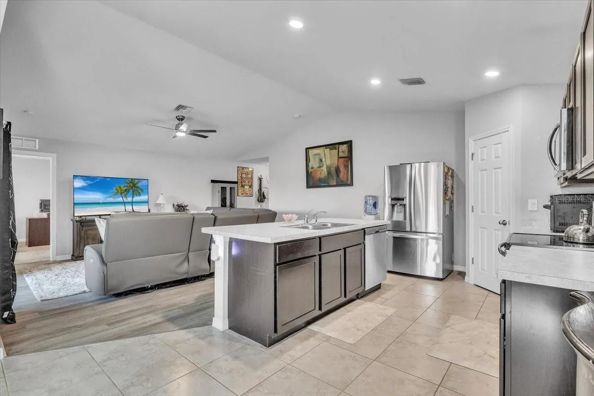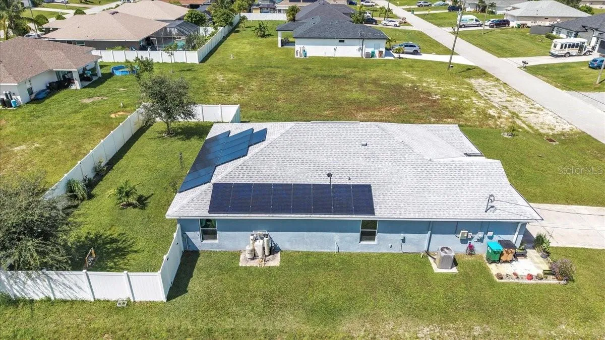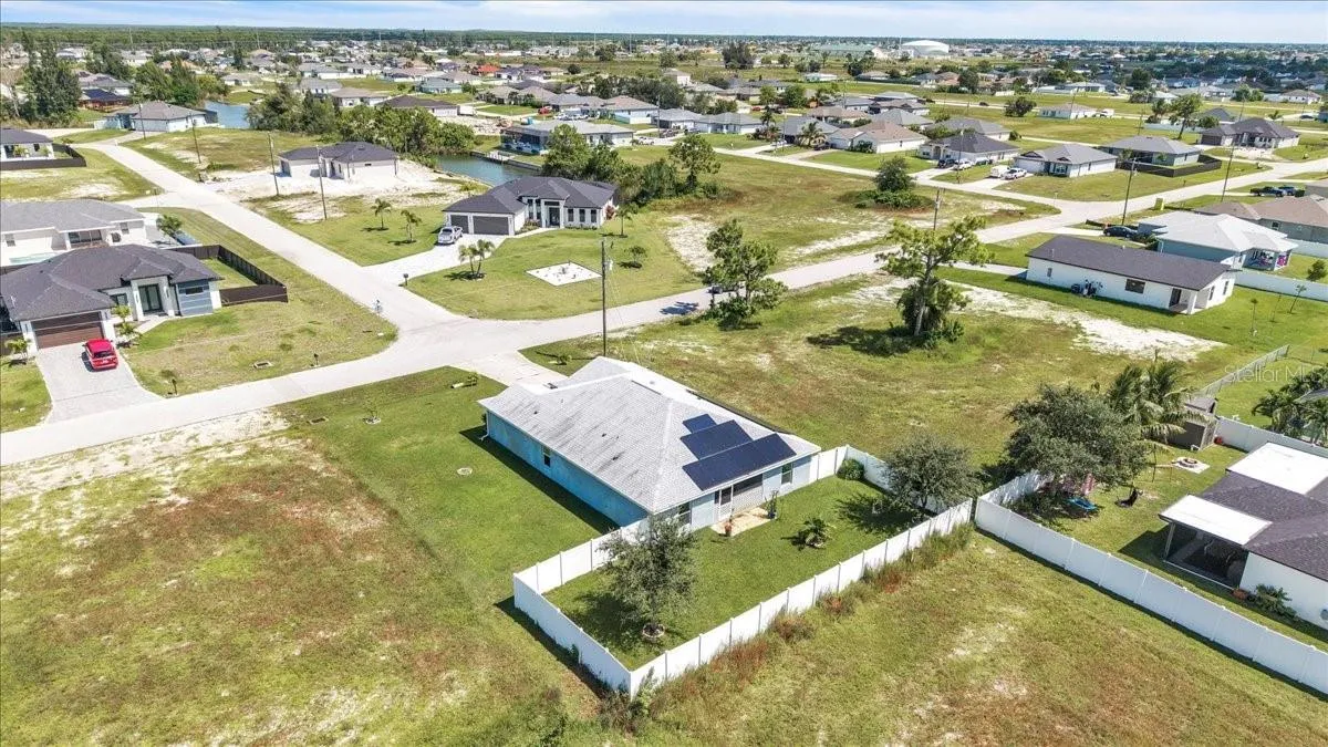 Under contract-accepting backup offers. Located in the desirable Northwest Cape Coral area, this 4-bedroom, 2-bathroom home combines comfort, convenience, and Florida living at its best. Step through the foyer into an open-concept living space where the living room, dining area, and kitchen flow seamlessly together. The kitchen features stainless steel appliances, a center island with seating, a pantry closet, and shaker-style cabinetry—perfect for cooking and entertaining. High ceilings, a mix of Luxury Vinyl and tile flooring, and sliding doors that open to the screened lanai create a bright, airy, and inviting atmosphere. The primary bedroom offers plush carpeting and an attached bath with a walk-in closet, extended vanity with dual sinks, private toilet room, and walk-in shower. Three additional bedrooms feature carpet flooring, built-in closets, and share a full bathroom, offering versatile layouts ideal for family, guests, or a home office. The home also features Solar panels, to be paid off before closing, provide sustainable power and keep electric bills low, a laundry room, water softener, irrigation system, and an A/C installed in 2019. Recent updates include a vinyl fence added in 2022. With a spacious 2-car garage and a private fenced backyard, it’s perfect for everyday living and outdoor enjoyment. This home is minutes from shopping and dining at Walmart, Target, Publix, and local eateries. Outdoor enthusiasts will love proximity to Cape Coral’s 400 miles of canals for fishing and kayaking, as well as attractions like Coral Oaks Golf Course and Sun Splash Family Waterpark. Lee County schools are nearby, and the vibrant commercial hubs of Cape Coral and Fort Myers offer additional entertainment and dining options just a short drive away. Don’t miss this exceptional property—schedule your showing today! SELLER WILL PAY OFF THE SOLAR AT CLOSING WITH TRANSFERABLE WARRANTY!
