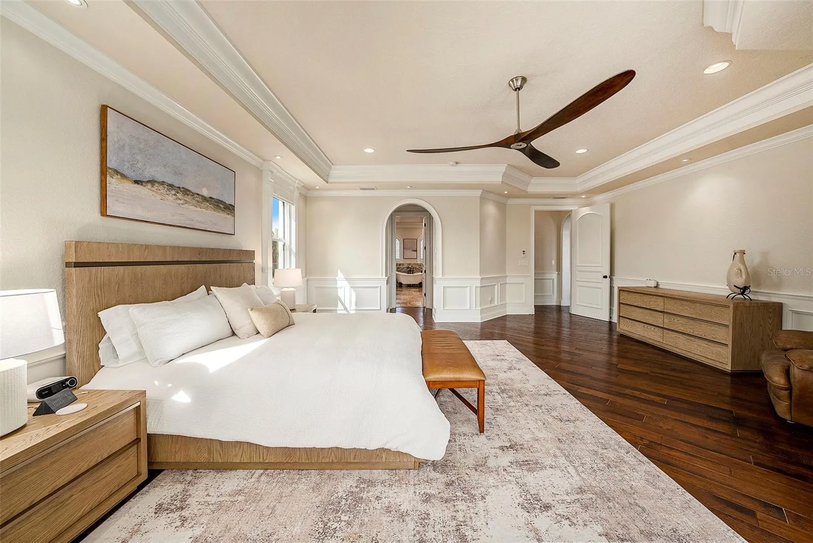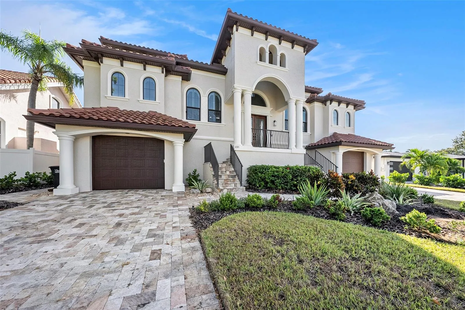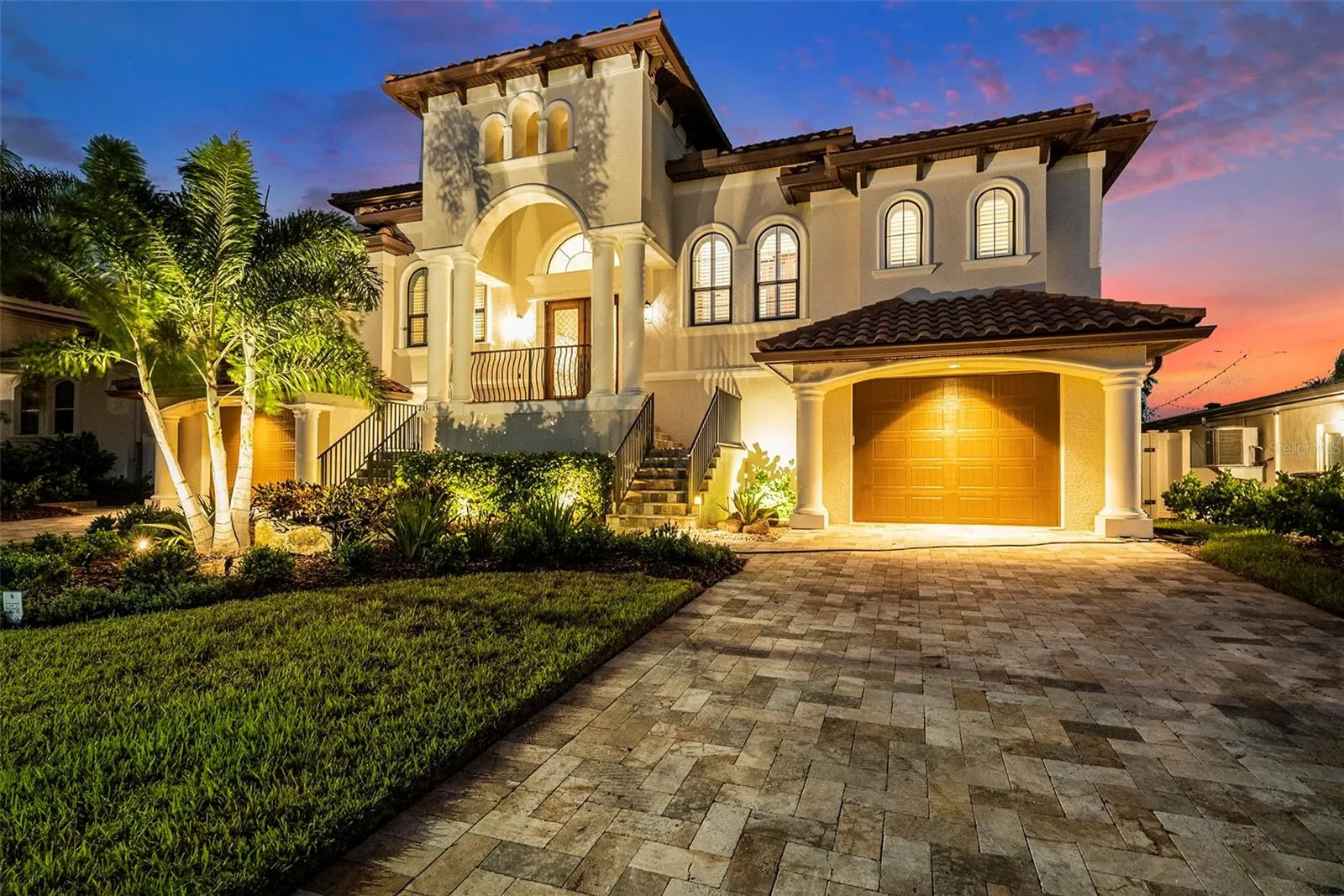This elegant Spanish Mediterranean residence captures the heart of true coastal living with luxurious finishes throughout. Perfectly positioned on the sparkling Intracoastal waters of Clearwater Bay, it welcomes you with airy, sunlit spaces and extensive custom millwork, including coffered ceilings, layered crown molding, tray ceilings, and wainscoting that lend timeless character to every room. An elevator glides to each level, pairing everyday convenience with sophistication.