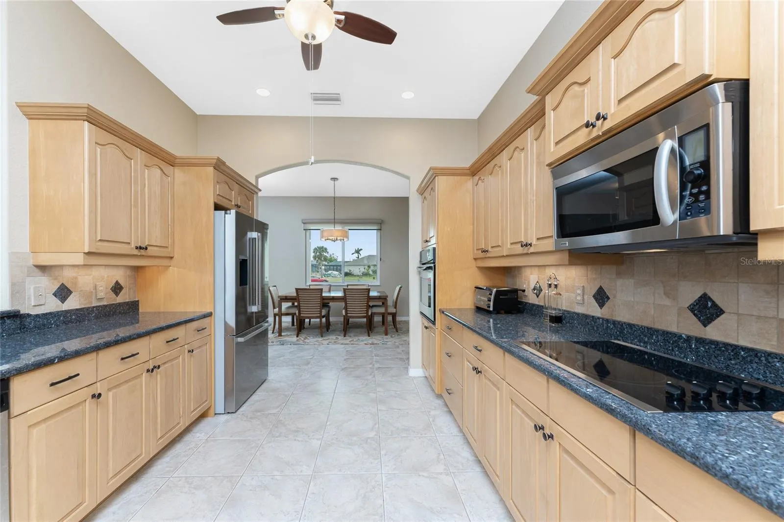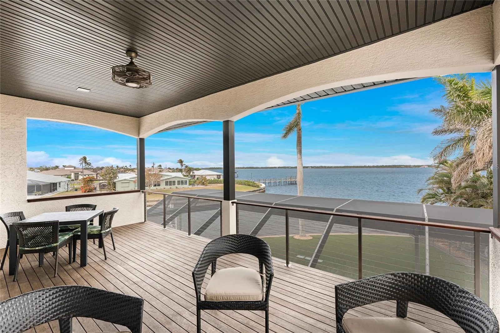 Experience the Best of Myakka Riverfront Living! This extraordinary tip lot estate captures the very best of waterfront living with direct access to Charlotte Harbor and the Gulf of America. Designed for both comfort and style, this 4 bedroom, 3 bathroom home offers a spacious two-car garage with room for three cars, along with multiple porches and balconies where you can enjoy the breezes off the water. Striking curb appeal greets you with artificial turf, water-friendly landscaping requiring no irrigation, a stamped concrete driveway, a 2022 metal roof, tiger wood floor tiles, and impressive hurricane impact double entry doors. The upstairs front balcony, finished with tiger wood flooring and ceiling and retractable screening, creates an inviting retreat for morning coffee or evening sunsets. Inside, sweeping water views immediately catch your eye through a triple set of pocketing sliders in the great room. Tile flooring throughout the main living areas ensures effortless maintenance. The kitchen is a perfect gathering place, featuring a raised breakfast bar, granite countertops, crown-molded cabinetry, a closet pantry, and an adjoining breakfast nook with a large window framing panoramic views. A flexible room adjacent to the kitchen offers space for a 4th bedroom, office, or hobby room, and opens to the patio. The primary suite is a true sanctuary with sliding doors that lead to the pool, two walk-in closets, and a spa-like ensuite complete with jetted tub, a walk-in shower with multiple showerheads, and dual cultured marble vanities with a makeup area. Downstairs, a generously sized guest bedroom and updated bathroom with modern vanity, tile backsplash, and walk-in shower provide comfort and space for visitors. The grand staircase leads to an additional upper flex space, perfect for a library or home office, with double doors opening to a second ensuite bedroom. Here you will find breathtaking water views through triple sliders, a walk-in closet, a dual-sink cultured marble vanity, and a spacious walk-in shower with multiple showerheads. Step outside onto the private balcony and watch the boats go by while surrounded by the elegance of tiger wood flooring and a tongue-and-groove style vinyl roof. The outdoor living space with expansive clear-view screened lanai is designed for entertaining and relaxation with a heated pool, stamped concrete decking, and tongue-and-groove style ceiling. Artificial turf continues in the backyard, leading to a concrete seawall and an updated tiger wood dock equipped with electric, water, and a 10,000lb boat lift. Pilings are already in place for a future second lift. This home offers peace of mind with a 26 kW whole-house generator, 500 gallon buried propane tank, impact-rated or shutter-protected windows and doors, 8’ sliders, a whole-house water softener, Manablock plumbing, blow-in insulation, and an 11’ elevation. Located close to Englewood and Port Charlotte, you’ll have easy access to shopping, dining, medical facilities, spring training baseball, beautiful Gulf beaches, and endless opportunities for recreation. Spend the day fishing for Tarpon in Charlotte Harbor, cruising to Stump Pass, or enjoying the sandbars of Boca Grande. This home at 3015 Curry Terrace offers the complete Florida lifestyle from sunrise on the water to evenings spent poolside. Schedule your private showing today and experience the beauty of riverfront living.