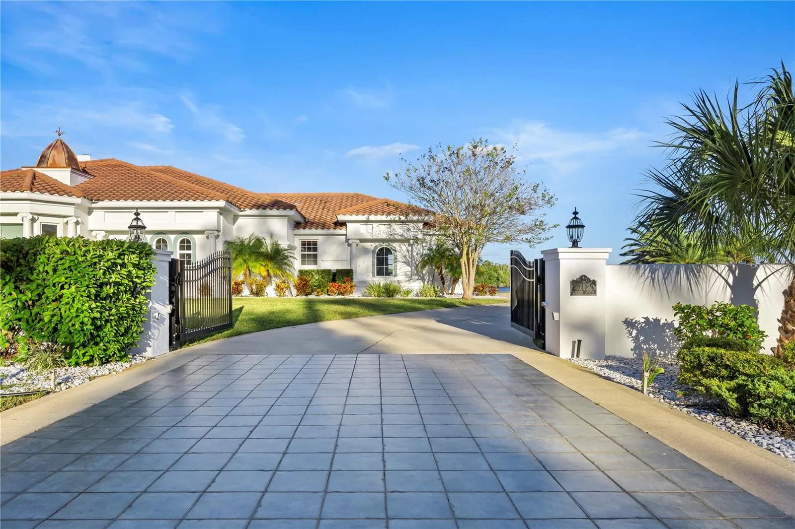 Rare Intracoastal estate on a triple lot! 660 Lambert Dr offers over 240 ft of direct ICW frontage —A RARE Intracoastal FIND! This Mediterranean-inspired residence features 3,476 sq ft living (5,431 total), a grand marble foyer, 2 fireplaces, gourmet kitchen with double ovens, 2 pantries with abundant storage, and a master suite with sunken tub, walk-in shower, cedar closet & built-ins. Additional highlights include 2 additional en-suite bedrooms plus a flex room, saltwater pool with fountains, detached pool bathroom cabana, newly refurbished dock, 3-car garage, freshly painted exterior, security system, and private gated entry. “Tropically” landscaped grounds with updated irrigation add to the appeal of this serene retreat. This one-of-a-kind Intracoastal estate offers timeless elegance, privacy and a front row seat to a vibrant coastal lifestyle…..All right at your doorstep.