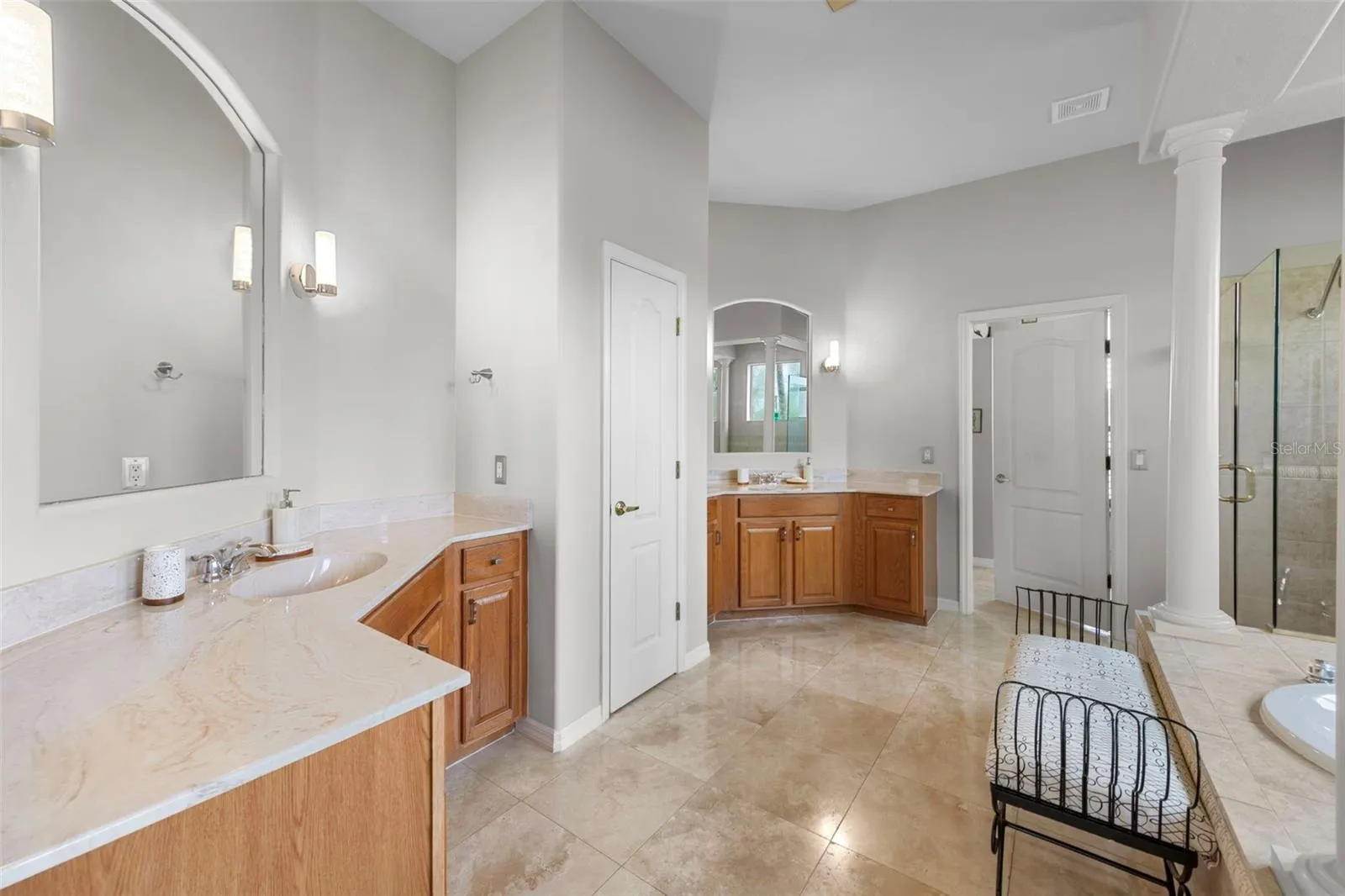 Welcome to luxurious waterfront living with stunning water views from nearly every room.No Flood Insurance Required. A spacious foyer leads to a large great room, featuring ceramic tile. Sliding glass pocket doors open up to embrace the Florida lifestyle right from your living room. The kitchen is perfect for entertaining, with a central island, ample cabinet and storage space, modern appliances, and a pantry. There’s an indoor laundry area with a washer and dryer, plus a double-size laundry sink in the garage. The bedrooms follow a split plan, with two additional rooms that can serve as bedrooms or an office. The primary bedroom is incredibly spacious, offering water views, wood floors, and access to a spa-like bathroom with a large Jacuzzi tub, separate shower, and plenty of linen and closet space. It also opens onto the lanai. The other bedrooms are roomy, and a guest bathroom with a shower completes this side of the home. Step outside to the Florida-style patio with ample seating, a shaded lanai area, and plenty of space for sunbathing. The heated waterfall pool is perfect for relaxation, offering spectacular sunset views over a wide canal and lake. For your protection there are hurricane screen shutters along the back lanai and shutters for most all the other windows. The garage door is hurricane rated too. This home boasts over 2,300 sq. ft. of living space, with water, sewer, and irrigation in place. The roof was redone in 2022, and the AC and water heater have been recently updated.