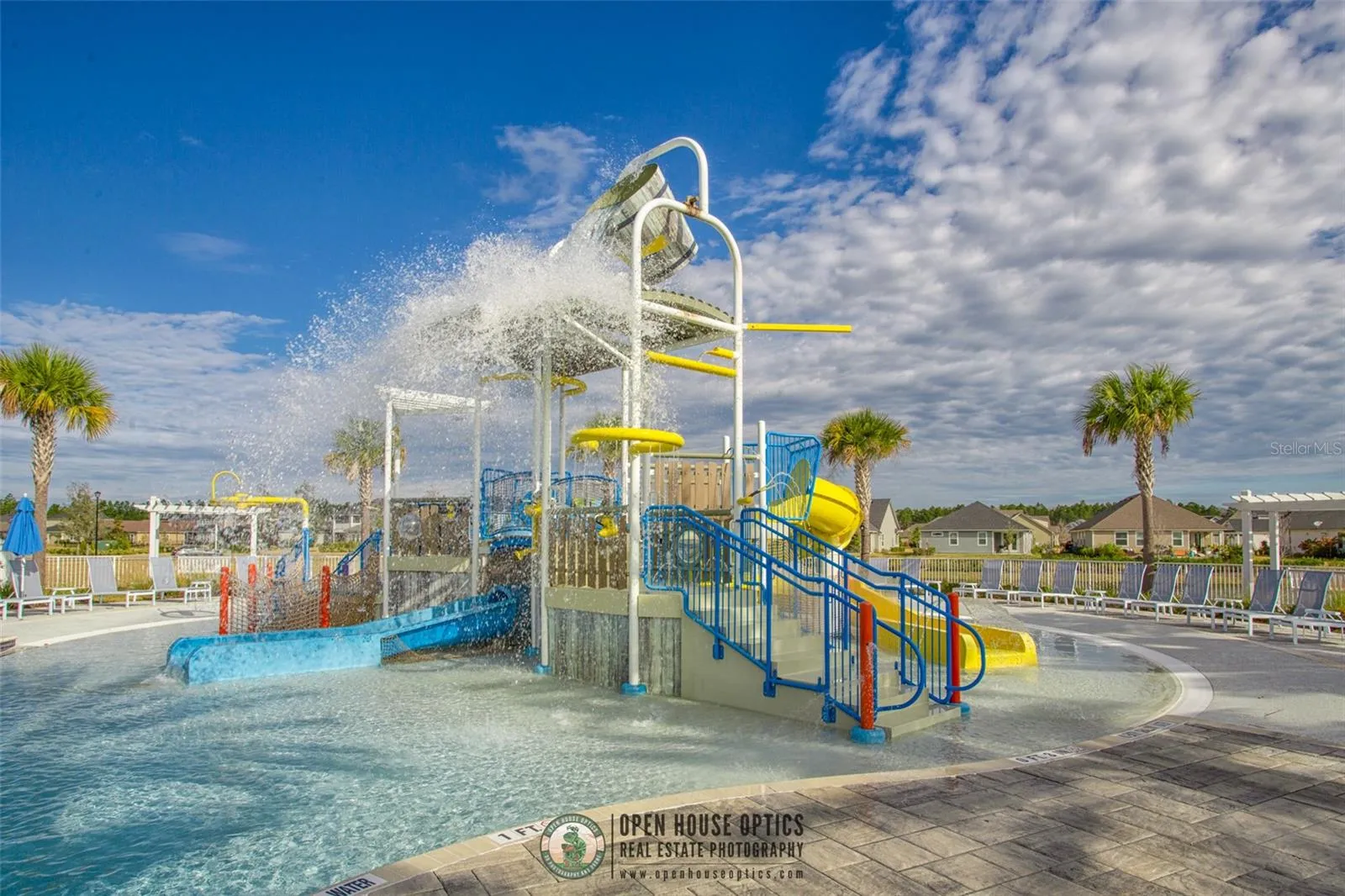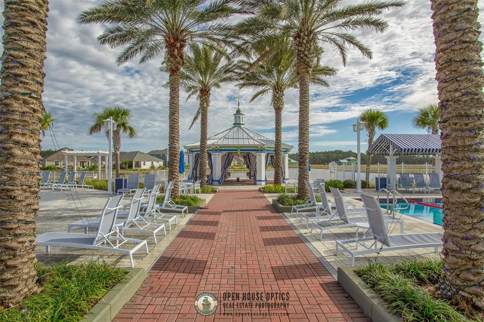 Outdoor living shines with a screened lanai, remote-controlled blinds, and a fully equipped outdoor kitchen with granite counters. The paver driveway, oversized epoxy-coated garage, and irrigation system add convenience and curb appeal.