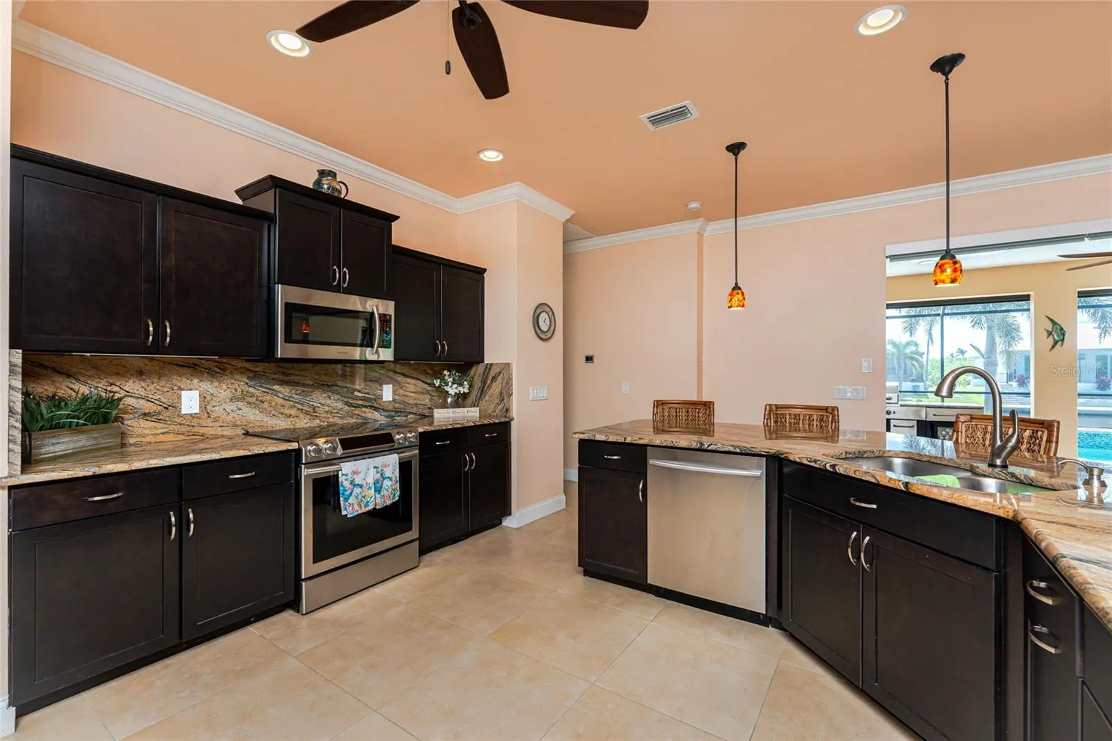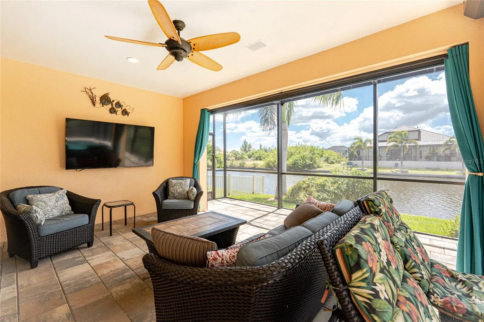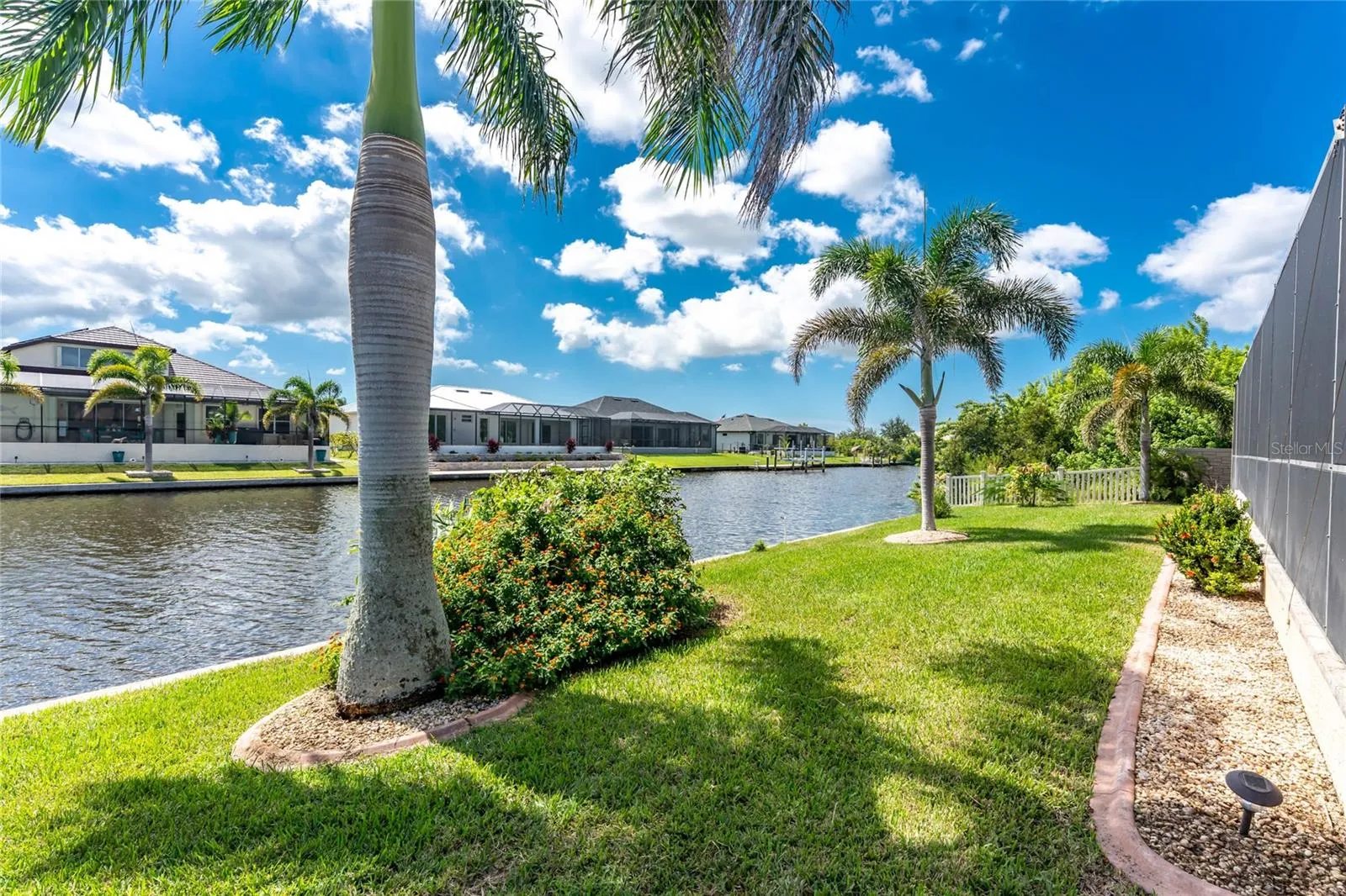 Motivated Seller…….Step into unparalleled luxury with this Gulf-access waterfront pool home in South Gulf Cove. Enter thru beautiful custom glass French doors to breathtaking south-facing canal and pool views with direct boating access to Charlotte Harbor and the Gulf of Mexico. The opulent interior truly captivates and offers a great entertaining space. Blue Stream high-speed fiber and transferable low-cost flood insurance are available. Offered partially furnished, the home features an open split floor plan with 3 bedrooms, 3 full bathrooms, including one with pool access, and a flex office/den with French doors. High tray ceilings, crown molding, abundant natural light, and Low-E hurricane-impact windows enhance the spacious feel. The chef’s kitchen with additional coffee/wet bar is designed for both function and elegance. It boasts Samsung stainless steel appliances, a massive angled island, granite countertops, solid wood soft-close cabinetry with Rev-A-Shelf swing-outs, copper prep sink, and a swing-up stand mixer shelf with outlet. A convection oven, fast-boil cooktop, dual timers, touch faucet, and 2024 refrigerator add convenience. The kitchen and living area flows seamlessly thru 4-panel sliding doors to the dual lania. The primary suite is a serene retreat with oversized slider to the pool, tray ceiling, and spa-inspired ensuite. The bathroom showcases dual vanities, a walk-through porcelain tile shower with dual showerheads and full-length granite bench, and a 6-foot light therapy spa tub with jets, bubbles, heater, Bluetooth, and chroma therapy. Enormous walk-in closet designed by Tailored Living with cabinetry, shelving, and drawers. Guest accommodations are equally impressive. Both large rooms provide walk-in closets and are separated by a full bath! One guest bedroom includes its own 3rd ensuite bath with pool access and slider to the lanai creating a private retreat. Outdoor living is a showstopper. A full-length pavered lanai with 2 seating areas, surround sound, recessed lighting, ceiling fans, and outlets overlook the heated pool with waterfall, sun shelf, removable child safety fence, and outdoor shower. The summer kitchen offers granite counters, hot water sink, grill, griddle, burners, refrigerator, freezer with ice maker, beverage cooler, and kegerator. A Fenced yard with pet door and seawall w/water and electric adds convenience. Many value-added upgrade enhancements give comfort and peace of mind: Electric roll-down storm shutters, generator transfer switch, whole-house water treatment with reverse osmosis in the kitchen/bar, new water heater, central vacuum, wood closet shelving, washer and dryer with steam, I-Wave C UV air purifier, surround sound, custom blinds and remote-control shades, Taexx in-wall pest control, Rainbird irrigation, Honeywell WiFi thermostat, and advanced wired security. Exterior enhancements continue the luxury theme with a 2023 designer concrete tile roof with solar vent fans, fresh paint, Simtek rock-face vinyl fencing, custom curbing and mature landscaping. The full 3-car garage offers built-in storage shelving and wash sink. The home is ideally located minutes from Boca Grande, Manasota Key multiple beautiful beaches, golf courses, restaurants, and entertainment. This is more than just a home—it’s luxurious waterfront living, blending indoor elegance with outdoor beauty in one of Florida’s most desirable boating communities.