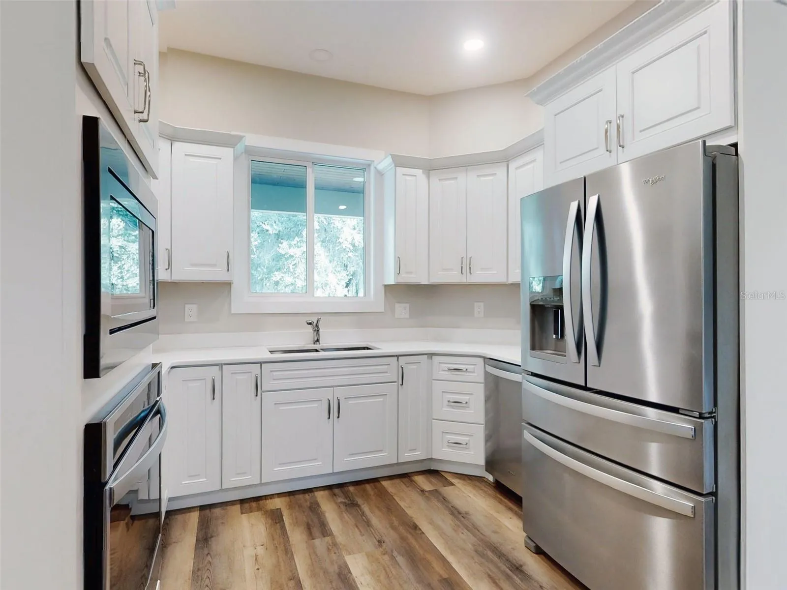 Country living meets modern convenience in this serene wooded retreat built in 2021, featuring 3 bedrooms and 2 baths. Custom from top to bottom with inspired touches throughout, this home offers a desirable open split-bedroom floor plan with cozy living areas paved in luxury vinyl wood-style flooring. The inviting living room centers around a glowing electric fireplace and provides access to both the front and back yards, while a formal dining area connects seamlessly to the well-appointed kitchen at the heart of the home. The kitchen showcases stainless steel appliances, quartz countertops, and a charming breakfast nook, with a massive walk-in pantry just off to the side offering ample storage and direct access to the generous laundry room, complete with a linen closet and a built-in secure safe. The owner’s suite is a private retreat with a walk-in closet and an elegant ensuite bath featuring dual sinks set in quartz vanities and a spacious walk-in shower. This space also opens to the backyard, where an outdoor oasis awaits. Surrounded by mature native foliage, the covered patio overlooks a lush yard and a large detached shed/workshop equipped with electricity—perfect for a studio, gym, or hobby space. Built with concrete construction, impact windows, and a metal roof, this 2021 home is as efficient as it is inviting. Additional highlights include a whole-house propane generator for peace of mind and over three acres of land zoned RA, allowing for both residential use and livestock. There’s plenty of room to park your boat, RV, or golf cart in addition to the attached two-car garage. Experience the feeling of a secluded ranch while remaining close to shopping, dining, the beach, and the river. This one is a must-see!