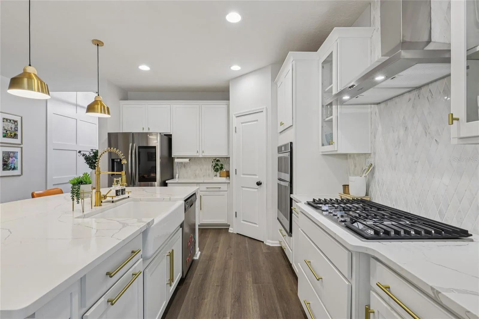 Welcome home to this beautifully maintained 5-bedr, 4-bath home that perfectly blends luxury, comfort, and functionality. From exquisite interior design to a spectacular outdoor living space, this residence offers something for everyone. Step inside to find elegant finishes and custom touches throughout, including built-in office with rich, custom cabinetry—ideal for working or learning from home. Main level features a shiplap fireplace wall, private guest suite with a full bath, perfect for visitors or multigenerational living. Upstairs, the spacious master suite is a true retreat, complete with a spa-like ensuite bath and generous walk-in closet. A large bonus theater room provides the ultimate movie-night experience for the whole family. Enjoy cooking and entertaining year-round in the fully equipped outdoor kitchen, overlooking the expansive, fully fenced backyard that backs onto a peaceful preserve—offering privacy and scenic views. Rosewood Plan w/bonus