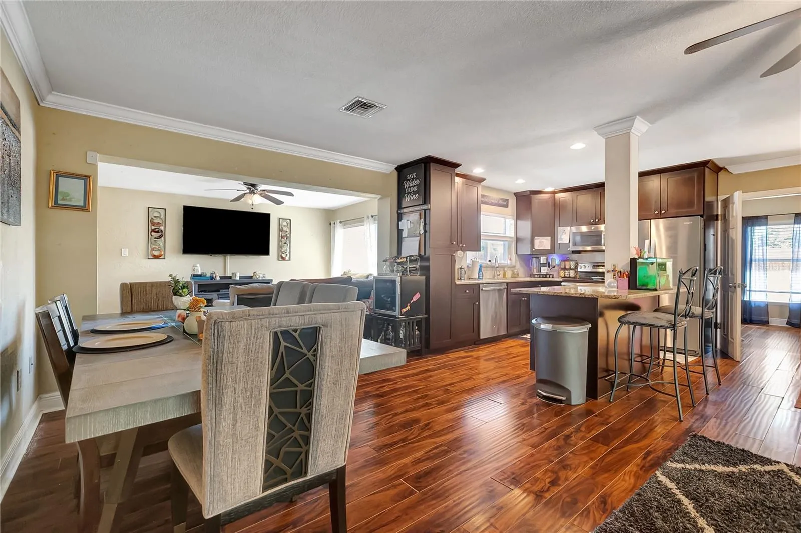 : Open Floorplan, Split Bedroom, Walk-In Closet(s), Stone Counters, Living Room/Dining Room Combo