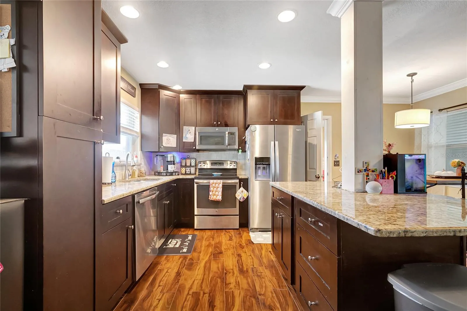 Discover the perfect blend of classic Florida charm and modern functionality in this beautifully updated 4-bedroom, 3-bathroom home located in the desirable Highland Pines neighborhood. Designed with a versatile split floor plan featuring two spacious primary suites, this home offers flexibility for families, guests, or multigenerational living. The fully updated kitchen boasts a center island with breakfast bar, granite countertops, and stainless steel appliances. It opens seamlessly into two separate dining areas and a warm, inviting family room overlooking the backyard. Choose from two oversized primary bedrooms, each with its own en suite bathroom, while two additional bedrooms share a well-appointed hall bath. Enjoy peace of mind as you are NOT IN A FLOOD ZONE. All of the major systems have been upgraded, including a new roof (2024), HVAC system (2023), and hot water heater (2023). Situated on a fully fenced, oversized corner lot, this home includes a two-car garage, two driveways, and plenty of space to park your RV or boat. Located in a well-established neighborhood perfect for Florida living, you’ll be just minutes from shopping, dining, golf, and the award-winning Clearwater Beach.