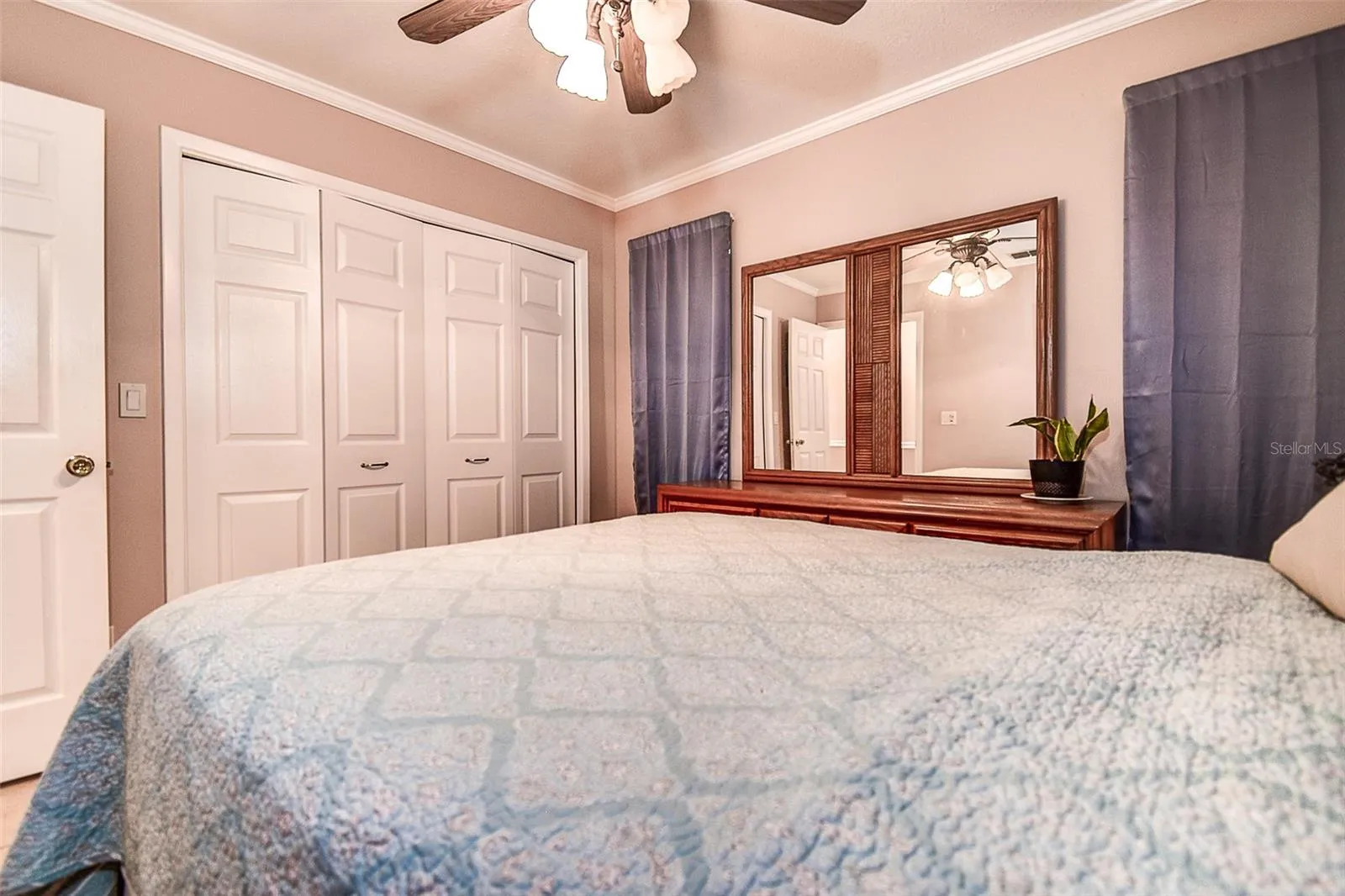 The primary suite is generously sized with a walk-in closet, and the en-suite bathroom. The second bedroom and hall bath are on the other side of the house, for a split-bedroom layout. Inside laundry with utility sink. Two-car spacious garage with double driveway for off-street parking. Low maintenance HOA $163.17/mo provides pool, clubhouse, lawn irrigation and maintenance. Easy approach to PIE and TPA airports. The Roof is a 50-year roof with 45 years of life left in it. Attic over garage has a floor around the drop-down stairs.