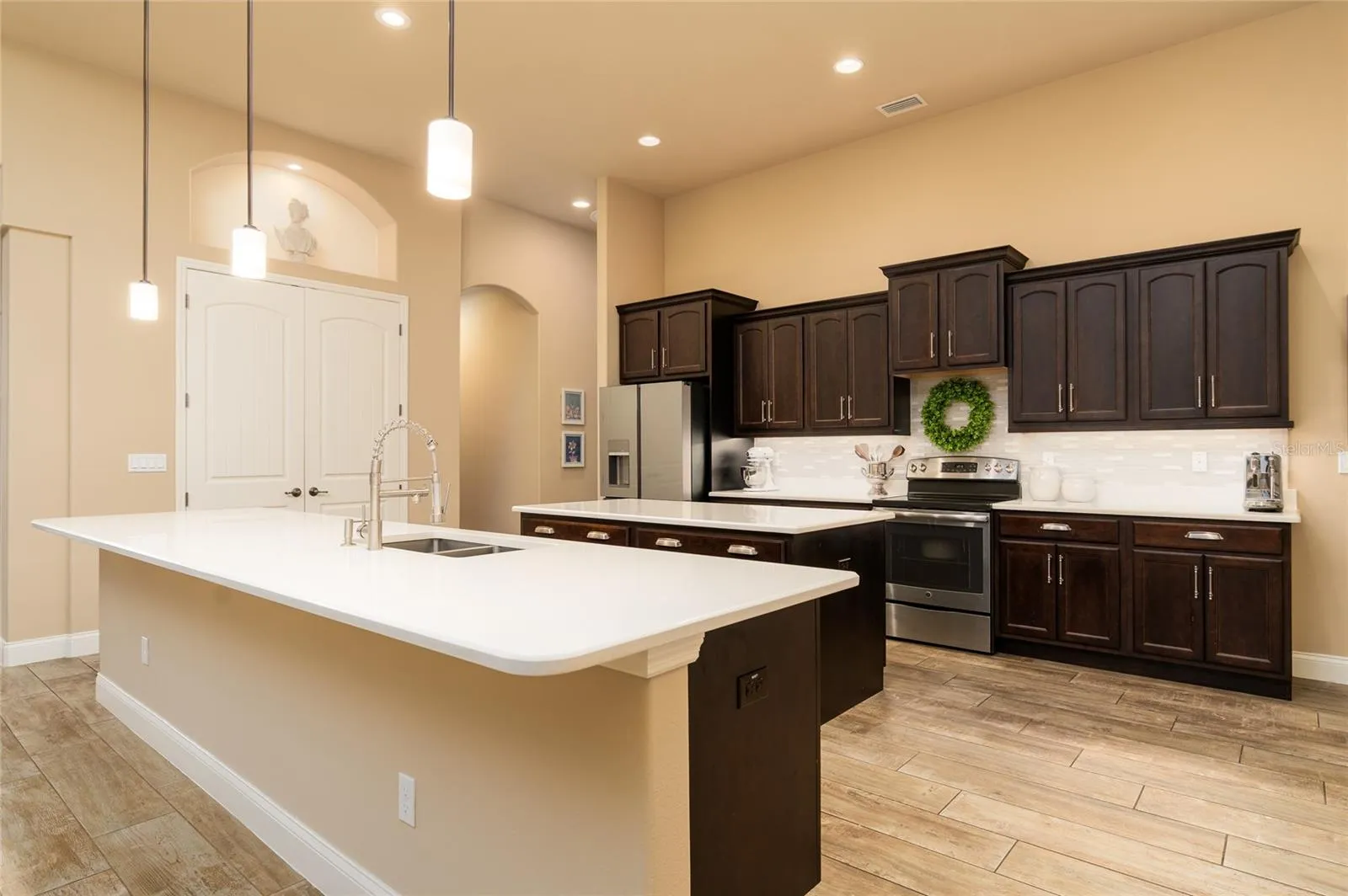 Nestled on a desirable corner lot in the sought-after Promenade Parke community in New Smyrna Beach, this beautifully appointed Paytas built Barcelona model offers 4-bedrooms, 3-bathrooms and is a concrete block home featuring refined living and thoughtful design throughout. Boasting a spacious 3-car garage and a new roof installed in 2025, this home blends timeless quality with modern updates. Step inside to discover tile flooring throughout, creating a seamless flow from room to room. The heart of the home is the expansive living area, where a tray ceiling with crown molding adds architectural interest, and large sliding glass doors open effortlessly to the lanai, inviting in natural light and fresh air. The gourmet kitchen is a true showpiece, featuring dual oversized islands, quartz countertops, and premium stainless steel appliances, including a Bosch dishwasher and Café refrigerator. A new sink faucet adds a contemporary touch, enhancing both style and functionality. Perfect for entertaining, the screened lanai boasts a fully equipped summer kitchen with a full range and sink, ideal for alfresco dining and gatherings. Three sun tunnels throughout the home provide additional natural illumination, creating a bright and welcoming ambiance. Completing this exceptional offering is a fully remodeled guest bathroom, blending comfort and sophistication for visiting family and friends. The spacious 15×15 primary bedroom features a cozy 10×8 sitting area, a large en-suite bath with a walk-in shower and relaxing soaking tub, and a generous walk-in closet for ample storage. This home offers a nice private green space behind the home. It is hard-wired for a security system and an electric car. This is more than just a home — it’s a lifestyle. Don’t miss the opportunity to make this elegant retreat your own.