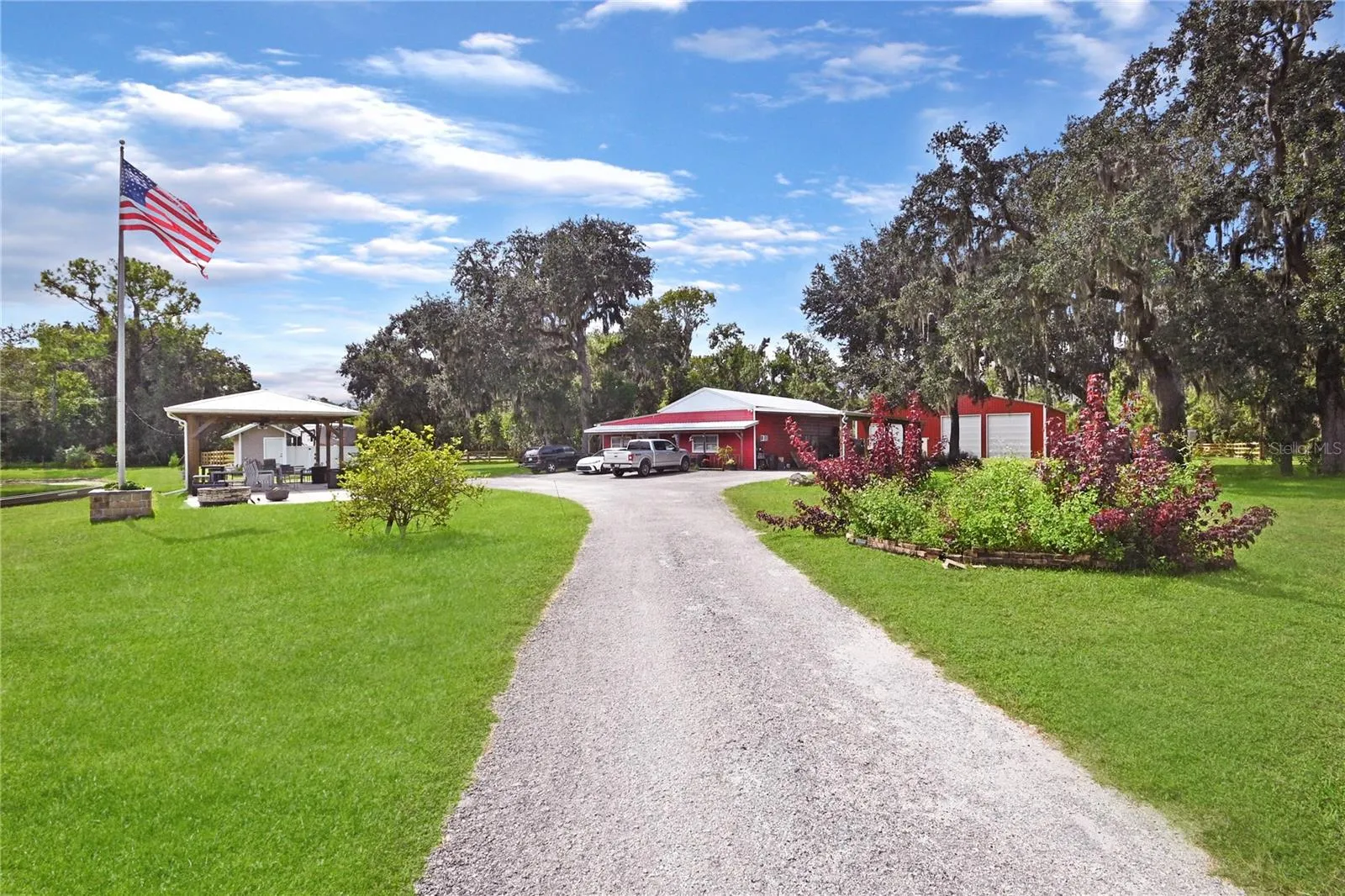 Looking for space, privacy, and freedom — all within minutes of the beach? This rare 5.7-acre ranch east of I-95 in New Smyrna Beach is the perfect blend of peaceful country living and unbeatable location. With four parcels sold together and agricultural zoning, this property offers endless possibilities for animal lovers, hobbyists, small business owners, or anyone craving wide-open space near the coast. There are two impressive buildings designed for versatility and function. The front building has a little bit of everything — a dedicated office, a cozy 1-bedroom apartment with shared kitchen and bath, a special dog grooming room, a large barn-style garage with loft, and a covered carport currently used for tractor and feed storage. There’s even an air-conditioned dog house — because everyone deserves comfort here! The second building (built in 2022) is a dream workspace — 3,600 square feet with spray foam insulation, 16’ high sidewalls, and three roll-up doors (two 14’, one 12’). Outfitted with 110v and 220v outlets along every wall, it’s ideal for large equipment, car projects, RV or boat storage, or any creative pursuit. Upstairs, there’s a nearly finished office ready for your final touches, while downstairs offers an unfinished area perfect for a paint station or wood shop. Outdoors, the property truly shines. It’s fully fenced and cross-fenced with both 4-board and wire fencing, multiple pastures with water and shade, and RV parking with 30-amp service. Enjoy gatherings by the small lake, complete with a floating dock, fountain, pavilion, covered patio, open seating area, and fire pit — the ultimate spot to unwind and take in the Florida sunsets. Whether you’re looking for a private retreat, equestrian setup, hobby farm, or place to run your business from home, this New Smyrna Beach property has it all — space, flexibility, and an unbeatable location just minutes from the sand, shops, and dining. Only 1-mile to Tractor Supply, 2-miles to Publix, 3-miles to I-95 or Canal Street and 5-miles to Flagler Avenue and the beach! Come see this truly rare find — you won’t find another like it east of I-95 in New Smyrna Beach! All measurements are approximate.