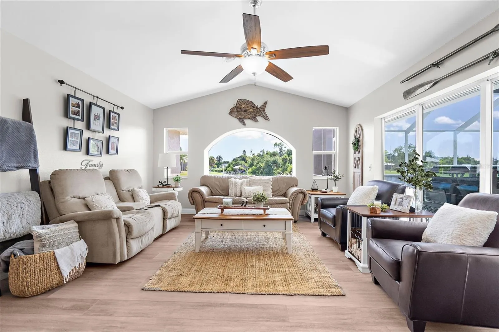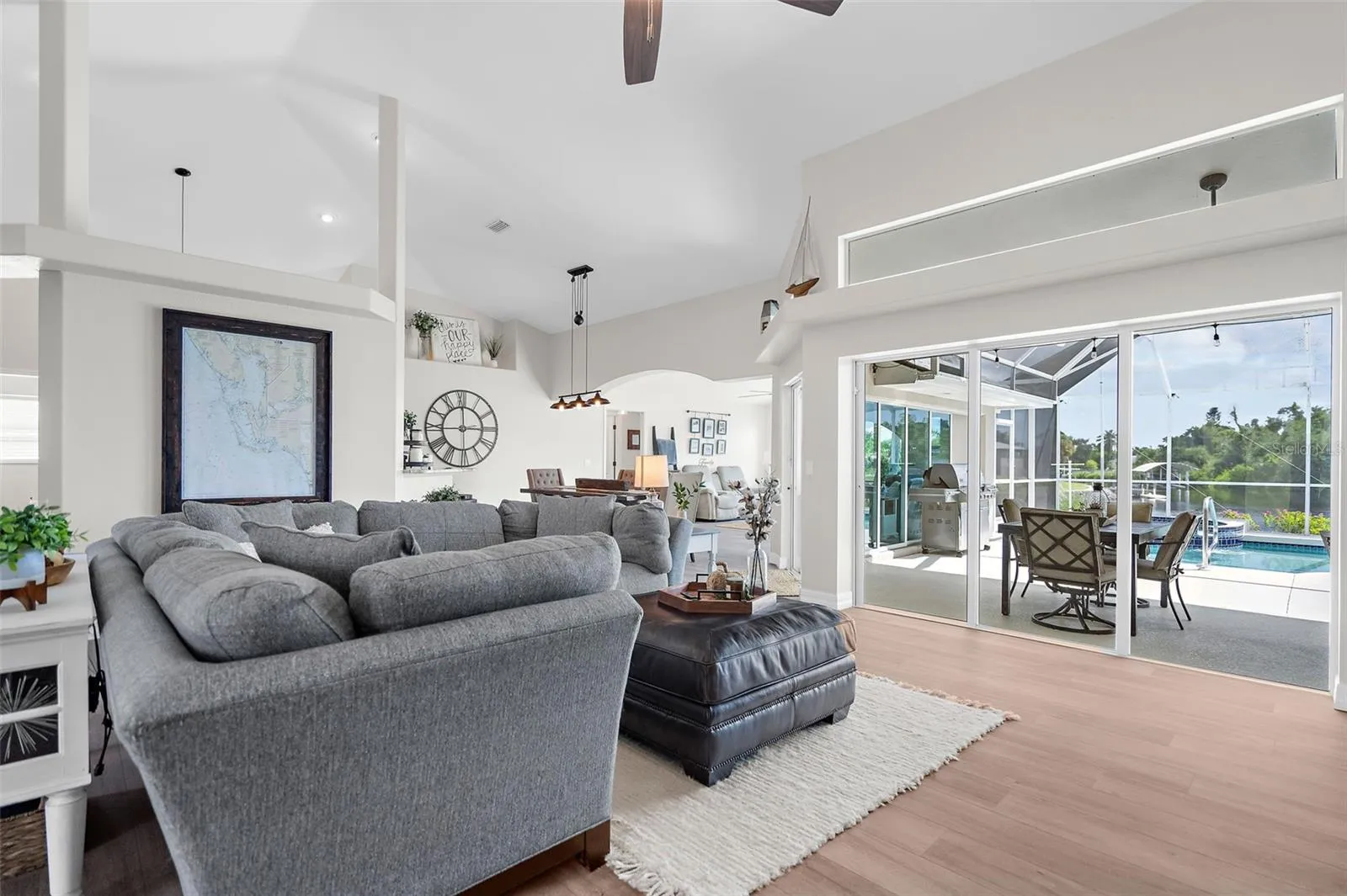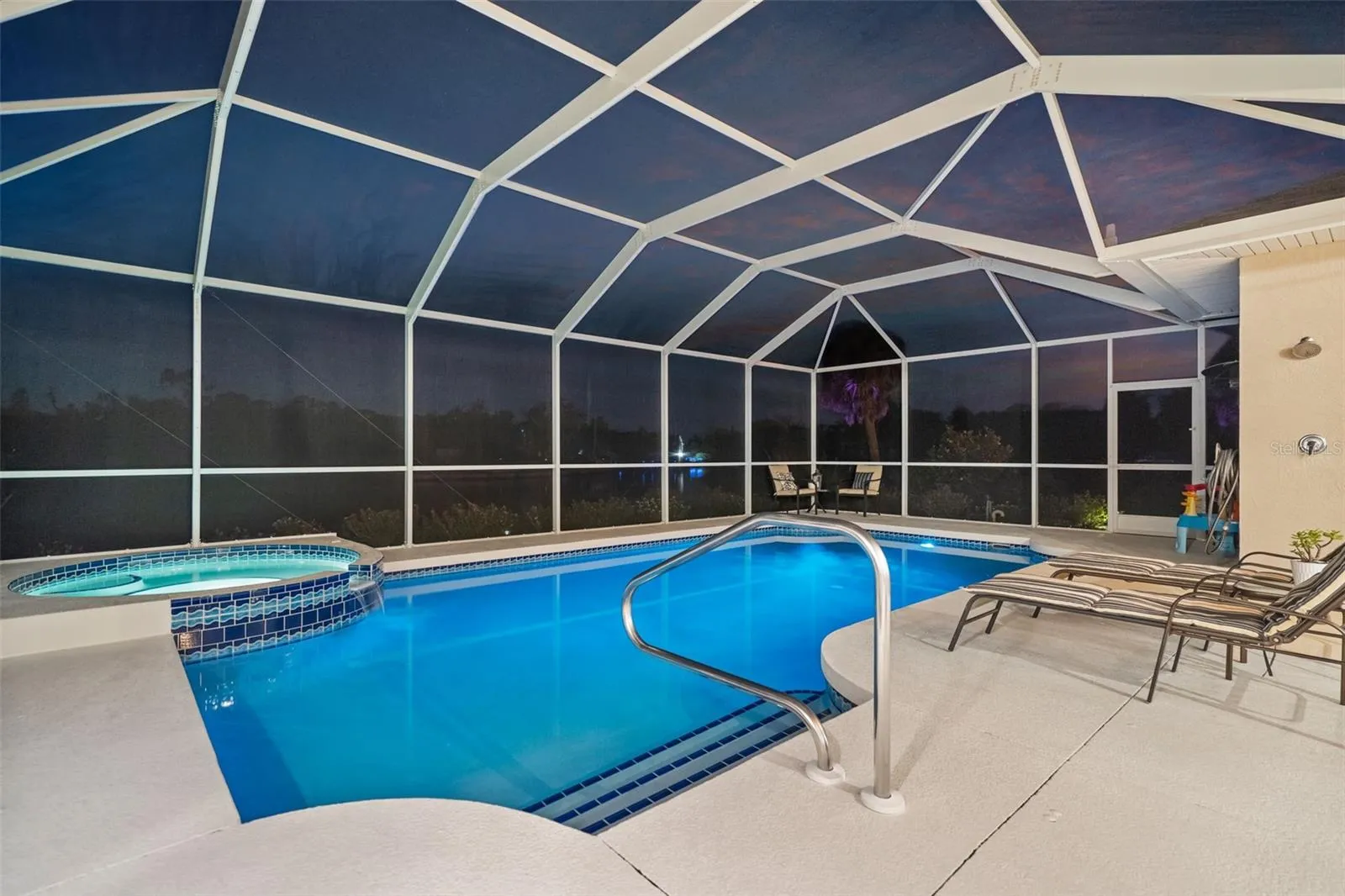 This beautifully renovated home offers a refined blend of modern luxury and waterfront tranquility. The open-concept layout features luxury vinyl plank flooring, energy-efficient windows, and fresh neutral tones throughout. A chef’s dream kitchen boasts stainless steel appliances, granite counters, and custom cabinetry—ideal for cooking or entertaining. Enjoy a dedicated home gym and step outside to a resort-style backyard with a sparkling pool and spa, raised garden beds, and lush landscaping. With a boat lift and private dock on the Cheshire Waterway, this is a rare opportunity to enjoy Florida living at its finest—private, peaceful, and beautifully connected to nature.