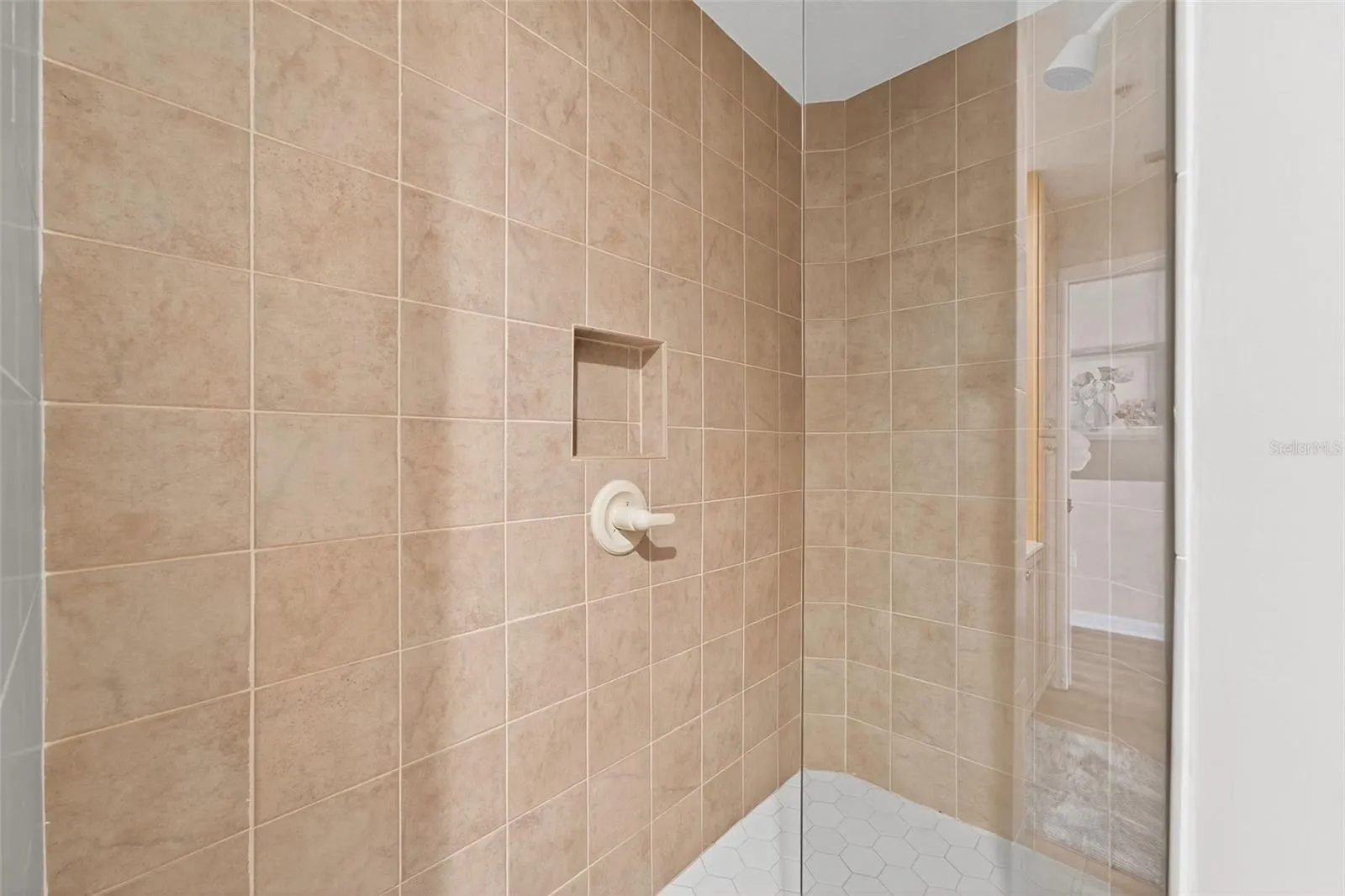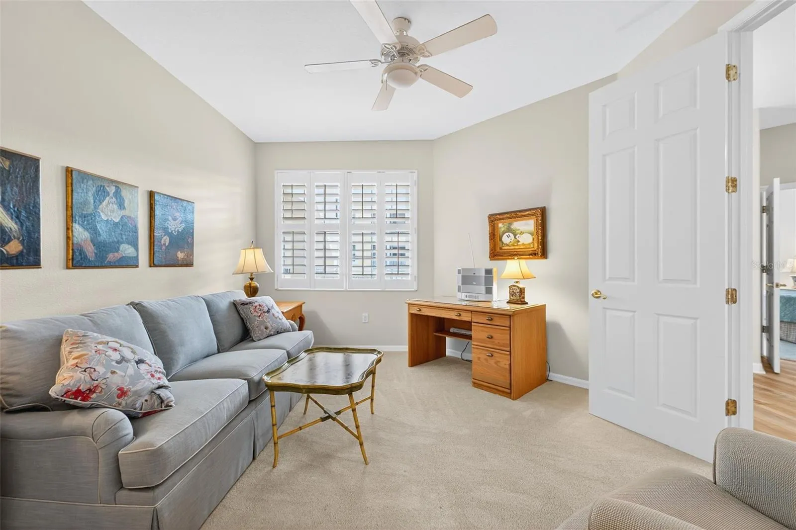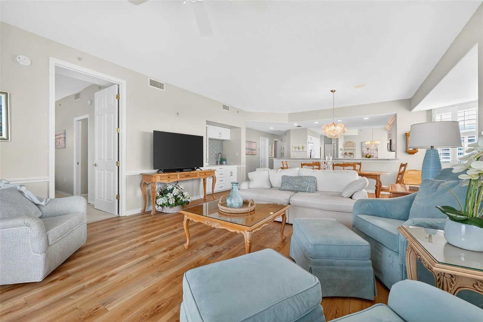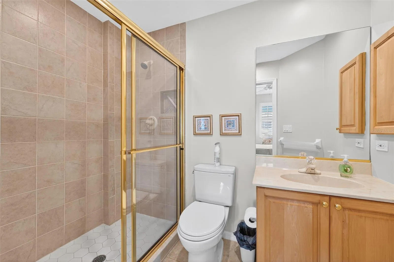 The open floor plan flows into the living and dining areas and onto the enclosed porch, where 180 degree views of Casey Key and the sparkling bay create a breathtaking focal point. Both oversized bedrooms are en suite with generous walk in closets. The primary suite features dual closets, tranquil water views, and a spa inspired bath with jetted tub, double vanity, and makeup counter. The guest suite has its own private entrance, walk in closet, and full bath.