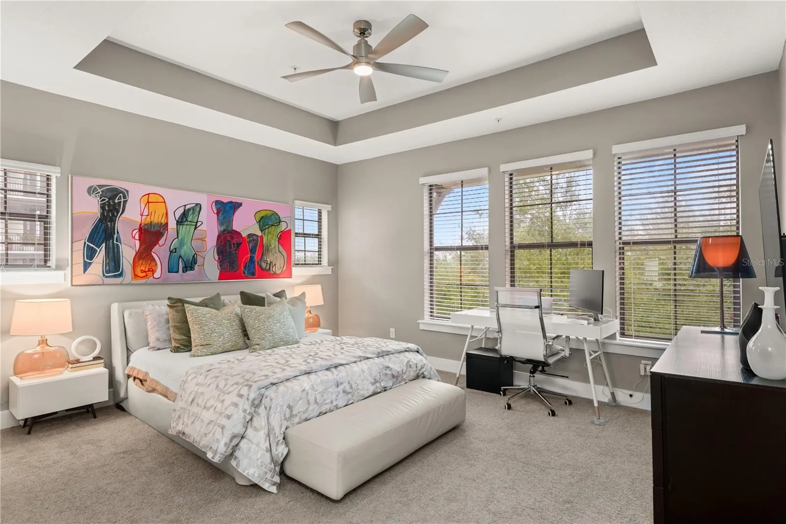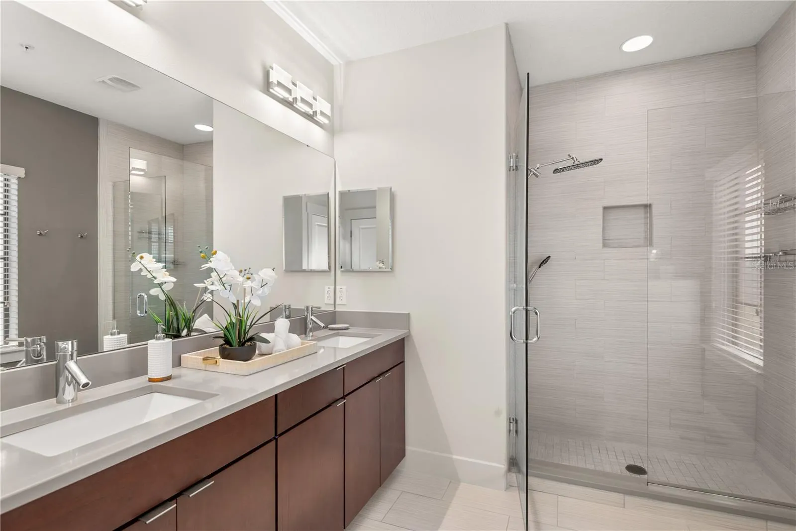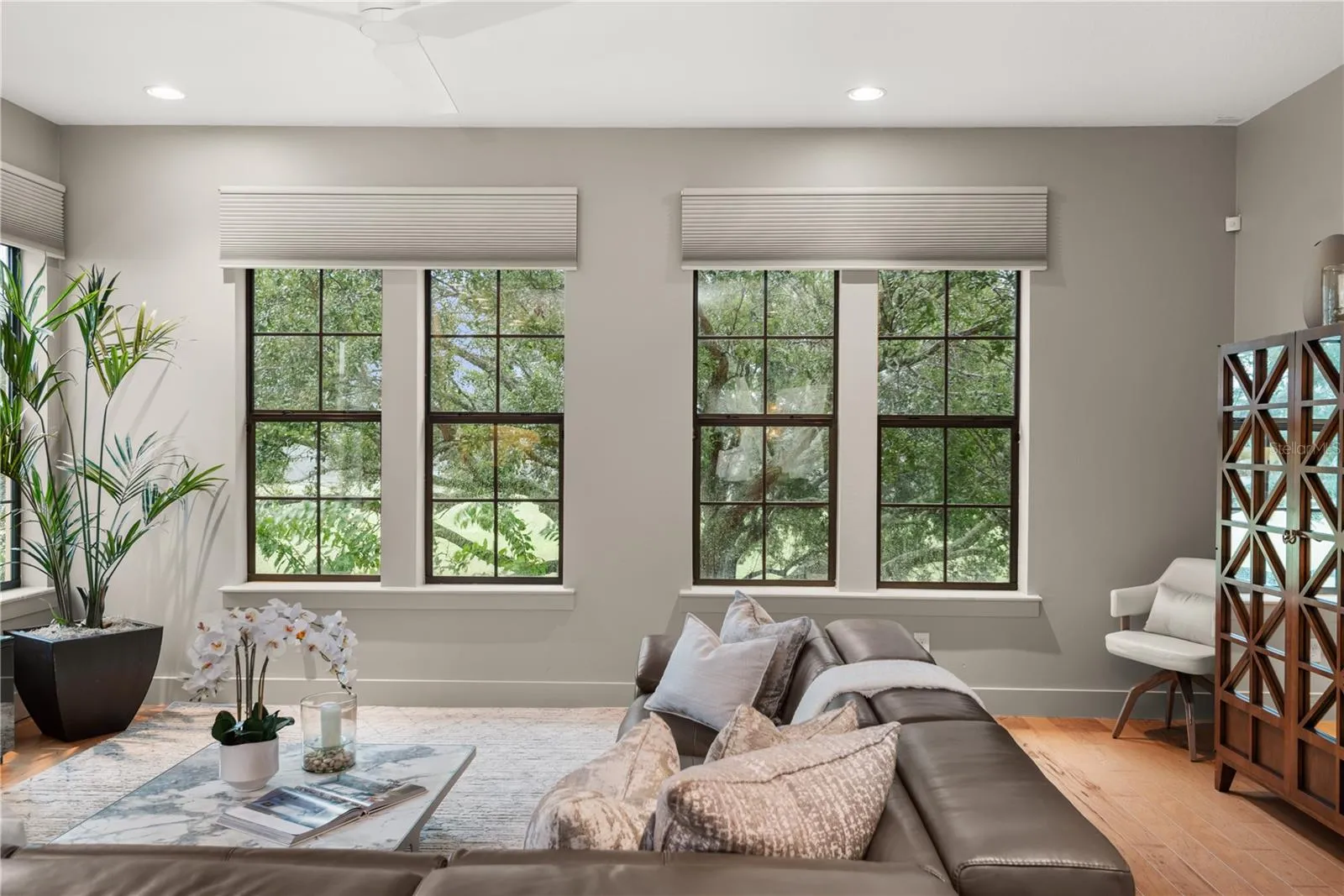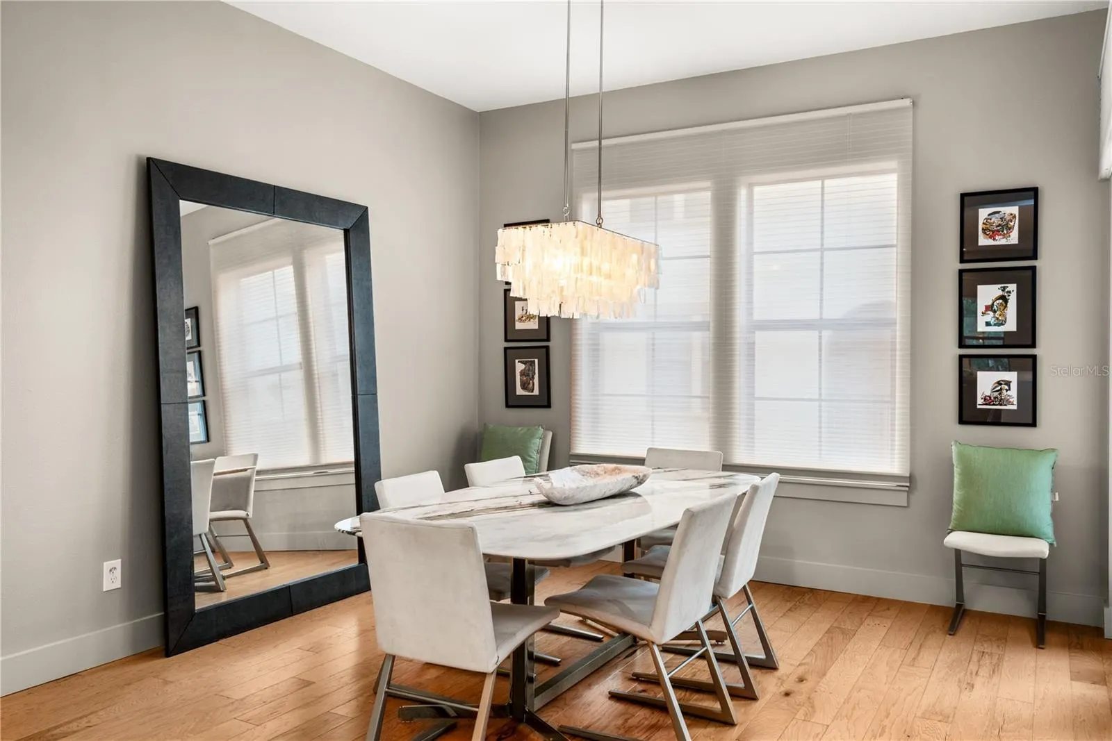 Experience the pinnacle of luxury in this Baldwin Park townhome, offering stunning park views and a short stroll to the scenic Lake Baldwin . Expect to be impressed as you enter this stunning, end unit, 4 bedroom, 3 ½ bath residence boasting high end finishes throughout and 2179 SF of bright and inviting living space! Upon entry, you’re welcomed by a versatile first-floor space featuring soft-close glass doors and a private full bath. This flexible space is ideal as a home office, guest suite, or cozy den. On the main floor, the open living spaces are designed for everyday comfort and stylish entertaining. Gorgeous, engineered wood floors flow throughout, bringing warmth and timeless style to the home. The gourmet kitchen takes center stage with a striking Quartz waterfall island with breakfast bar, glass tile backsplash, sleek cabinetry, and stainless appliances. It flows effortlessly into the stunning great room filled with natural light from an abundance of windows offering a tree-top view of Blue Jacket Park, all adorned with motorized pleated shades for elegance and convenience. The dining room features a gorgeous light fixture, creating a stylish setting for meals and gatherings. Retreat upstairs to the primary suite with tray ceiling, and an impressive, updated bath featuring stone counters, dual sinks, walk-in closet, and spacious glass-enclosed shower. Bedrooms two and three are joined by a thoughtfully designed shared bath. Enjoy the outdoors with a charming first floor covered porch and second floor covered patio, perfect for taking in the views. Updates include: freshly painted interior with premium warm-tone coating, upgraded garage flooring with durable epoxy coating, garage complete with electric charging station, modernized all lighting and ceiling fans throughout the home, Security system, new modern Samsung oven, and renovated and upgraded laundry room. Seller is willing to sell the home furnished. Perfect location within a short walk to the city center on New Broad street with restaurants, shopping, banks, pharmacies, dog parks, and docks to enjoy Lake Baldwin. Baldwin Park offers 3 community pools and 2 workout facilities and has easy access to Downtown Orlando, Winter Park, and the Orlando International Airport.