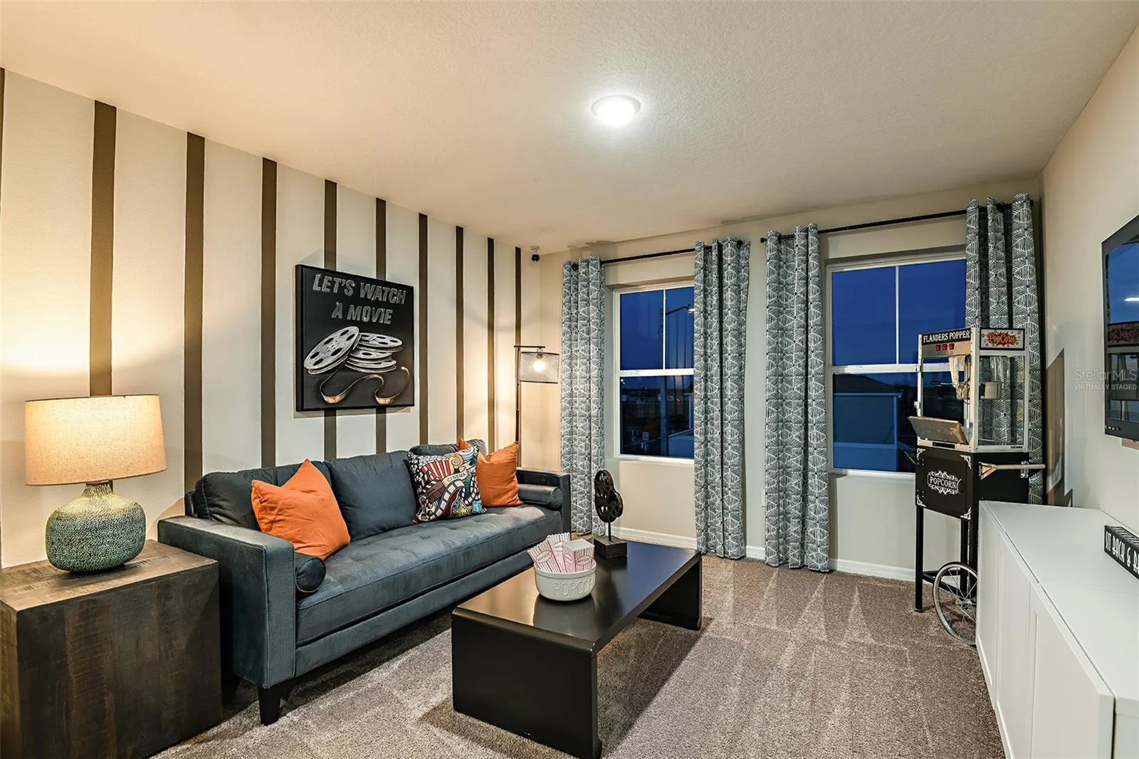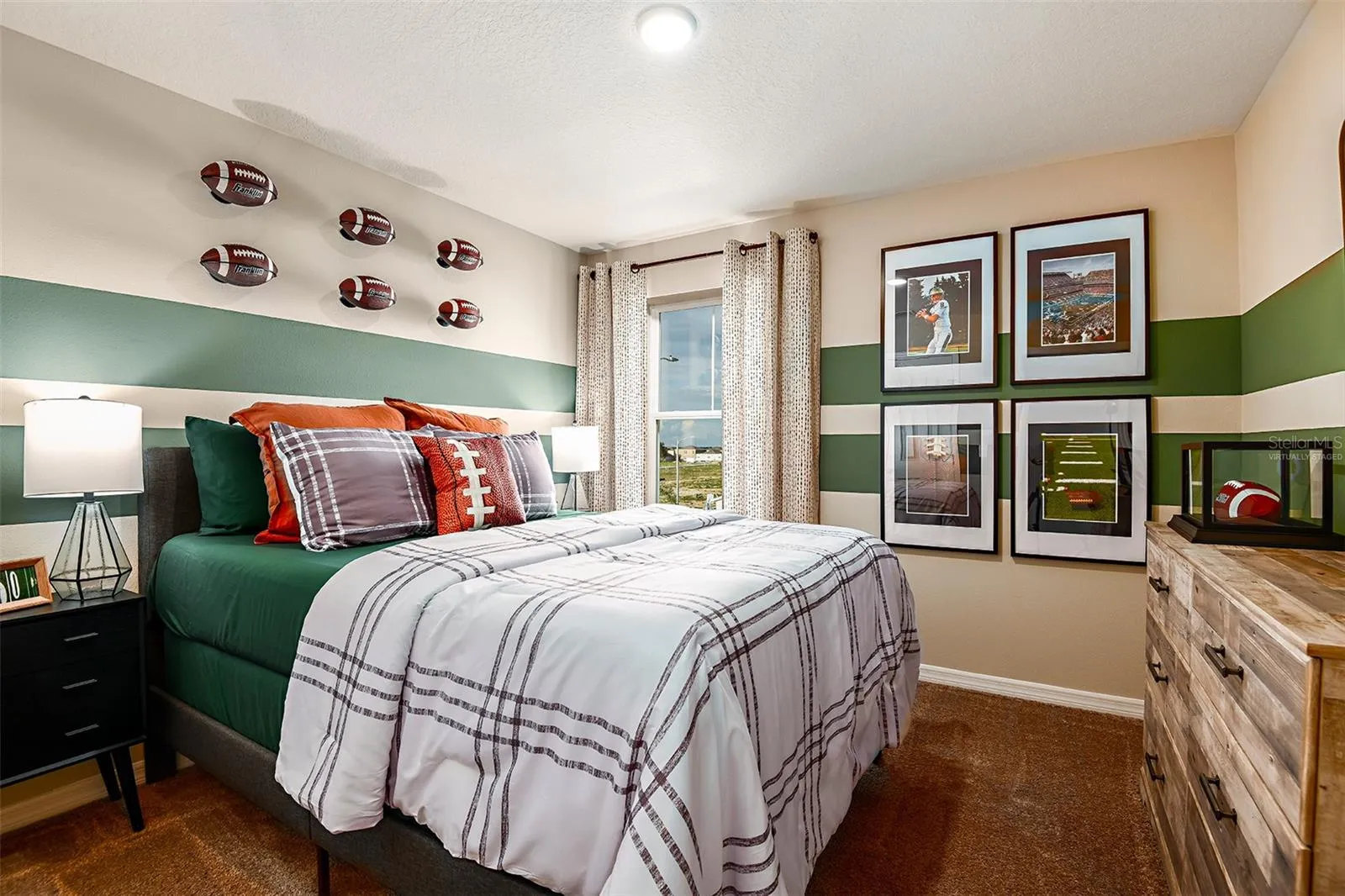 One or more photo(s) has been virtually staged. Under Construction. Invite yourself into the Lucia, a two-story home with 5 bedrooms, 3 bathrooms and a private 2-car garage. Just off the foyer, you’ll find a welcoming guest suite complete with a private bathroom, offering the perfect blend of comfort and privacy. The open concept living area, highlighted by luxury vinyl plank flooring, flows seamlessly into the kitchen, which features sleek quartz countertops, stainless-steel appliances and a spacious pantry. Sliding glass doors lead to a charming patio, ideal for outdoor relaxation in the Florida climate. Upstairs, the flexible recreation space and stylish master suite—with its walk-in shower, dual vanity and oversized walk-in closet—provide a serene oasis. The 3 additional bedrooms, full bathroom and laundry room equipped with brand new washer and dryer make everyday life convenient. With a smart thermostat with voice control, beautiful landscaping, and an eye-catching elevation, this home ensures both style and practicality.