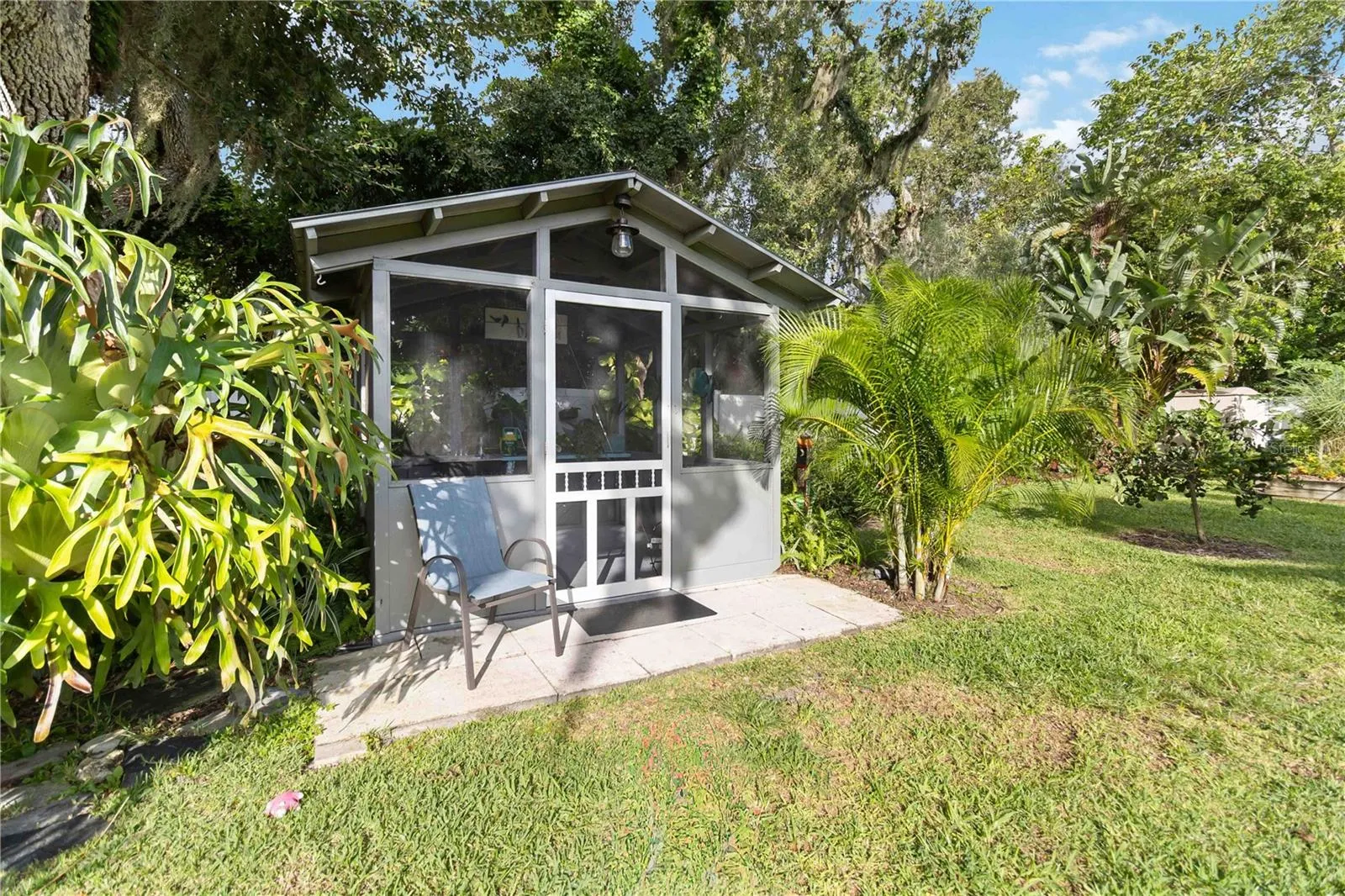 The primary bedroom offers a brand-new custom closet (2024), dual vanity bath, and a balcony that overlooks the property. Two additional bedrooms share a renovated bath, while the half bath is perfectly positioned for guests enjoying the pool and spa. Outside you’ll find a gas heated saltwater pool and spa with a new saltwater processor (2024), enclosed outdoor shower (2024), new lanai screen (2023), a fully fenced yard with upgraded lighting (2023), fruit trees including avocado and a screened garden shed with electric & water. The owners have invested extensively in professional tree care and improvements creating a lush and inviting outdoor space.