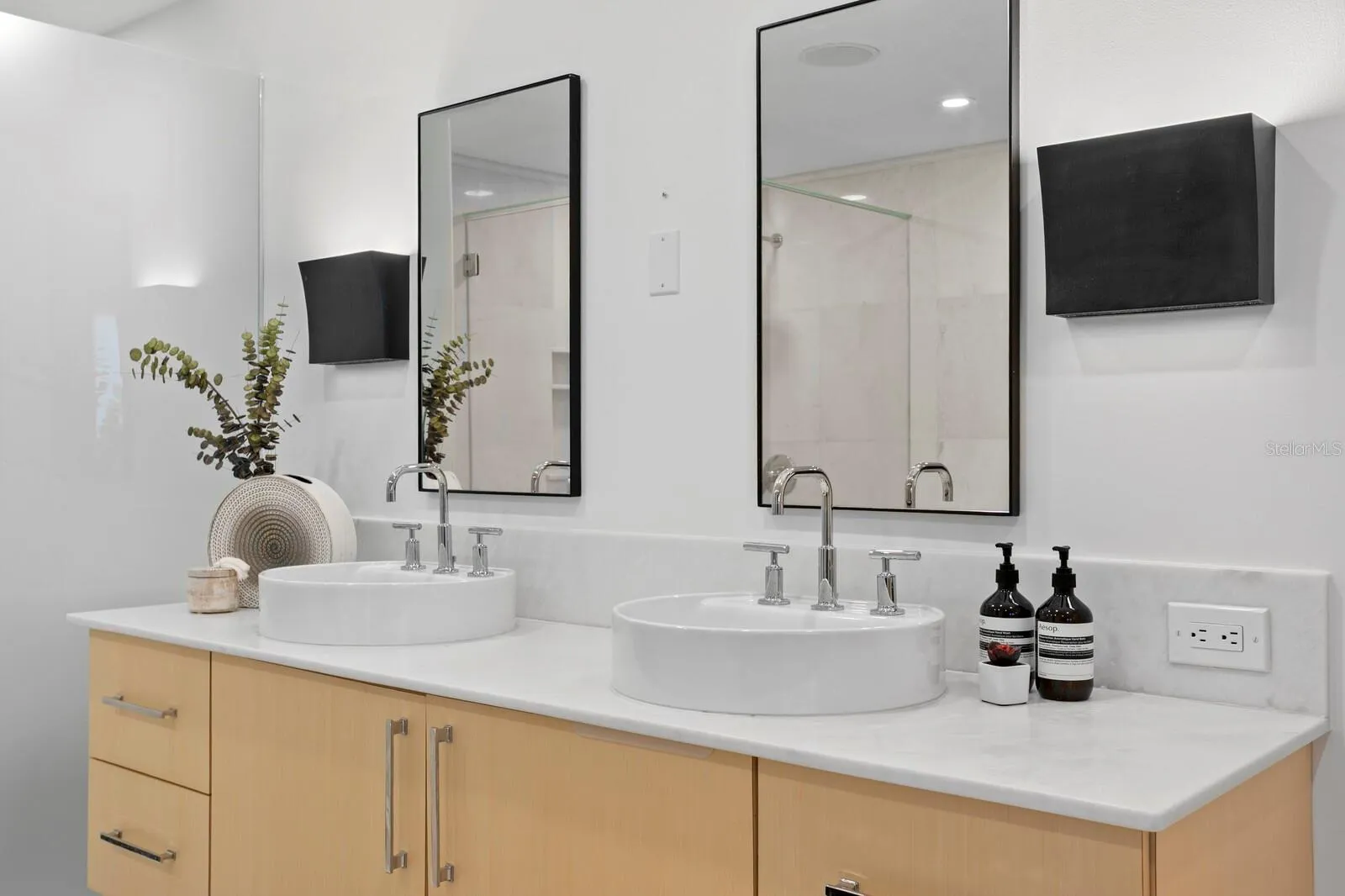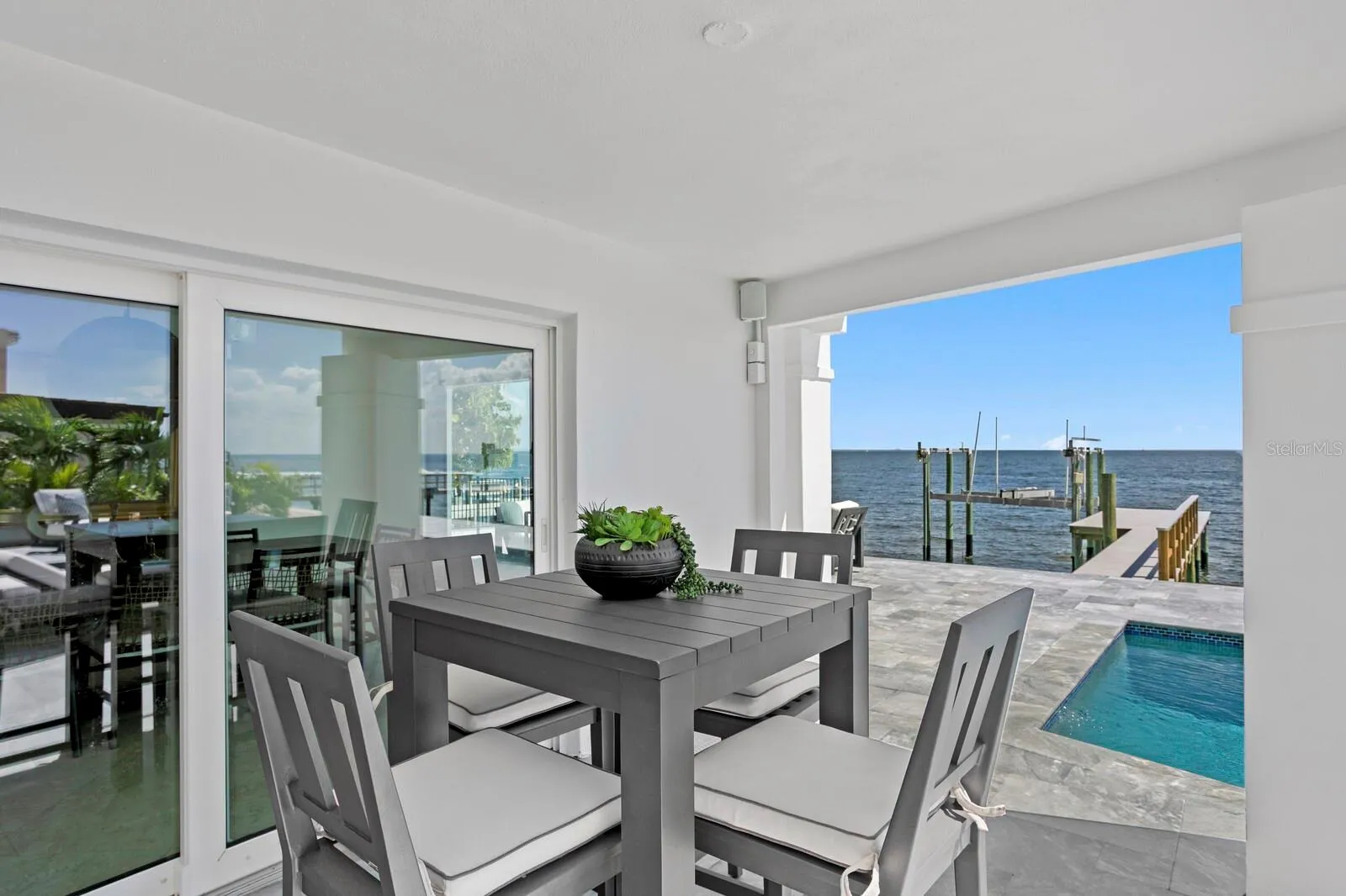 Exquisite Move-In-Ready Waterfront Masterpiece! Elevated and no flooding in recent storms, this house redefines St. Petersburg waterfront luxury. This contemporary gem blends bold architectural design with refined, inviting interiors, showcasing 90ft of panoramic open-water views. Features 4 upstairs bedrooms, including a luxurious primary suite with unrivaled water vistas, plus 2 first-floor bedrooms (one perfect as a guest or secondary primary suite). The outdoor haven boasts a brand-new 2025 dock, refreshed pool and decking, new 2025 outdoor grill, updated seawall, new 2025 slate roof, gutters, and soffits, and meticulously curated landscaping. Inside, expansive windows flood open-concept spaces with natural light, highlighting sleek contemporary finishes and effortless indoor-outdoor flow. Equipped with dual 2020 Trane HVAC systems and two 2017 tankless water heaters for ultimate efficiency. Just minutes from vibrant downtown St. Petersburg, this home epitomizes sophisticated St. Pete waterfront living. Ready for you to move in and enjoy the Florida lifestyle!