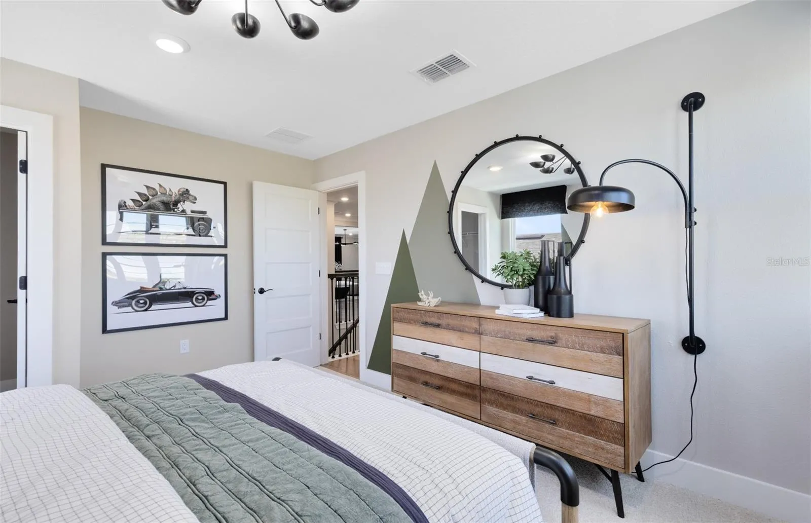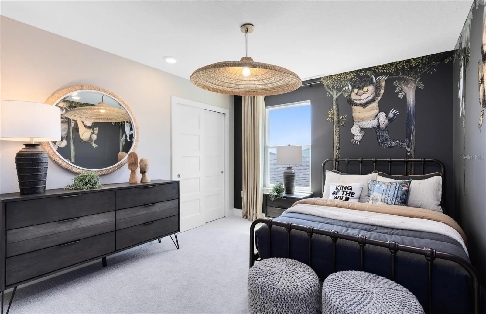 Step into the Scarlett by Pulte Homes, this stunning 5-bedroom, 4.5-bathroom, 2 car garage residence situated on a homesite with no rear neighbors offers a seamless blend of sophistication and comfort, with every detail thoughtfully designed to elevate your living experience. The open-concept layout creates a spacious and airy environment, enhanced by an abundance of natural light and luxurious finishes. On the first floor, discover an en suite bedroom with attached bathroom, featuring a glass enclosed shower, linen closet, exquisite quartz countertops, and a walk-in closet, providing a private and inviting retreat for guests. As you continue into the home, an open flex room, located next to the gathering room, allows natural light to flood the area, making it the perfect spot for relaxation or entertaining. If you need a private office, there is also a second enclosed flex room for all of your needs. The heart of this home is the gourmet kitchen, stylish two-tone cabinetry beautifully complements the striking quartz countertops and decorative tile backsplash. Soft-close drawers, easy-access cabinets, single-bowl granite sink, and upgraded faucet, and Whirlpool built-in stainless-steel appliances, including a refrigerator combine to create a chef-inspired space designed for both form and function. The kitchen seamlessly flows into the café and gathering room, with a pocket sliding glass door that opens to the covered lanai, enhancing the indoor-outdoor living experience. For added convenience and privacy, you’ll find a powder room for guests located on the first floor. Upstairs, the tranquil owner’s suite serves as a private sanctuary, featuring a spacious walk-in closet and a spa-like en suite bathroom with dual vanity sinks. The loft area offers an ideal space for relaxation, whether for a quiet evening or a movie night. The second floor also includes three additional bedrooms, two bathrooms (one of which is an en suite), and a conveniently located laundry room, making daily living effortlessly easy. The laundry room itself offers both style and convenience with built-in cabinets for additional storage, Whirlpool washer and dryer, and a utility sink trimmed in quartz, adding a touch of elegance to everyday tasks. This home is crafted with high-end touches, such as Shaw brand wood-look luxury vinyl plank flooring throughout the first floor living areas and staircase, tile flooring in the bathrooms and laundry room, and plush, stain-resistant Shaw carpet in the loft and bedrooms. From the oil rubbed bronze hardware finishes and 8′ interior doors, to the Wrought Iron Balusters with Oak Handrail at the staircase no detail is overlooked. 2” faux wood blinds, rain gutters, and Sherwin Williams City Loft interior paint add both style and ease to daily living. This home also comes equipped with a variety of modern conveniences, including a smart thermostat, video doorbell, LED downlights, and electric car plug in. With its exceptional design and sophisticated finishes, this Scarlett home is the epitome of both comfort and luxury—perfectly tailored to fit your lifestyle.