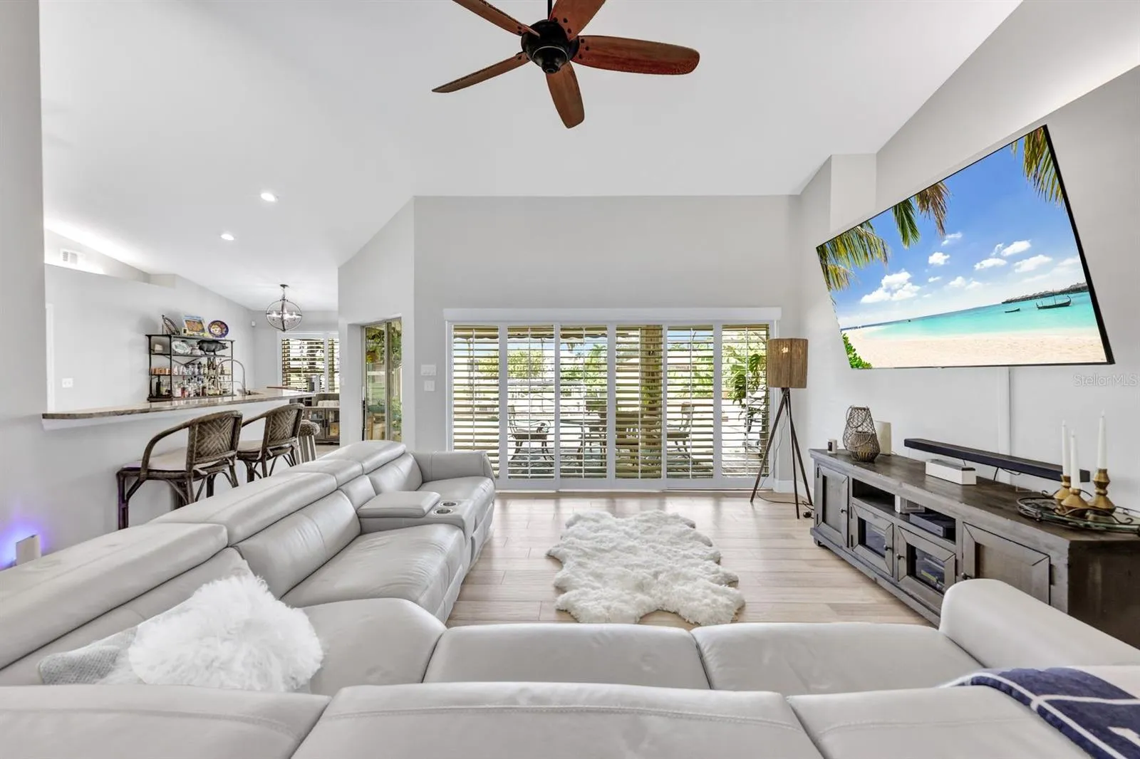 WESTERN EXPOSURE GULF-ACCESS POOL HOME w/DOCK AND LIFT! Enjoy the ultimate Southwest Florida lifestyle, from the moment you arrive! You are greeted by the lush tropical landscaping, lava rock accents, and screened double French door entry create an inviting first impression. Inside, soaring vaulted ceilings and sunlit open spaces set the tone for relaxed coastal living. The great room flows effortlessly into the dining area and kitchen, where granite countertops, tile backsplash, under-cabinet lighting, and a large farmhouse sink elevate every meal. KitchenAid stainless steel appliances, a breakfast bar, pantry, and cozy dining nook overlooking the water make it as practical as it is stunning. The owner’s suite offers private sliders to the lanai and a luxurious ensuite bath with dual sinks, a makeup vanity, a large walk-in shower, a garden tub, and a spacious walk-in closet. The split floor plan provides privacy for guests, while a nautical-themed pool bath with shiplap detail and chair rail adds a fun coastal touch. The home features updated light fixtures and fans, fresh tile flooring completed in 2021, a new roof (2022), new screens, and an A/C that’s serviced every three months with a UV purification system. The water heater and AC system are also newer ensuring peace of mind for years to come. Step through sliding glass doors to the expansive lanai, where a sparkling electric heated salt-water pool with waterfall feature and western exposure create the perfect backdrop for gorgeous Florida sunsets. The screened enclosure offers plenty of room for outdoor dining and lounging, surrounded by lush palms and a fenced yard for added privacy. A private dock with lift provides premium canal access, perfect boating adventures to open water in approximately 35 minutes. Back yard has dog run keeping those furry family members safe and sound. Designed for easy living and memorable entertaining, this home embodies the essence of Cape Coral’s waterfront charm—close to shopping, dining, and parks, yet tucked away in a quiet neighborhood where every evening ends with a golden sunset over the water. World class fishing, white sandy beaches and year round temperate weather awaits you!
