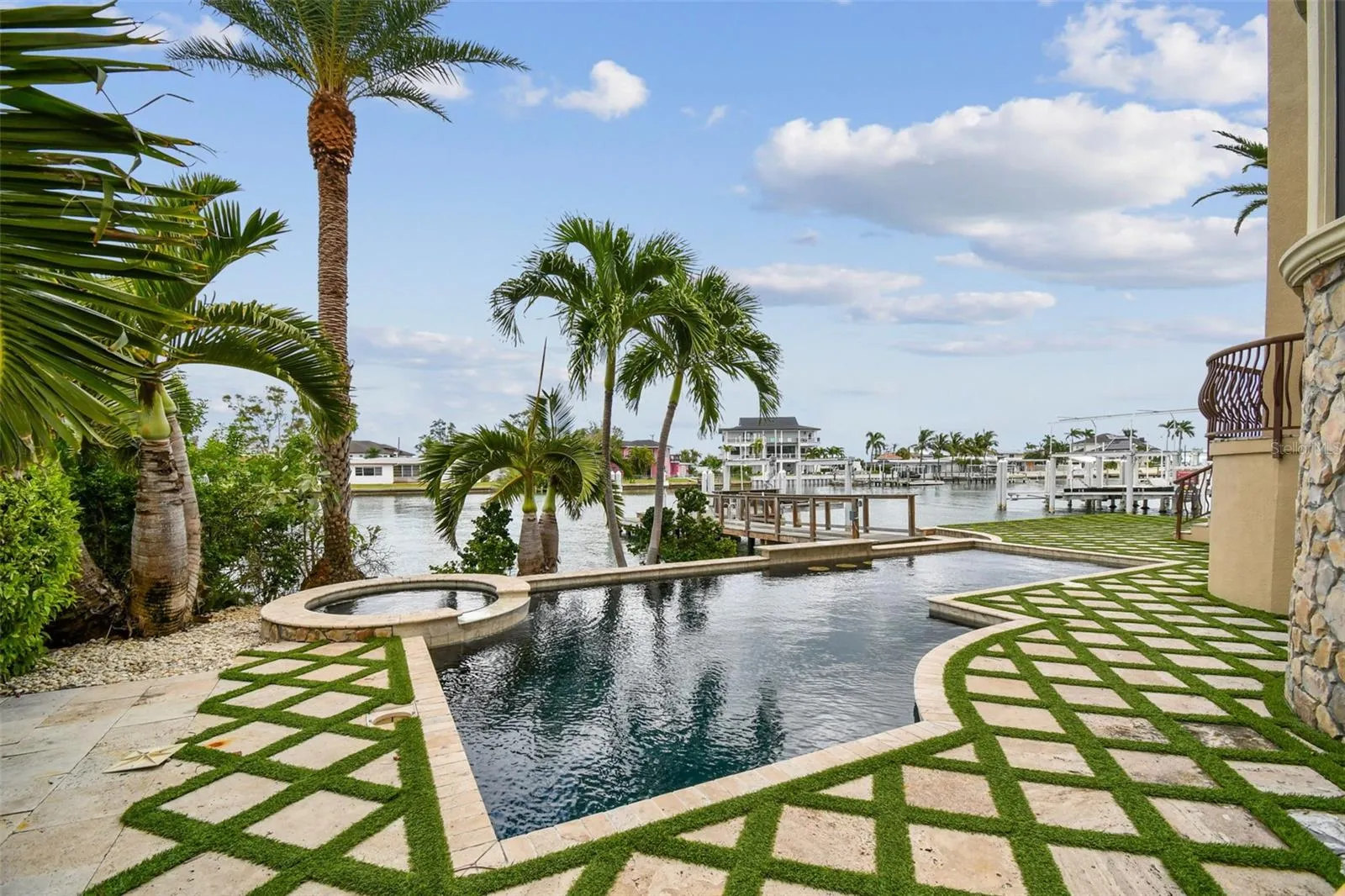 UNIQUE ST. PETE BEACH ELEGANT CUSTOM QUALITY FRENCH STYLE ESTATE, RARE FOR SPB. offering 5 bedrooms, 5.5 baths, and unparalleled craftsmanship throughout. HIGH AND DRY !! Built by a premier custom builder, this residence showcases a dramatic stone facade, expansive open floor plan, and gated private entry creating an estate of distinction. 2025 NEWLY INSTALLED AC UNITS (5 YEAR WARRANTY ATTACHED), NEWLY INSTALLED PRIVATE GATE, NEWLY INSTALLED GARAGE DOOR LOGIC BOARDS. Step inside to SOARING CEILINGS, exposed hardwood beams, 12″ crown molding, 8″ baseboards, and finely crafted details that elevate every space. A dramatic entry opens into a BREATHTAKING FOYER with recessed hardwood ceiling and chandelier, leading to both a formal dining room, office space and casual expansive family living space. The GOURMET CHEF’S KITCHEN is a rare true show piece, featuring a LARGE GRANITE CENTER ISLAND with beveled trim, CUSTOME WOOD CABINETRY, soft -close drawers, viking and genAir appliances, culinary center island prep sink, and a LARGE WALK-IN PANTRY. Enjoy the adjacent intimate dining nook with absolutely gorgeous water views. If a formal dining experience is required, retreat to the castle-like formal dining room which will accommodate a large 8-10 comfortable seating arrangement. This Dining room is adjacent to the gourmet kitchen and provides for easy serving but adequate distance. Central living area boasts a double facing indoor-out gas fireplace, dramatic 8′ plantation shutters adorn the large hurricane windows that brightly light the living space. Notice the double hardwood french doors that provide access to the incredible balcony and exquisite water views. Our custom textured walls throughout, and arched passageways add architectural elegance throughout this house. Follow these to our double hardwood staircases with iron and wood railings to the second floor. This custom home comes with the space and preparation for the addition of an elevator. The first floor primary suite retreat is complete with dual walk-in closets, spa inspired bathroom, steam room, and a private covered balcony with hardwood ceiling and sweeping water views. Additional guest/maid/in-law quarters, offer private entry, kitchen, and separate controlled AC on its second floor residency. Outdoor living is equally extraordinary, with lush landscaping, a large saltwater pool and spa. Drive through your private controlled gate to your expansive motor court, additional side resident parking. Enjoy your vine covered stone facade and NEW LUSH LANDSCAPING unique to St. Pete beach. Your private gated back yard is accessed either through hurricane rated French doors or a side vinyl gate. You are immediately engulfed in luxurious new mature landscaping, travertine and grass paver deck surrounding your Pebletec heated saltwater pool and spa. Expansive Dock w/ 20K boat lift, deep water. TWO second floor balconies. . Easy access to Boca Ciega bay and the gulf of America. World class beaches are moments away, This estate offers easy access to many amenities from, yacht clubs, fine dining, shopping, minutes from Tampa International and Clearwater airports, downtown Saint Petersburg, St. Pete beach, museums, theaters, hotels, multiple hospitals, private airport, cigar bars, comedy clubs. The true elegance and custom workmanship of this highly maintained custom home has to be seen to be appreciated. THIS 5213 SQFT CUSTOM ESTATE REMAINED ABSOLUTELY HIGH & DRY, !!