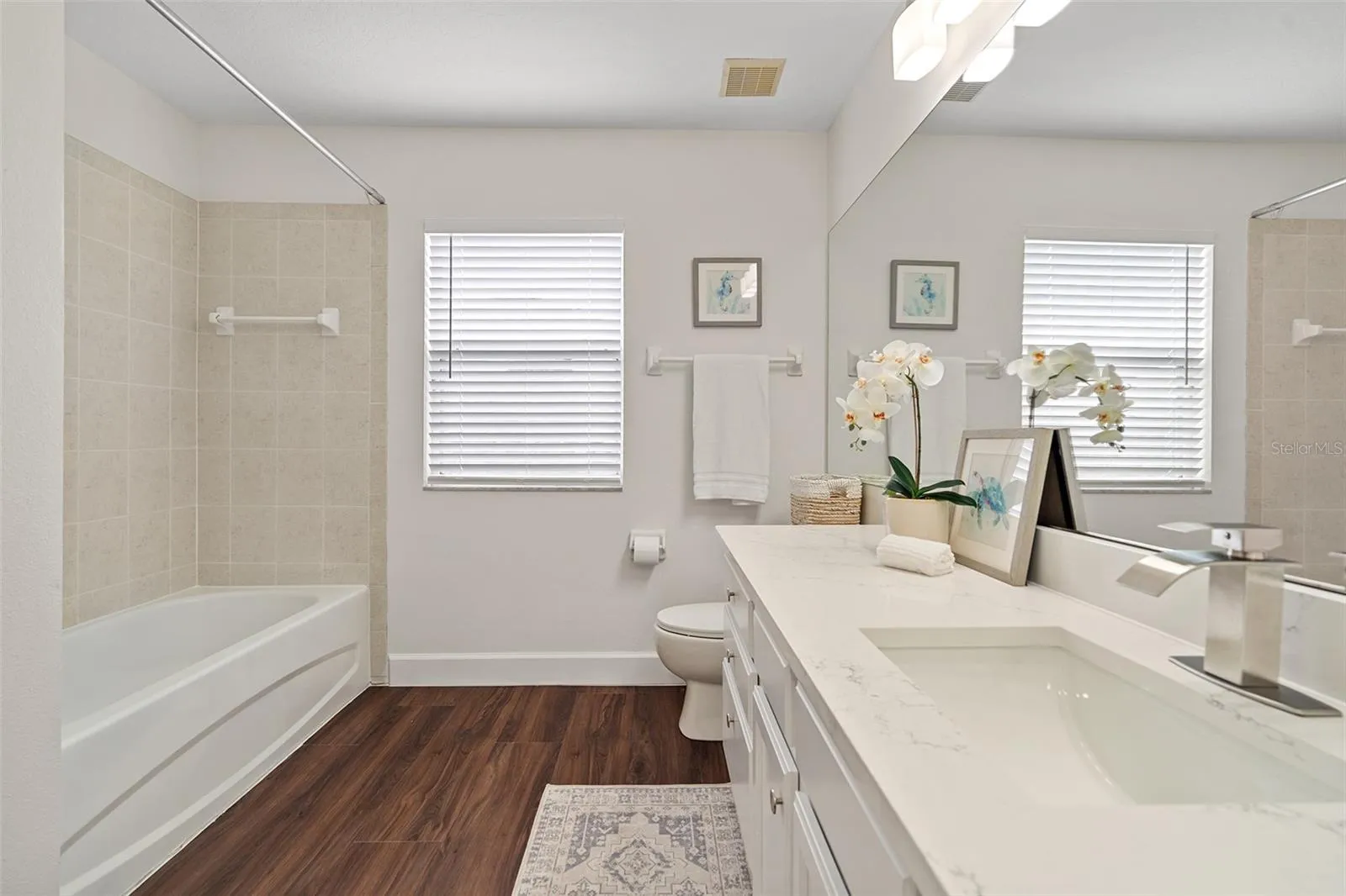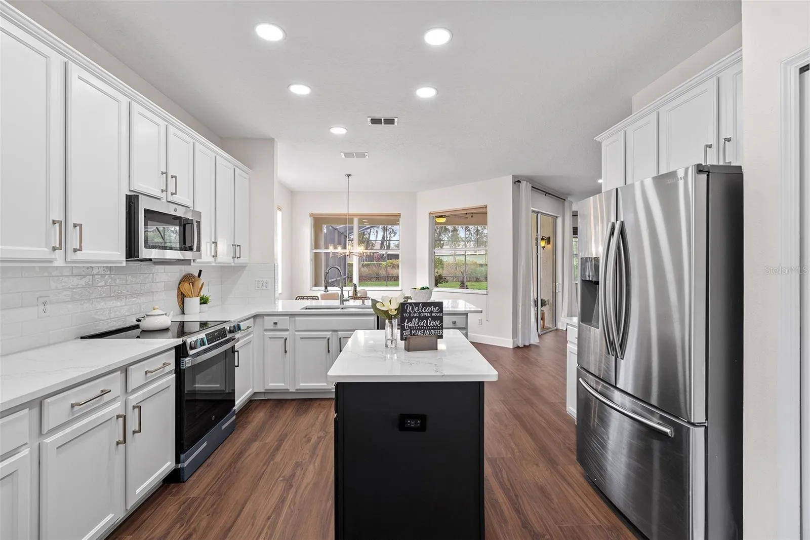 Just about everything in this SALT WATER POOL HOME has been beautifully updated! Located in the gated community of North Shore at Lake Hart, you’ll enjoy peace of mind with a BRAND NEW ROOF (2025), POOL RESURFACED (2025), NEW EXTERIOR & INTERIOR PAINT, NEW QUARTZ COUNTERTOPS, and NEW WATERPROOF LVP FLOORING, NEWER HVAC A/C (2023), WATER HEATER (2025), and much more! POOL & SPA are BOTH HEATED so you can swim and soak year-round! SCREENED-IN and COVERED LANAI makes it easy to relax or entertain, rain or shine. You’ll love the 3-CAR GARAGE for all your vehicles, storage, or weekend toys. Inside, the bright and open layout flows perfectly. The UPDATED KITCHEN features QUARTZ COUNTERTOPS, DEEP SINK, MODERN BACKSPLASH, REFINISHED CABINETS, and a CONVENIENT ISLAND. You’ll love the BAY WINDOWS in the BREAKFAST NOOK — they fill the space with natural light and overlook the POOL & LAKE VIEW beyond on the northeast side of the property. The home includes MULTIPLE LIVING AREAS — including a huge FAMILY ROOM, a MAIN-FLOOR BEDROOM next to a FULL BATHROOM downstairs, and an INDOOR LAUNDRY ROOM with additional storage. Upstairs, the PRIMARY SUITE is a dream with a TRAY CEILING, WALK-IN CLOSET, GARDEN TUB, WALK-IN SHOWER, and QUARTZ COUNTERS & new mirrors. Rest of the 3 bedrooms, all freshly painted with ceiling fans, complete the space upstairs along with a BUILT IN OFFICE DESK landing zone upstairs. Located in the highly sought after North Shore at Lake Hart a TREE-LINED COMMUNITY near LAKE NONA, you’ll enjoy TOP-RATED SCHOOLS, wide SIDEWALKS, and amenities including Community Pool, Indoor Fitness Center, Basketball and Tennis Courts, Playground, Baseball Field, and Golf Course Access. Bonus! Community dock area at the end of Mallard Landings Way. WATCH THE VIDEO/VIRTUAL Tour to SEE MORE!