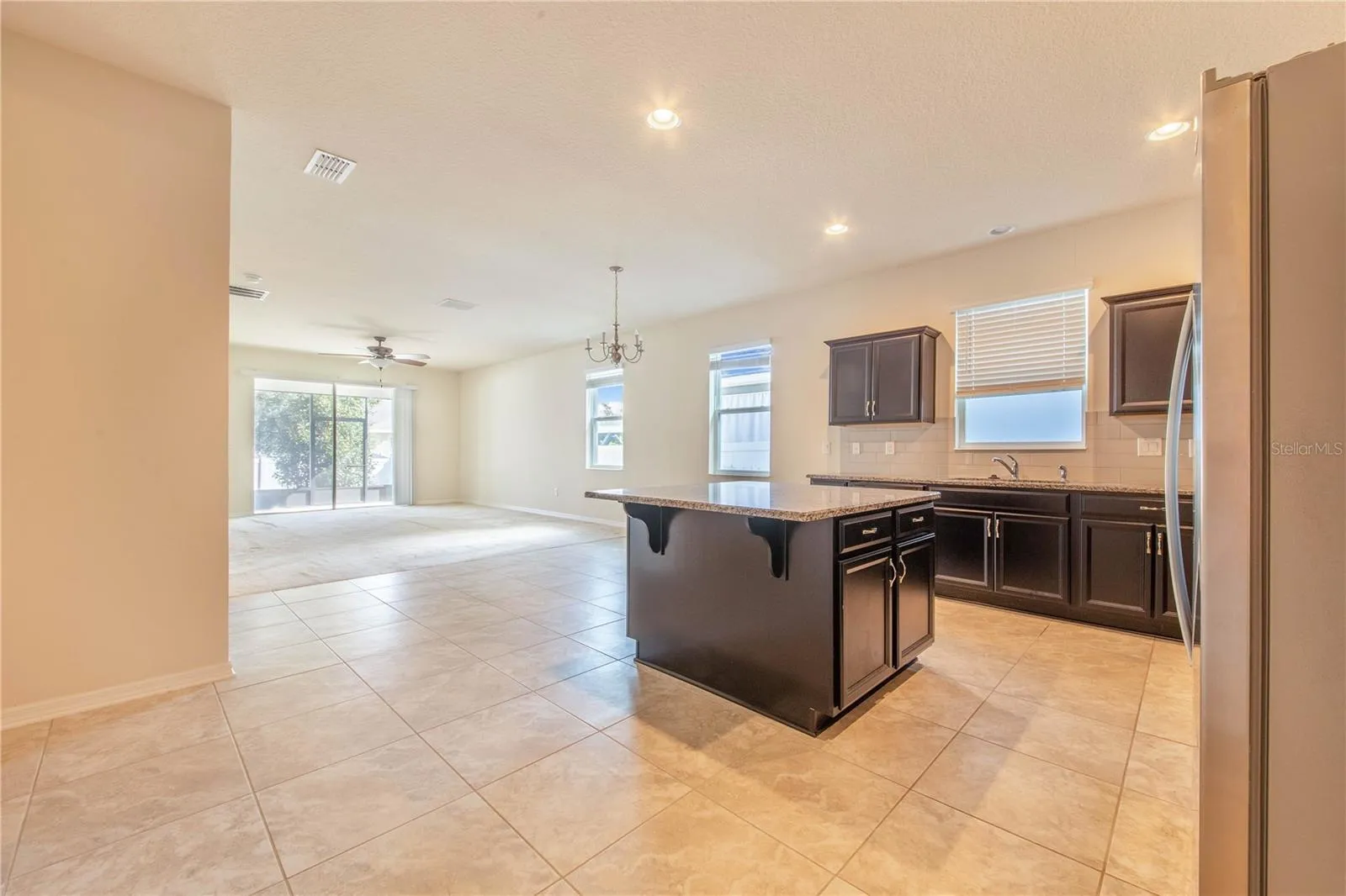 As you enter this beautiful four-bedroom, two-bath home, you’ll be greeted by a spacious foyer with elegant tile flooring. The layout features a welcoming family room that can also serve as a formal dining area—perfect for entertaining or relaxing. The open-concept kitchen offers an island with ample cabinet space, granite countertops, and overlooks the comfortable living room. From the living area, sliding glass doors lead you to a large, screened-in back porch ideal for gatherings or quiet evenings outdoors.
