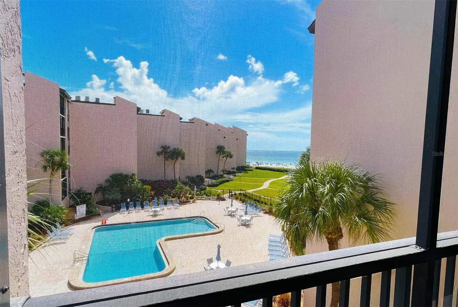 The spacious primary suite delivers a true resort feel with a large walk-in closet, updated bath, and serene Gulf views. The guest bedroom is cleverly designed to sleep comfortably, making it ideal for family or guests. From the living room and private balcony, take in sweeping Gulf of Mexico vistas and unforgettable Siesta Key sunsets.