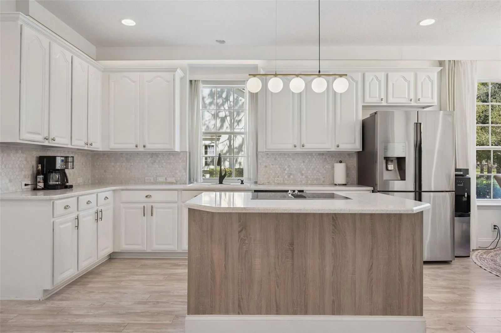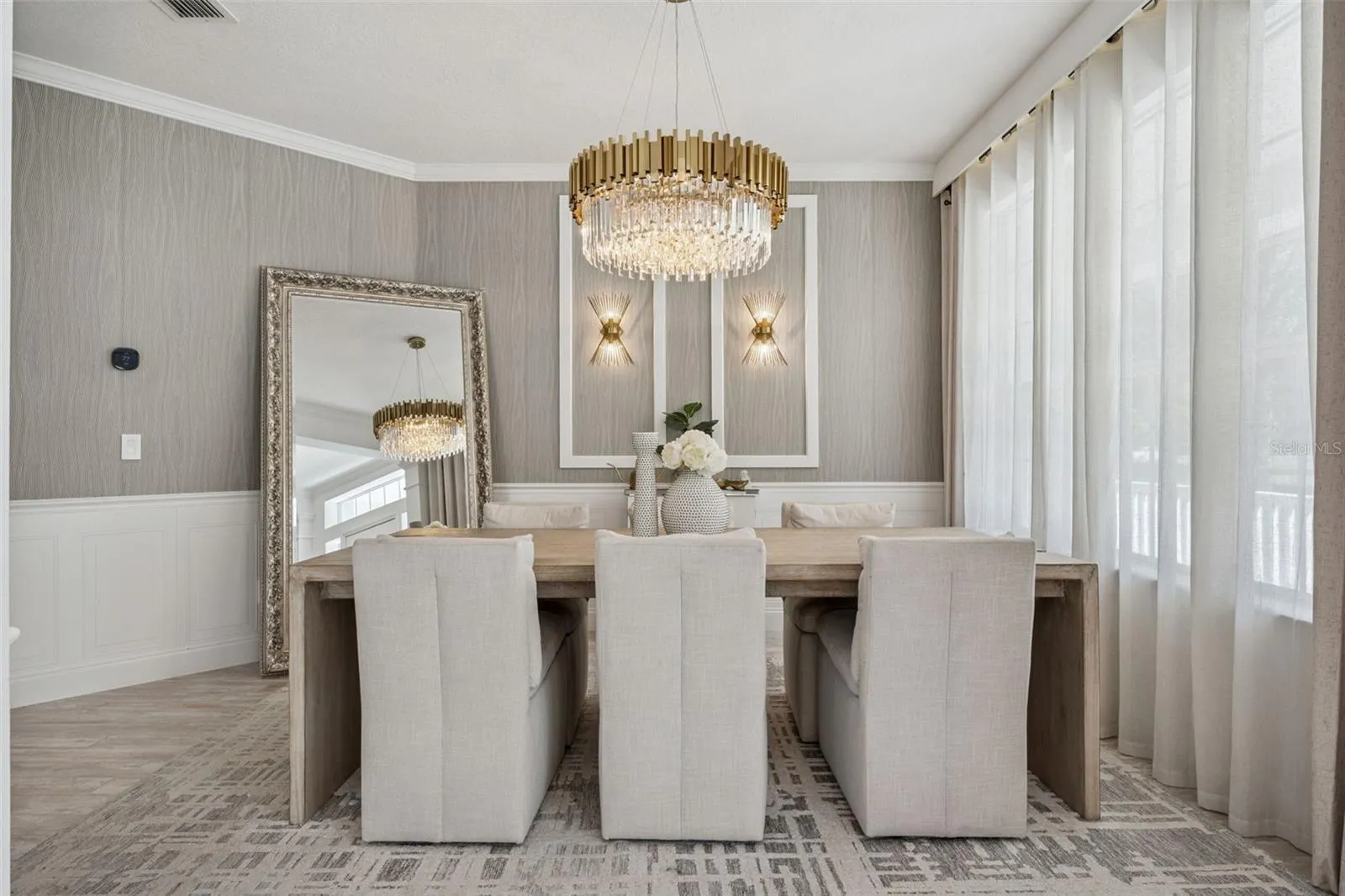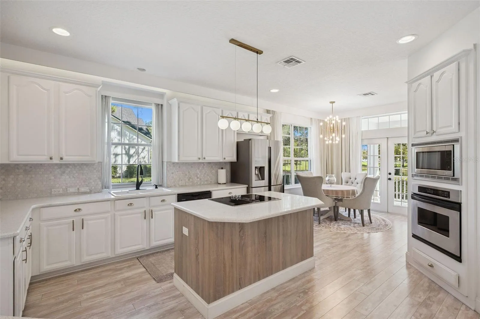 Under contract-accepting backup offers. STUNNING REMODELED EXECUTIVE POOL HOME with 5 Bedrooms 3.5 Bathrooms + OFFICE + LOFT with 3,500+ square feet of living space in the David Weekley Build in Downtown Avalon Park, just steps away from Town Square & The Marketplace. Entering the foyer you are met with a Formal Dining & Formal Living Room opposite defined with columns and wallpaper accent walls. Walking into the great room you are met with soaring ceilings allowing plenty of natural light to fill the room all highlighting with a custom accent wall that includes a wood burning fireplace, vertical slats, floating entertainment shelving and a backlit TV mount. The kitchen has been completely transformed with quartz countertops, decorative tile backsplash, white cabinetry, stainless steel appliances with extended butler pantry area with a desk seat. There is room for a dinner table in the kitchen area with French Doors that open to the covered front lanai. The primary bedroom downstairs has been customized with framing and mirrored wall, with views of the conservation. The primary bathroom has a dual vanity, walk in shower, garden tub and an oversized walk in closet. Upstairs leads to a very large open loft that separates each side of the home: one side has two bedrooms separated by a bathroom that has been upgraded with a frameless glass shower with custom tiled walls and soap niche, and custom vanity; the other side has two bedrooms with a connected Jack & Jill Bathroom. There is a high ceiling covered back porch that leads to the paver pool deck and fenced in yard. The detached garage is oversized with a large parking driveway area. This home is absolutely MOVE IN READY. ROOF 2017, AC 2024, Water Heater 2024. Other upgrades include new garage door, epoxy garage flooring, lighting fixtures throughout, flooring throughout, hardware including door knobs and hinges, whole home drapery accent lighting, interior & exterior paint, wall paper and trim throughout. Avalon Park is a community with very desirable school zones. Community amenities include basketball courts, tennis courts, racquetball courts, playgrounds, sand volleyball court, splash pad, baseball and soccer fields, community center, walking and biking trails. HOA FEES INCLUDE CABLE & INTERNET. Ask for the Upgrade Sheet & make an appointment to see this home today!