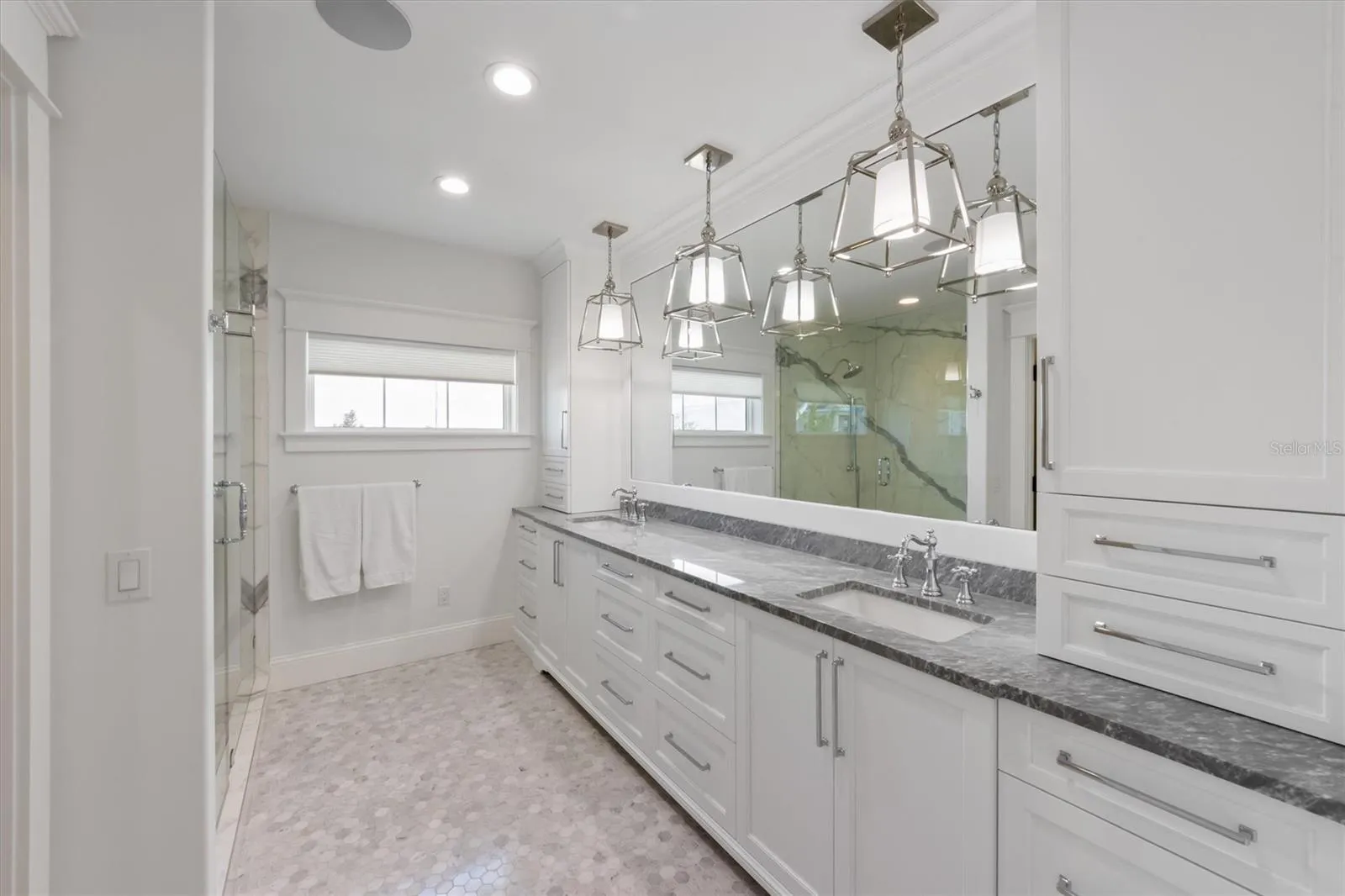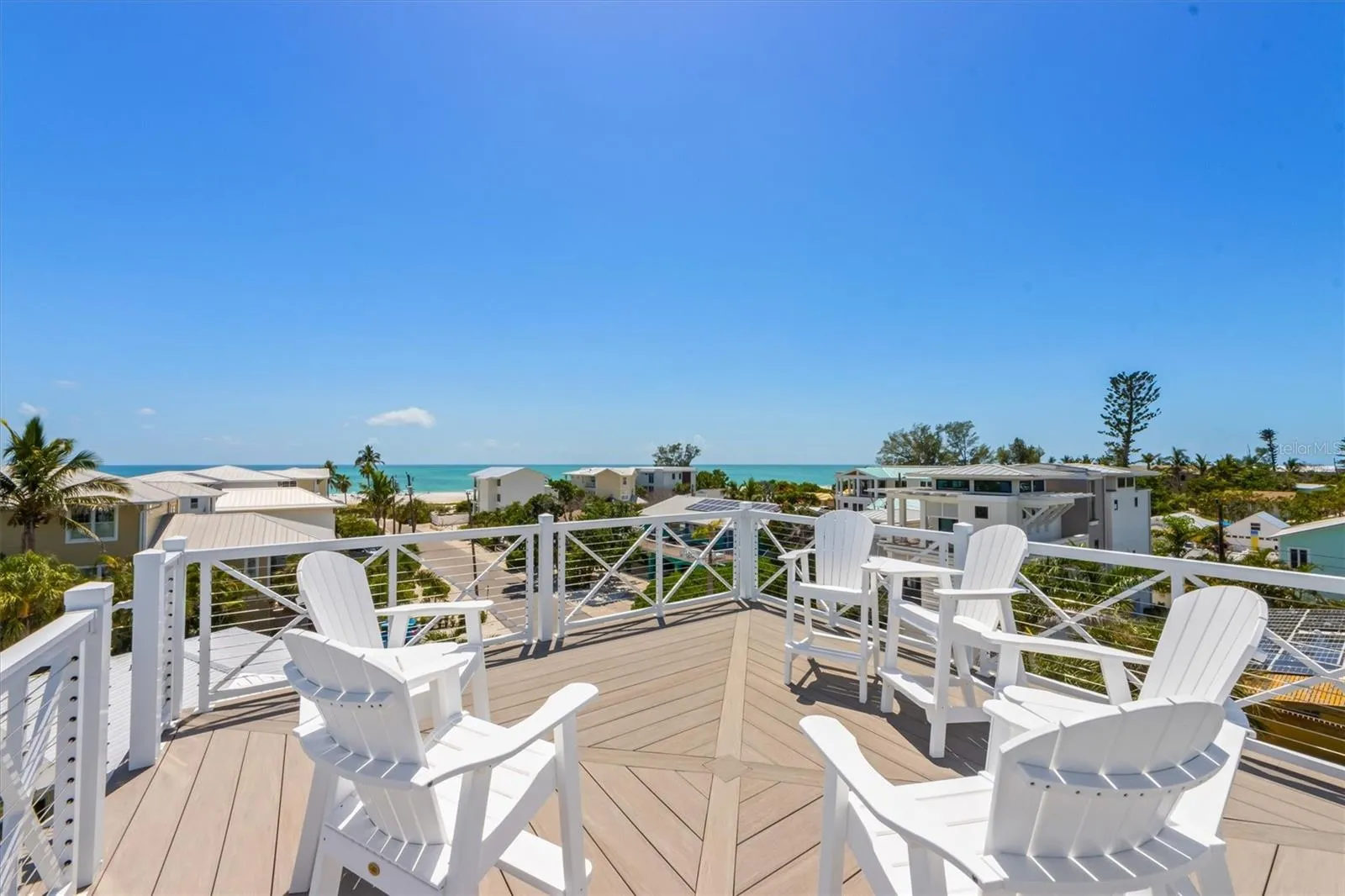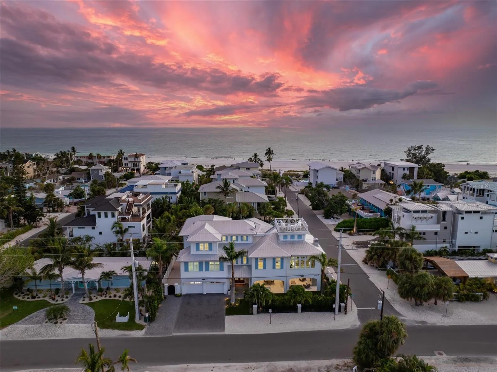 Discover unparalleled elegance in this stunning 3,400 sq. ft. very private residence 5 houses away from the Gulf on the north end of Anna Maria Island! You get to enjoy beach views from many rooms in the house without the beachfront price! Very well taken care of, never rented, and hurricane-rated elevated home that stands at one of the island’s highest elevation points. Built with a robust 25’ deep drilled piling foundation system, this architectural masterpiece combines cutting-edge smart home technology with timeless luxury. Five generously sized bedrooms, each with en-suite full bathrooms, plus two half baths (one conveniently located off the pool area). The master suite boasts a marble-clad bathroom with a luxurious shower, floors, and countertops, while other bathrooms feature sleek quartz countertops. The chef’s kitchen is equipped with Sub-Zero and Wolf appliances, including a 36” refrigerator, 30” freezer, wine refrigerator, under-counter refrigerator, and pantry refrigerator/freezer drawers. The 48” dual-fuel gas/electric stove with four burners and a 24” griddle, paired with a convection/steam oven, ensures culinary excellence. Custom Campbell Cabinetry, dolomite marble countertops with a leathered finish, and an instant hot/cold filtered water system elevate the experience. Control your environment with ease using the Blue Sound eight-zone interior/exterior audio system, Leviton smart lighting, Honeywell alarm system, IC Realtime 9-camera system, and remote keypad door locks and garage door openers with battery backup. Motorized Hunter Douglas roller shades grace the living, dining, and kitchen areas, while a Leon Speaker Framed Art Concealed Television and Sound System adds a touch of modern artistry. Engineered French Oak hardwood flooring flows throughout, complemented by tongue-and-groove wood ceilings, shiplap wall cladding, and natural stone gas fireplaces in the living room and pool area. Hardiboard cement board siding, Azek trim, and a custom six-foot stucco perimeter wall with powder-coated aluminum privacy gates ensure durability and privacy. Talk about a Resort-Style Outdoor Oasis! Dive into the 14’ x 32’ custom saltwater pool for complete relaxation. There is a gas spa to heat up quickly and an electric pool heater. The LED lighting and water features at night is such a fun touch! Completed with turf for very low maintenance clean up. Shower off in the custom outdoor enclosed shower after beaching it then head up to the spacious roof top deck that has panoramic views of the Gulf and even the skyway bridge!! Elevator, climate controlled garage, sunroom are some more bonuses! This home truly has it all! Such a rare opportunity to own a private, high-elevation sanctuary on Anna Maria Island, blending state-of-the-art technology with coastal charm. This luxurious, comfortable, storm-resistant home is ready for you to move right in!