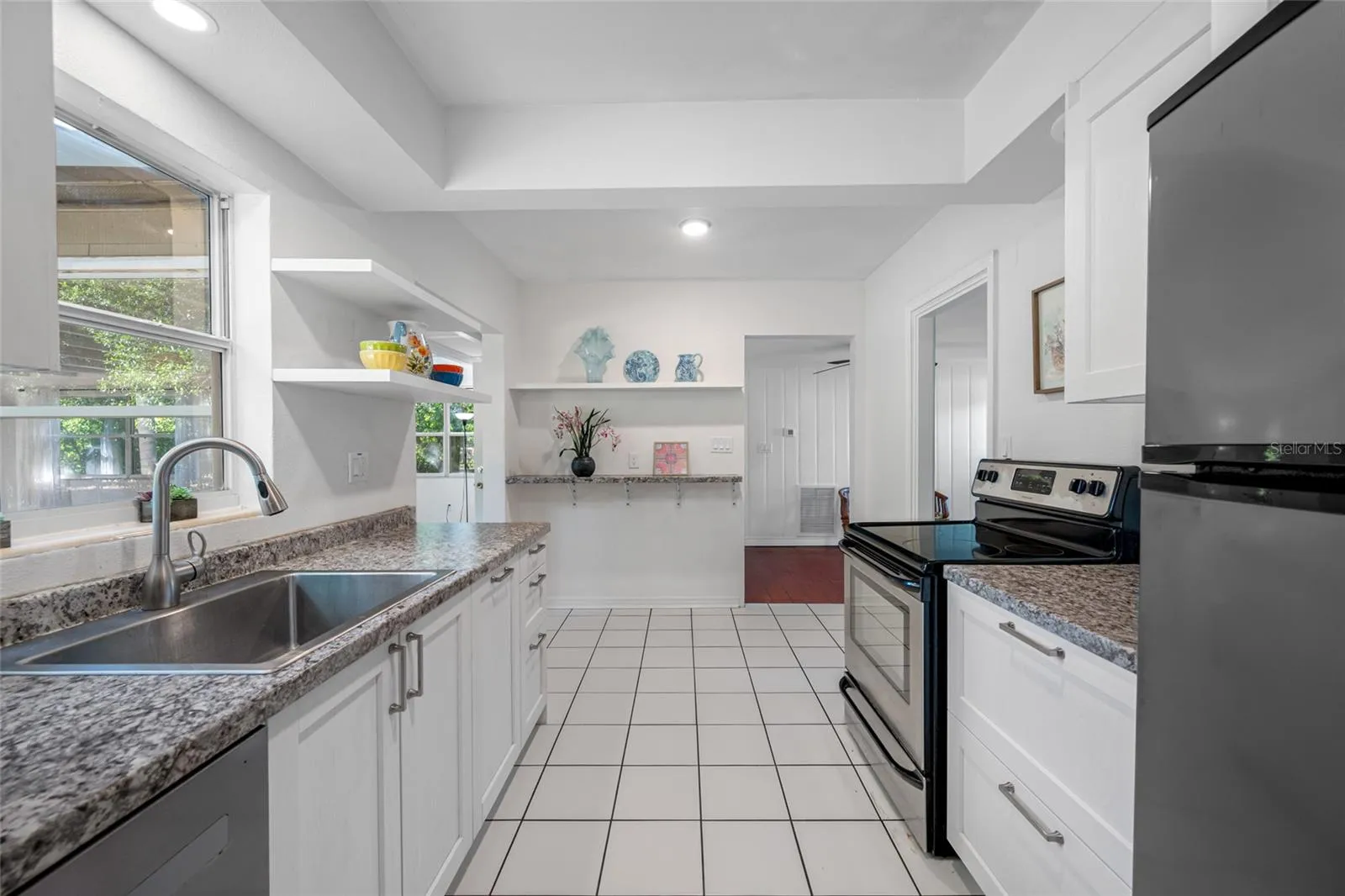 NEW PRICE, JUST REDUCED . This home features a rare DOUBLE LOT 100 X 137 deep and is adjacent to Crest Lake Park, Non-Flood zone and no HOA! This is the perfect 1 story single family home 3 full bedrooms and a huge light filled living room perfect for entertaining. Home also features an extra-large 2 car garage and big driveway. Entering the home, you are greeted with a spacious foyer that has views into your kitchen and the ENORMOUS living room which stretches 32 feet long with beautiful wood beams and a wood burning fireplace. Just off of this room is your kitchen done in 2023 featuring stainless steel appliances and a window that has views into your large backyard. Your bedrooms are down the left wing of the home which enjoys original hardwood floors. A/C and ducts 2023, Water heater 2023, roof 2022. Just add your final touches! As a bonus this home comes with a bath in the garage. Shower stall on the left and toilet on the right. Crest Lake Park is within view of your home has dog parks, walking/jogging trails, volleyball courts, fishing, splash pad, playground, pavilions, and more. Conveniently located just off Gulf to Bay or 60, you are just a few miles from the World-Famous Beaches of Clearwater and adjacent to downtown. Come see this double lot property in the heart of Clearwater and everything it has to offer today!