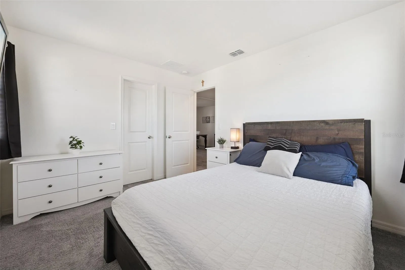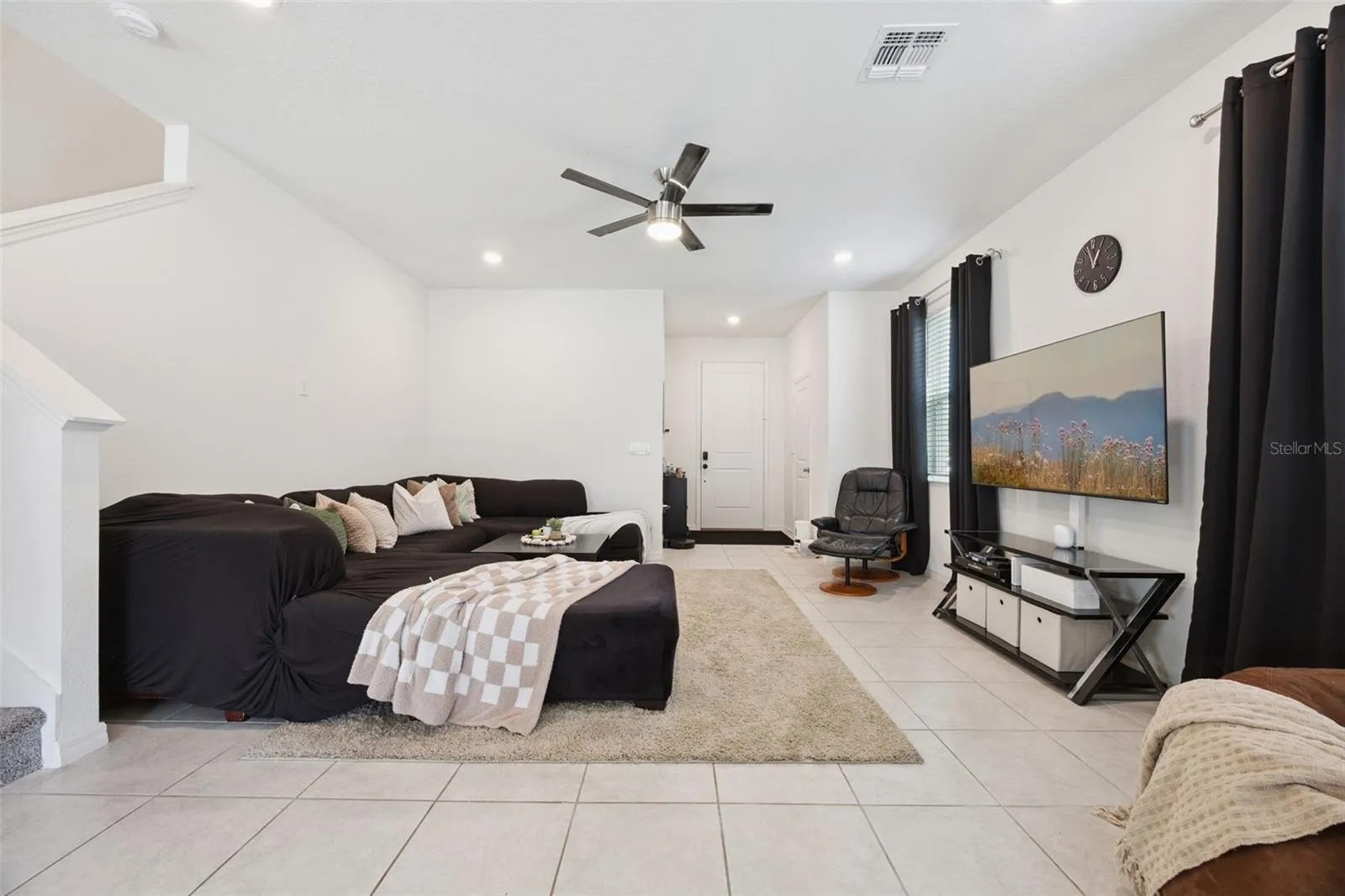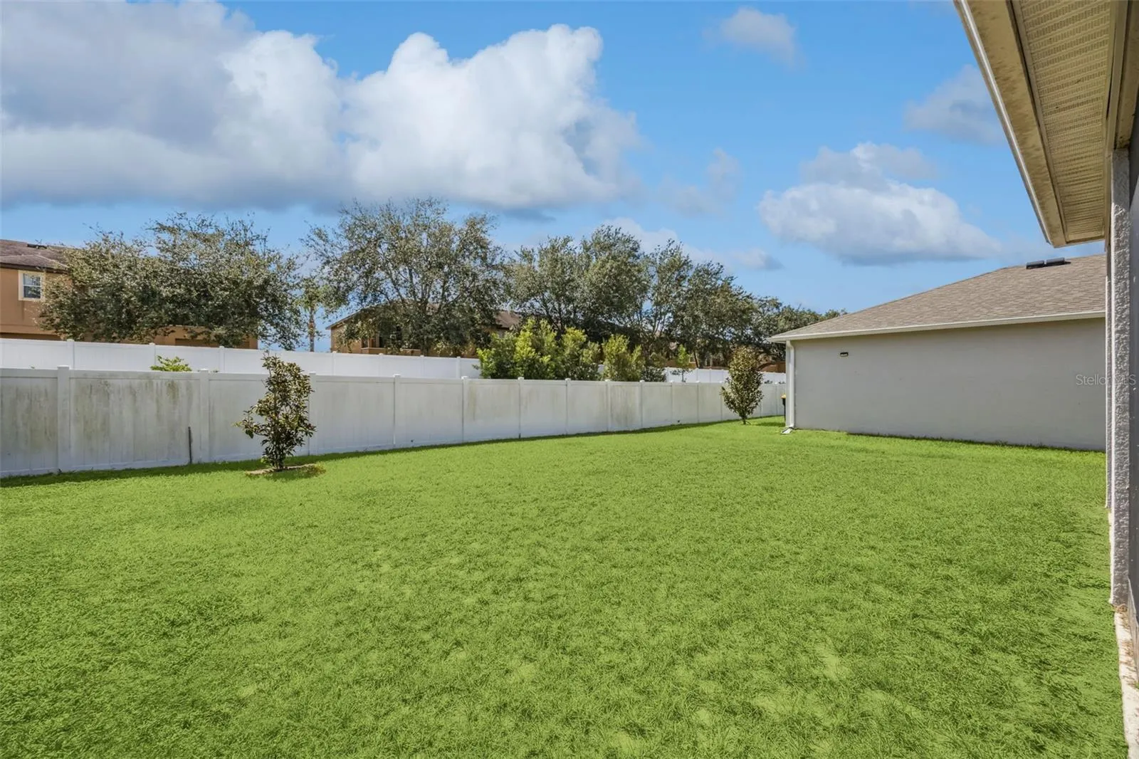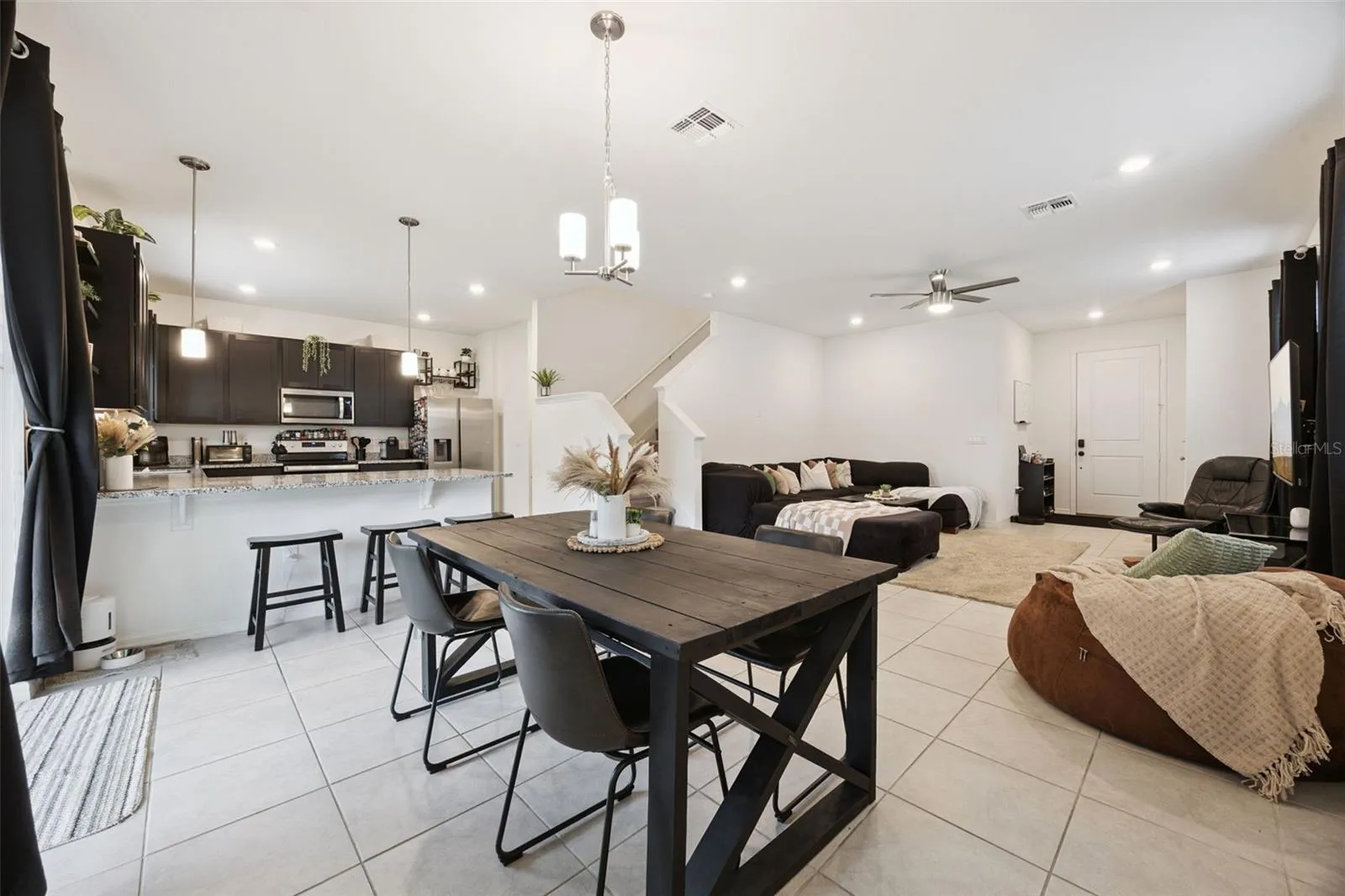 UPDATED AND MODERN HOME WITH HUGE BACKYARD! LIKE-NEW WITH NO CDD! Built in 2022, this Mirabella home features a highly functional, open floorplan layout and is loaded with sophisticated finishings. As you enter, you are greeted with a spacious open concept living and dining space that is ideal for entertaining. The dining area has a sliding glass door with views out to the patio and backyard, and also leads you over into the kitchen. The large kitchen features sleek espresso cabinetry, granite countertops, stainless steel appliances, and huge peninsula with counter seating that is perfect for prep, hosting, or easy dining. There is also a half bathroom downstairs for you and your guest’s convenience. Upstairs, you are met with a large loft space that can be used for an office, game room, movie room and more – make this space your own! There is also an installed privacy shade that can be used to separate the space. The huge primary suite features a walk-in closet, double-sink vanity with granite countertop, large walk-in glass and tile shower, and extra space for a makeup vanity or storage. The two guest bedrooms are located across from the loft, allowing for added privacy, and share their own guest bathroom with long granite vanity and shower/tub with built-in storage. Other features of the home include a large laundry room with sink and under-stair storage space. Stepping out back, you have a large, covered and screened patio with views of your huge backyard! With no immediate rear neighbors, this space can be transformed into your own Florida oasis. The Mirabella community has a low HOA and no CDD, and features a community pool, playground, and green space. The location is prime, with direct access to US-27 providing a short drive to Walt Disney World, I-4, ChampionsGate, Sunset Walk at Margaritaville and several more new restaurants, shops, and entertainment destinations. Come see this home before it is gone!