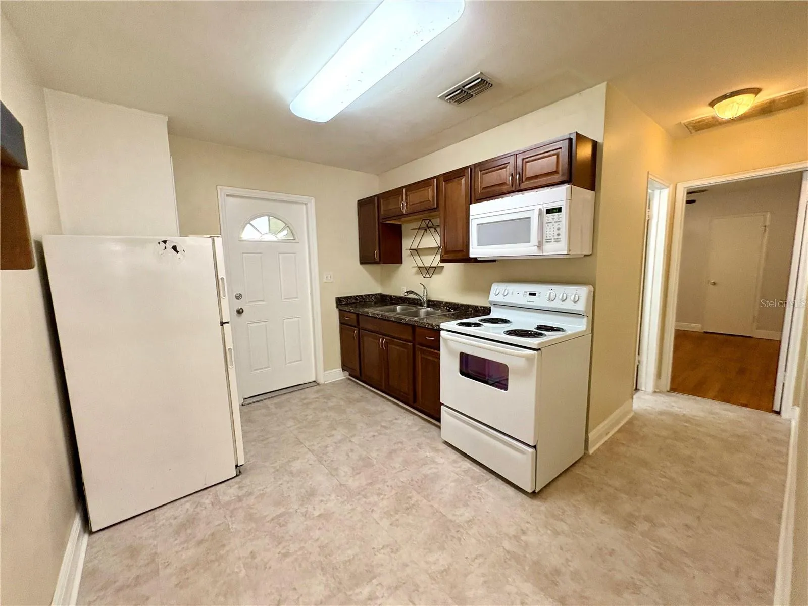 The kitchen is well-sized, and the unit includes a washer and dryer hookup for your convenience. Relax on the covered porch, perfect for morning coffee or evening relaxation.