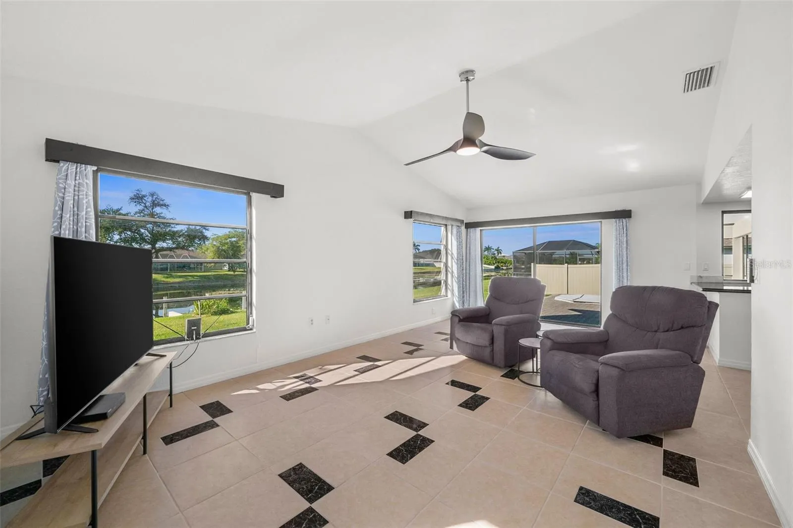 BACK ON MARKET DUE TO BUYERS’ FINANCING! Beautiful Waterfront Home on a Wide Freshwater Canal! Enjoy true Florida living in this well-maintained 3 BED, 2 BATH residence offering 1,871 sq. ft. of living area with a split floor plan, formal dining room, and both living and family rooms. Tile flooring throughout provides a clean, low-maintenance finish. The kitchen features marble countertops with a dual stainless-steel sink. Located on an OVERSIZED LOT on the scenic Damao Canal, approximately 118 ft wide, this property enjoys southern exposure and peaceful waterfront views, perfect for boating, fishing, and wildlife viewing right from your boat dock. The spacious master suite overlooks the canal and includes a walk-in closet, dual vanities, a soaking tub, and a separate shower. Additional highlights include a ground spa/hot tub, laundry room in residence, and a 2023 shingled roof. NOT LOCATED IN FLOOD ZONE, NO FLOOD INSURANCE REQUIRED. Conveniently situated near the Pine Island Rd. corridor for shopping, dining, and entertainment.