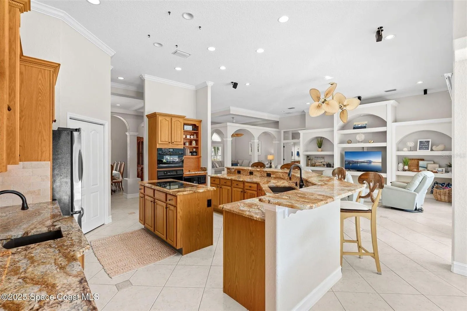 Live the Florida dream—where luxury, comfort, and peace of mind meet. Entertain with ease in your private resort-style backyard featuring a refinished pool, covered lanai, refurbished cage, and updated outdoor kitchen. Inside, plantation shutters, cellular shades, new fans and lighting set the stage for relaxed elegance. Recent upgrades include one new HVAC, security cameras, new irrigation, water softener tank, and more. The oversized 3+ car garage shines with epoxy floors, custom storage, and freshly painted doors. This home blends style, function, plenty of space and effortless living for the discerning buyer. Don’t miss your chance to own this lakefront beauty in this sought after neighborhood that allows access to everything including ocean, river, airports, shopping and restaurants!