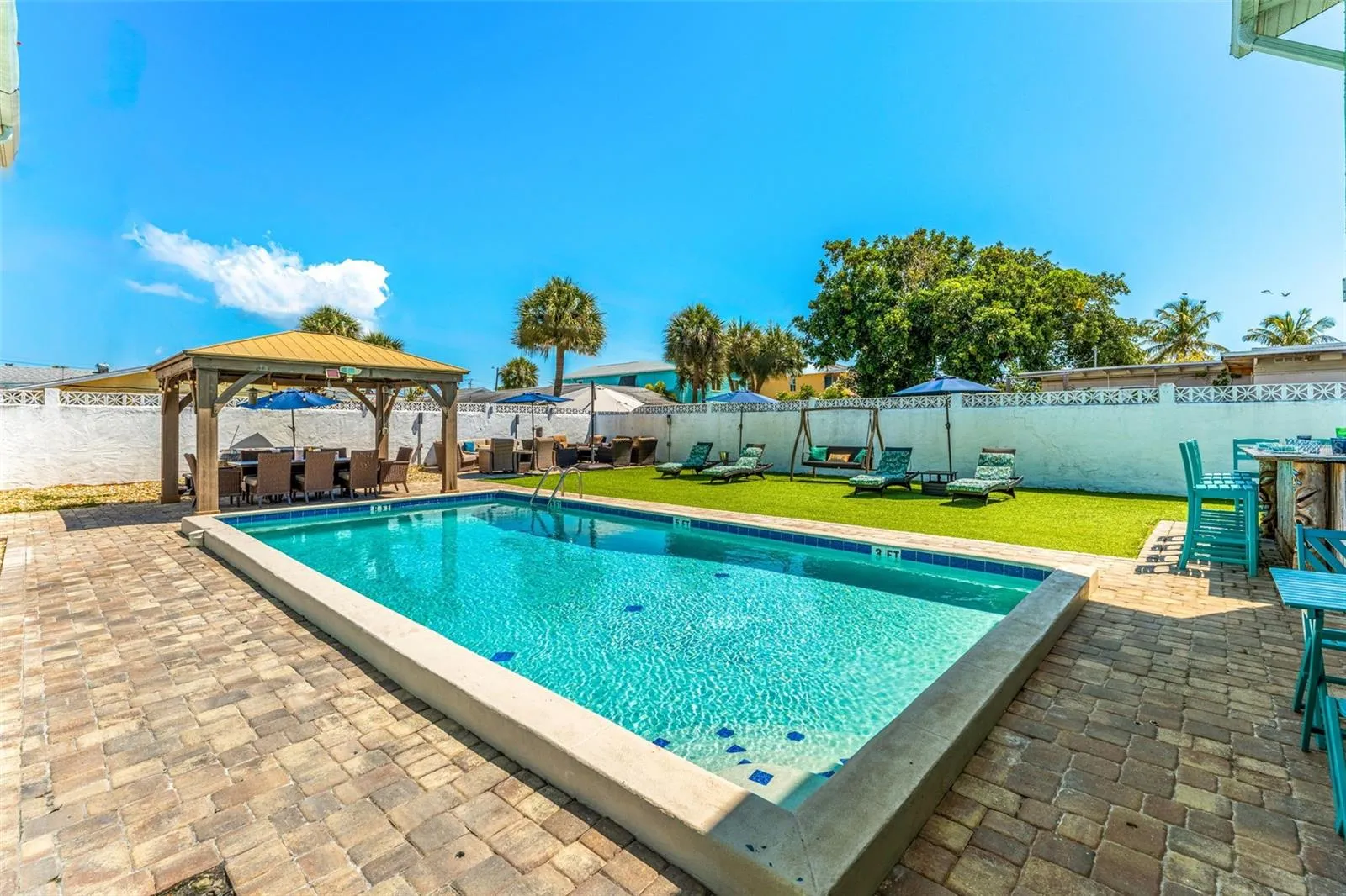 Under contract-accepting backup offers. Just a block from the ocean, this triplex presents a rare opportunity in one of Cape Canaveral’s most desirable coastal neighborhoods. With over 4,500 square feet of interior living space on a double lot, this property combines strong rental income with endless flexibility. Each unit is fully furnished and features an updated kitchen with granite counters, stainless steel appliances, and open layouts designed for easy beachside living. The outdoor spaces transform this property into a true retreat complete with a heated pool, hot tubs, firepit, outdoor bar, and multiple lounging areas surrounded by tropical landscaping. Whether operated as a high-performing short-term rental portfolio, a live-and-earn opportunity, or converted into a private resort-style residence, this investment offers location, scale, and proven returns.
