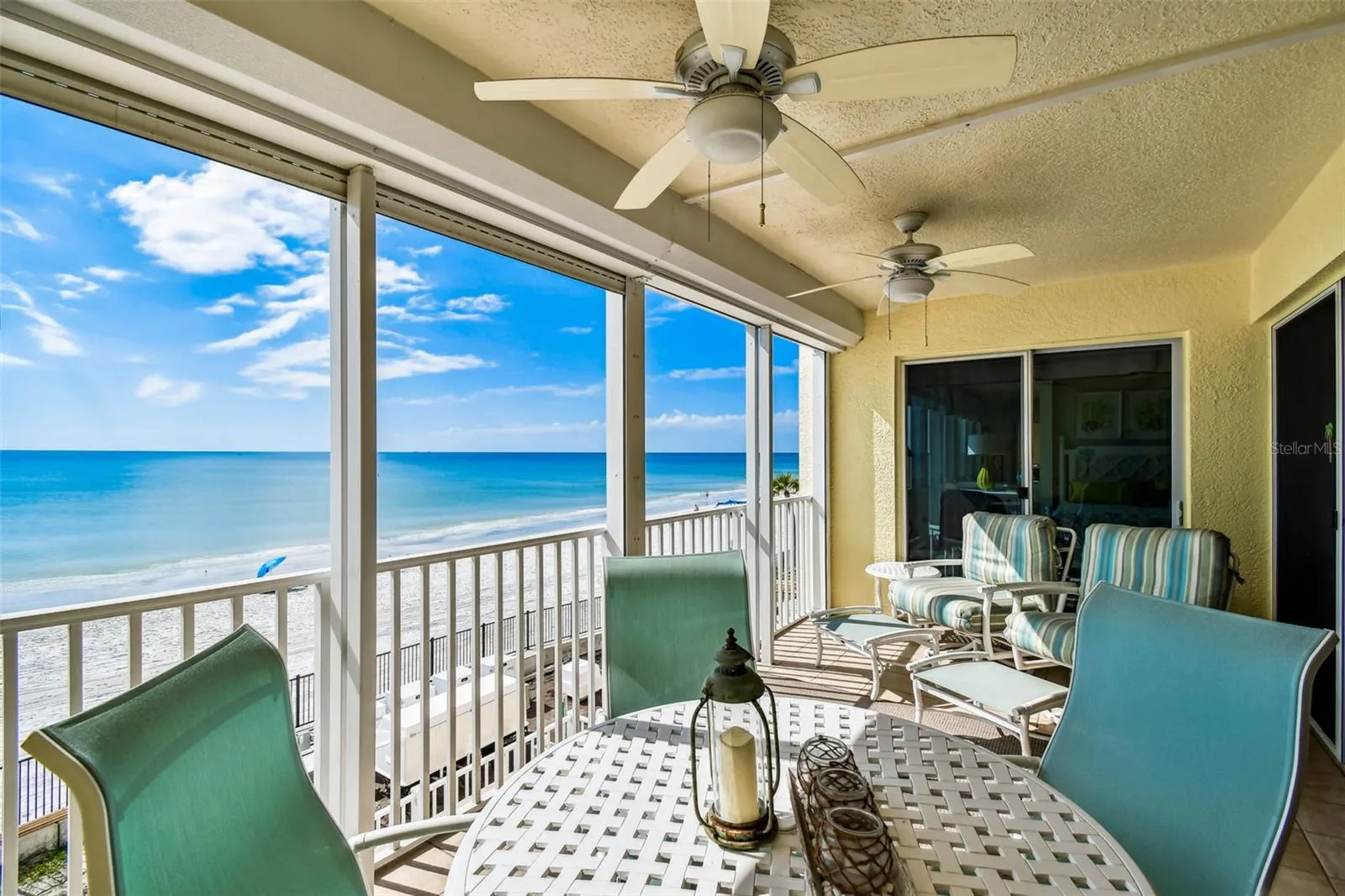 The primary suite offers direct balcony access, floor-to-ceiling windows overlooking the Gulf, two walk-in closets, and a spa-inspired bath with designer finishes. Two additional bedrooms provide privacy and comfort for family or guests. Hurricane-impact windows throughout ensure peace of mind, while every detail—from the traditional aesthetic to the custom built-ins—reflects sophistication and quality craftsmanship.