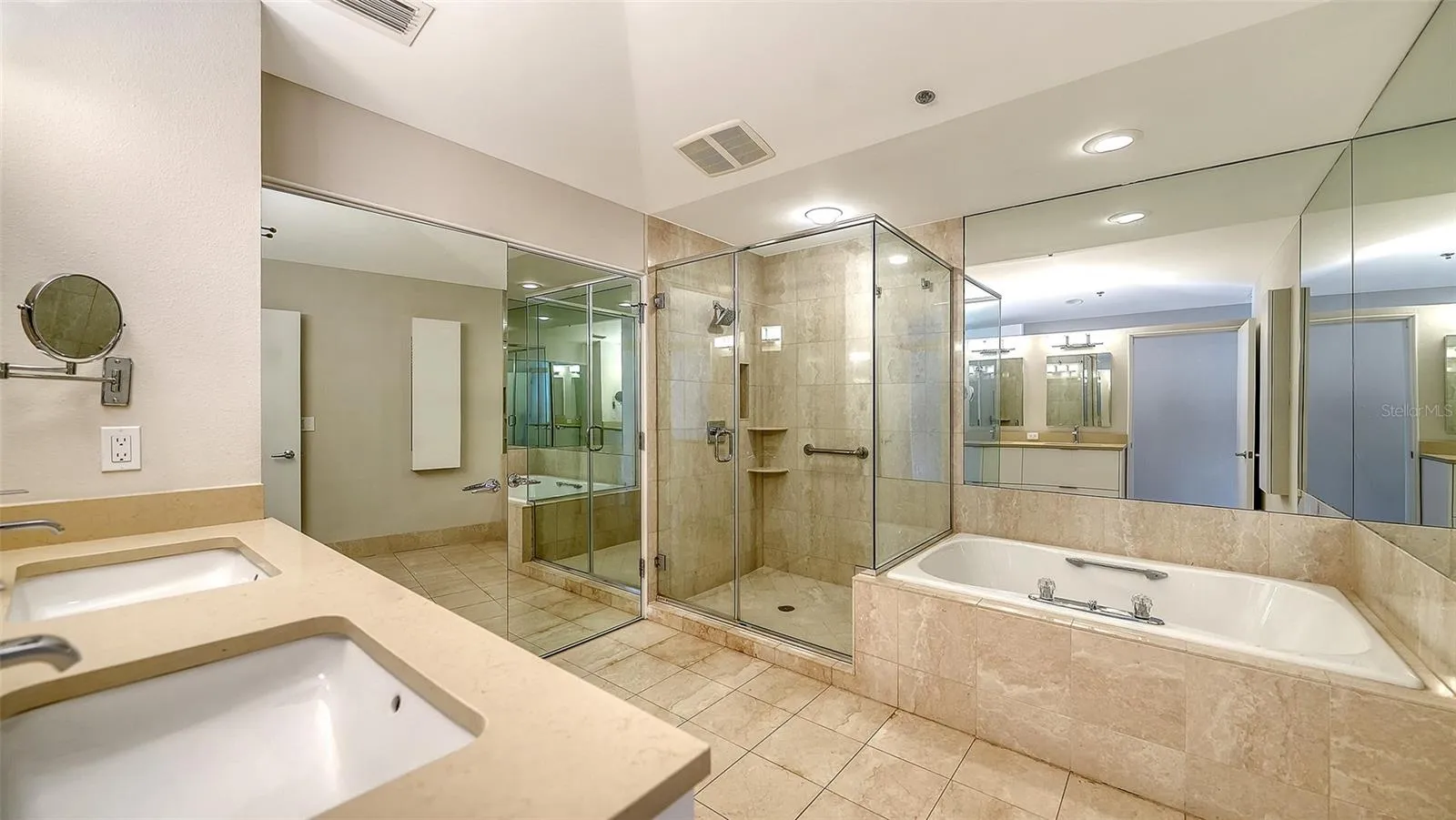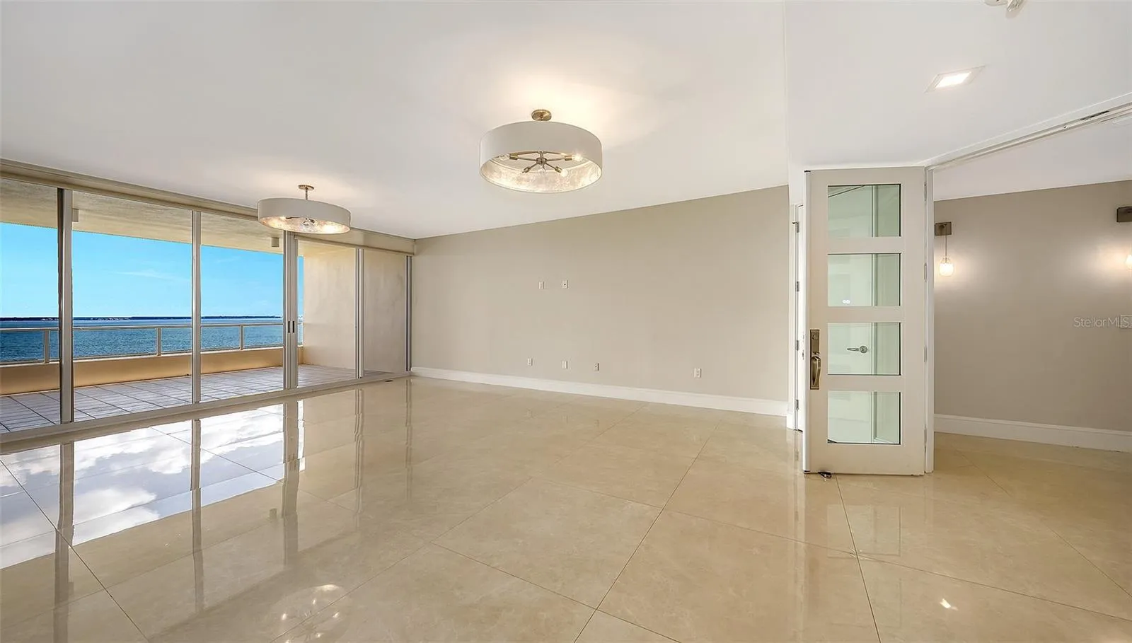 One or more photo(s) has been virtually staged. Welcome to Grand Bay. Experience the essence of refined coastal living, where breathtaking panoramic water and city views take center stage. Awaken to the sunrise over Sarasota Bay’s skyline with limitless views of the bay and golf course, and unwind with stunning sunsets over the Gulf, an ever-changing display of beauty from every room. Perfectly situated on the 8th floor, this elegant home welcomes you through a private-access, controlled elevator leading to a stunning foyer framed by contemporary glass double doors. The Cayman open floor plan immediately reveals sweeping vistas, while large porcelain tile flooring flows seamlessly through the living areas and onto two outdoor terraces ideal for quiet relaxation. The stunning updated kitchen features two-toned cabinetry, Wolf and Sub-Zero appliances, under-cabinet lighting, quartz countertops, and an inviting breakfast bar. An adjacent eat-in area with floor-to-ceiling sliders opens to a private covered terrace, a perfect setting for entertaining guests and boundless vistas. The primary suite is a lavish retreat, complete with white oak floors, two walk-in closets and a spa-inspired bath showcasing, a soaking tub, glass shower, and dual vanities. The guest suite offers private terrace access for stunning sunset views, complemented by white oak floors and an en-suite bath. Discover versatility with a den/office that doubles as an occasional guest room, providing privacy with elegant pocket doors that separate it from the formal dining room, and a 3rd full bath just steps away. A well thought out conversion has added a built-in office area adding functionality to round out the interior. Residents enjoy various first-rate amenities, including 24-hour guard gates, a clubhouse, two community pools and spas, a large fitness center with saunas, and tennis courts. Stroll the neighborhood’s scenic walking paths or enjoy deeded access to the exclusive gated Bay Isles Beach Club offering locker rooms, barbecues, volleyball nets, covered picnic areas and a sandy white beach. Located behind the Bay Isles secure gates, this secluded neighborhood rests on the rolling greens of the Longboat Key Club’s golf course. Grand Bay residents find it hard to leave this special community. This residence truly captures the best refined Bay and beach lifestyle – sophisticated, exclusive, and ready to be enjoyed.