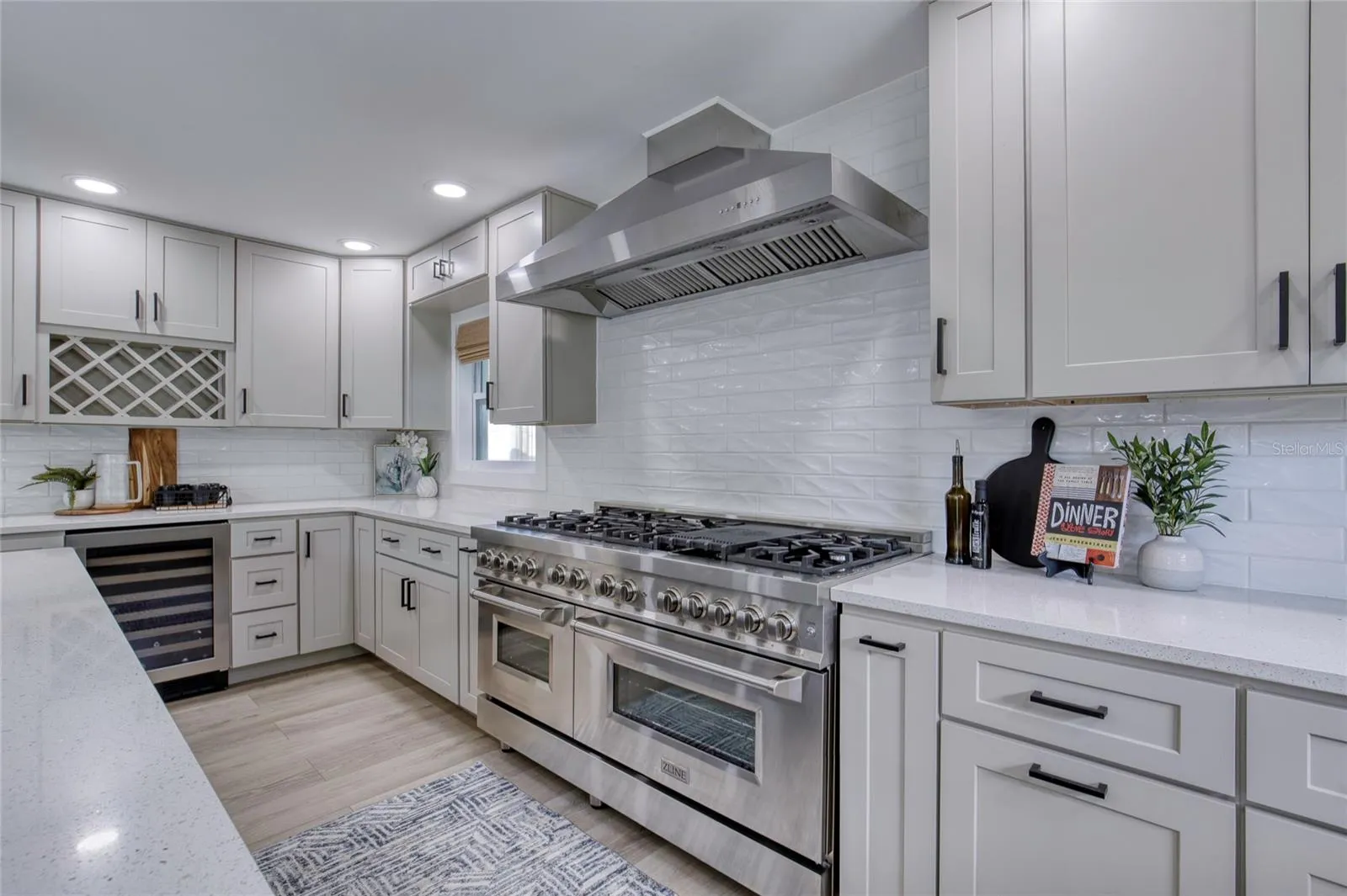 Step inside and fall in love with the open-concept floorplan, where natural light fills the spacious great room and gourmet kitchen. The kitchen is a true showstopper — boasting custom soft-close cabinetry, elegant quartz countertops, a massive 60″ gas range, microwave drawer, wine cooler, cabinet-panel dishwasher, and an oversized island perfect for gathering around with family and friends. You’ll also find built-in double pantries and a spacious refrigerator that make both entertaining and everyday living a breeze.